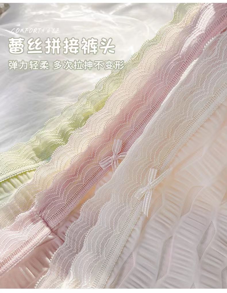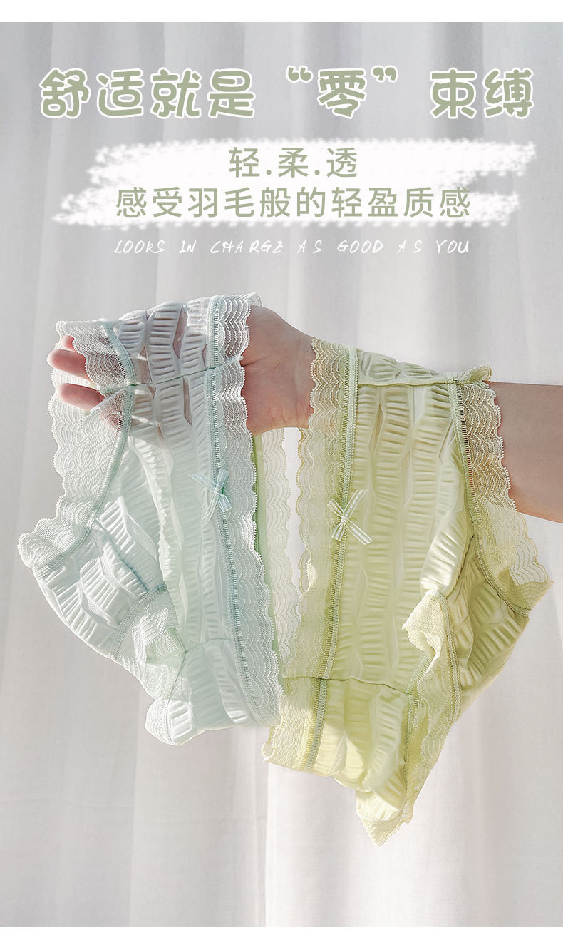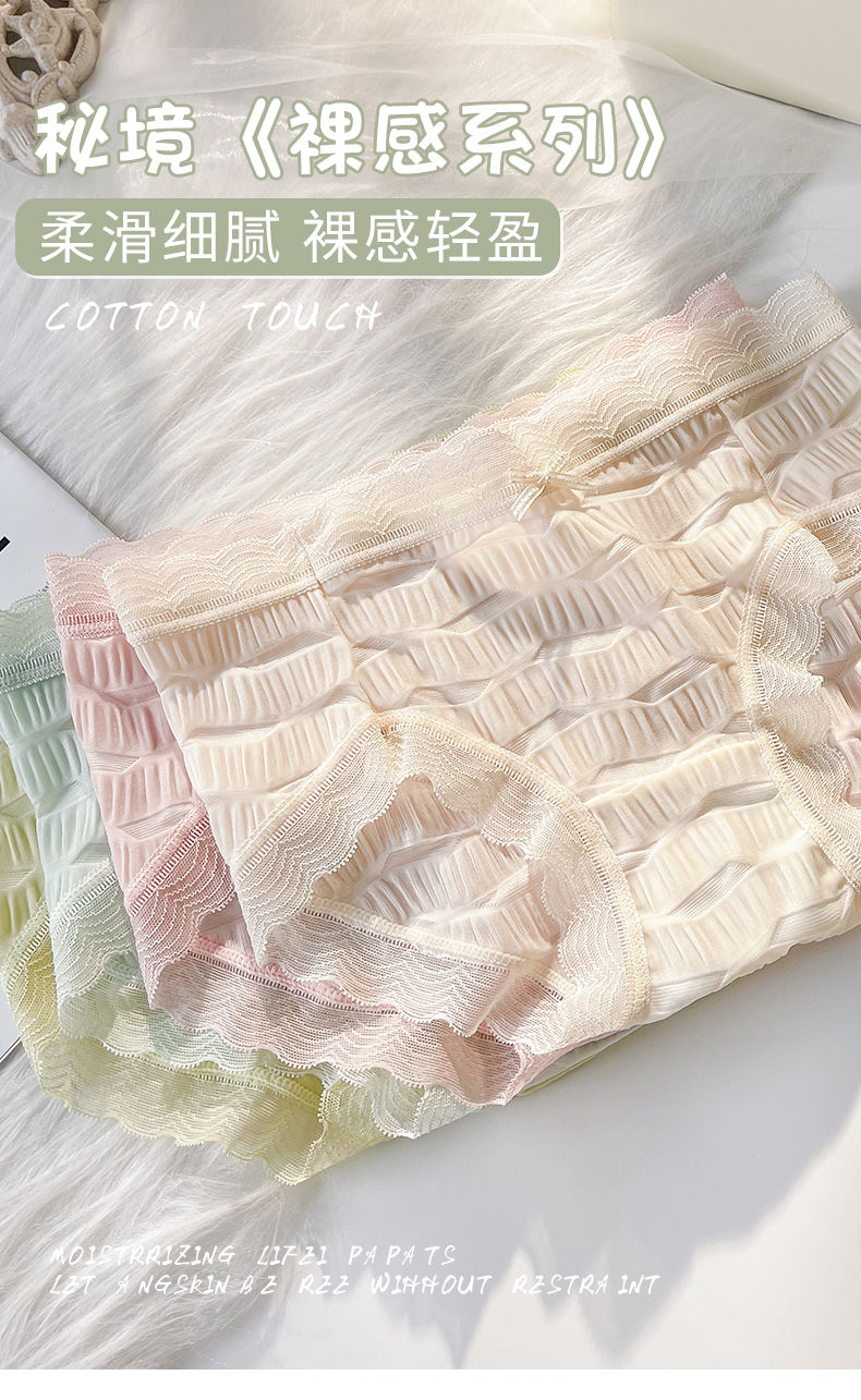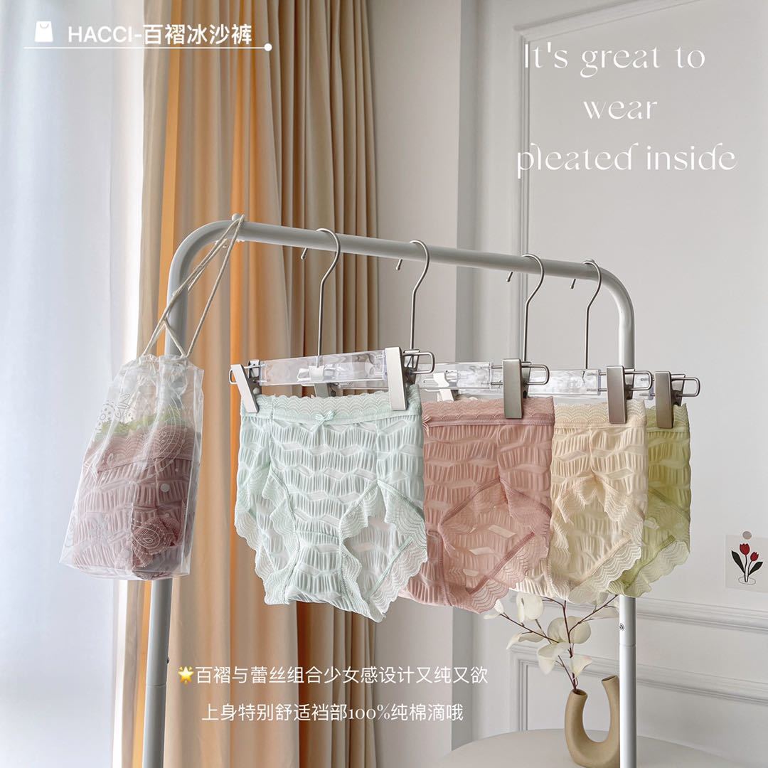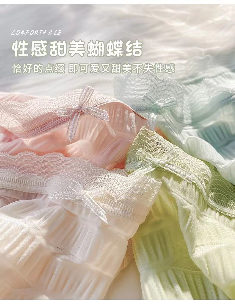 【4条装!海盐奶油泡泡冰沙内裤】甜甜泡芙百褶粉嫩冰爽透气不闷热夏日必备柔软纯色少女心内裤 蕾丝纯欲少女感内裤女纯棉裆无痕抗jun透气中腰三角裤高弹韩系七夕情人节