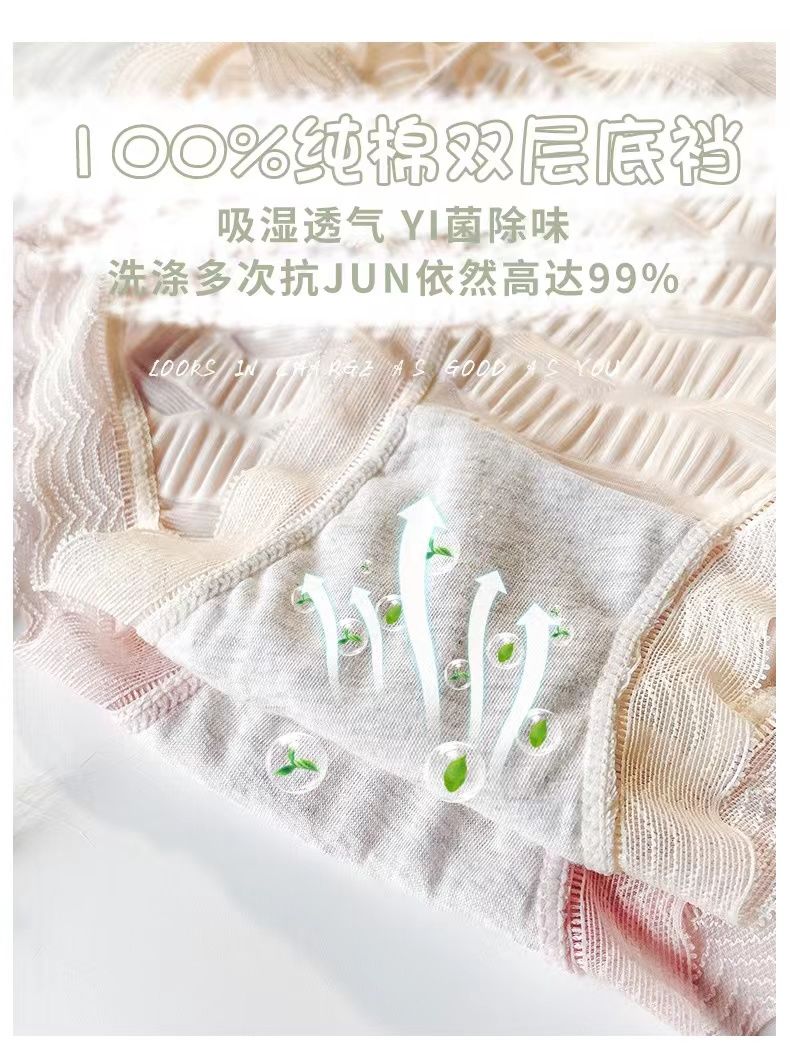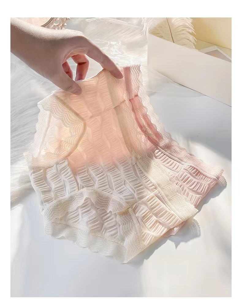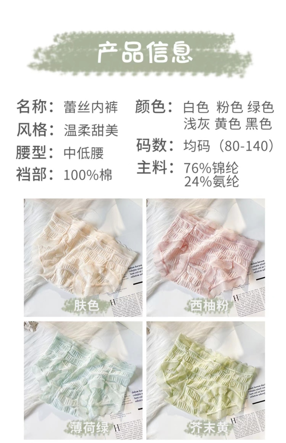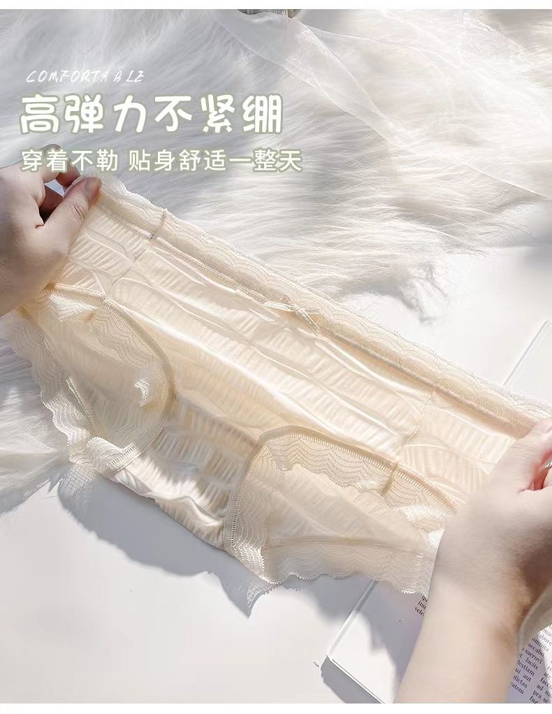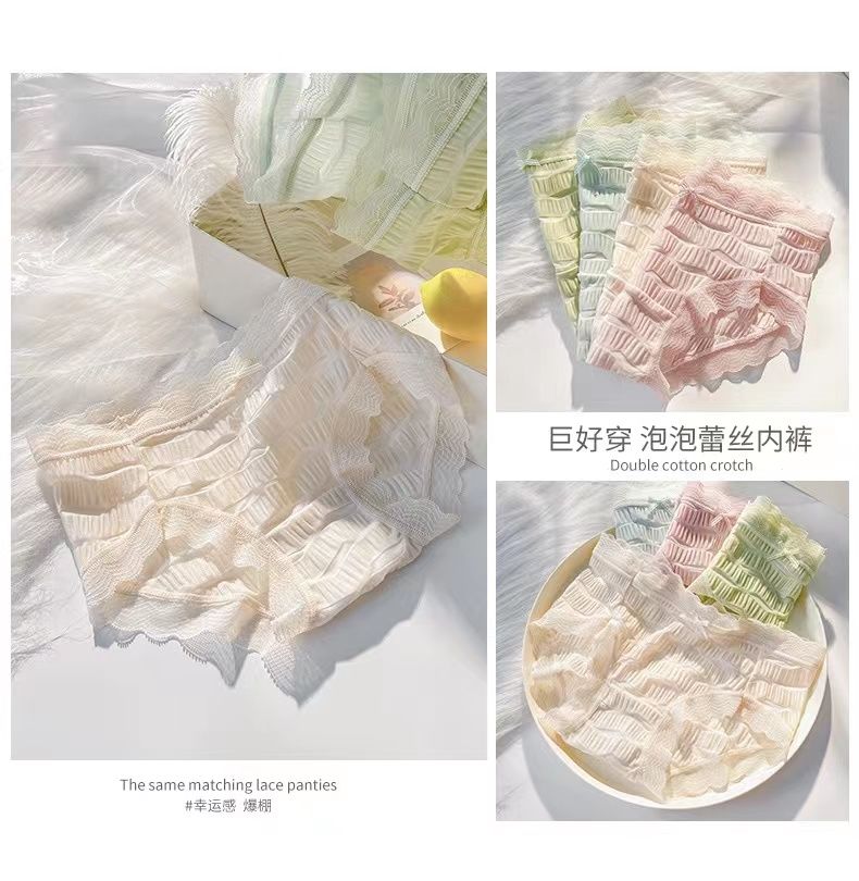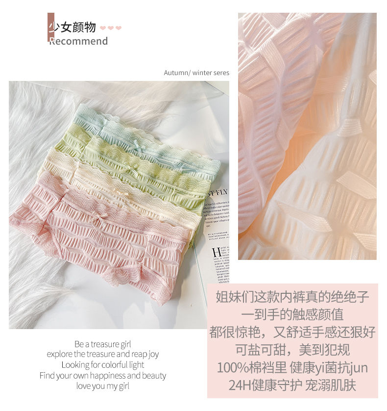 【4条装!海盐奶油泡泡冰沙内裤】甜甜泡芙百褶粉嫩冰爽透气不闷热夏日必备柔软纯色少女心内裤 蕾丝纯欲少女感内裤女纯棉裆无痕抗jun透气中腰三角裤高弹韩系七夕情人节