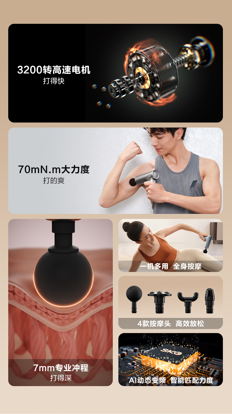 SKG礼盒套装-005 SKG 筋膜枪F1系列1代 尊贵款枪+敲打熊两用跳绳 KS703