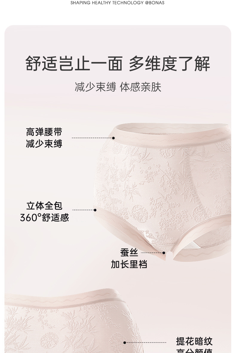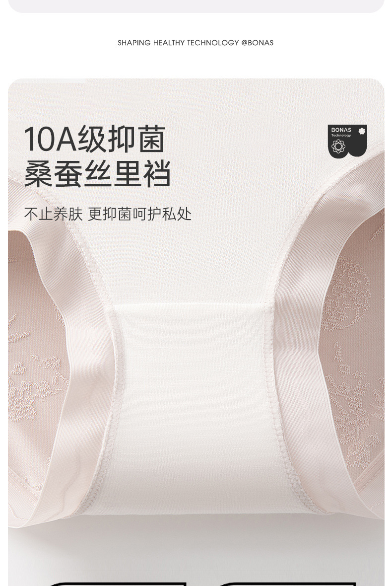 【限时送!买2件送同款1件!】宝娜斯女士内轻奢浮雕提花加长裆内裤 新国风蚕丝裆内裤