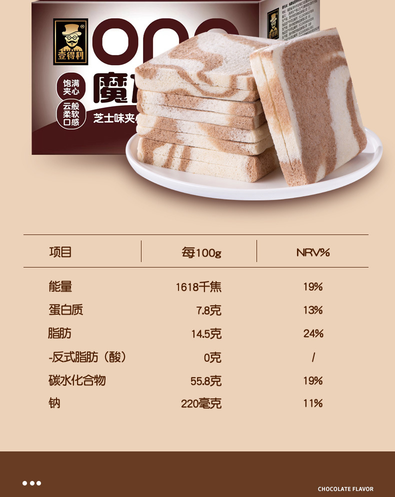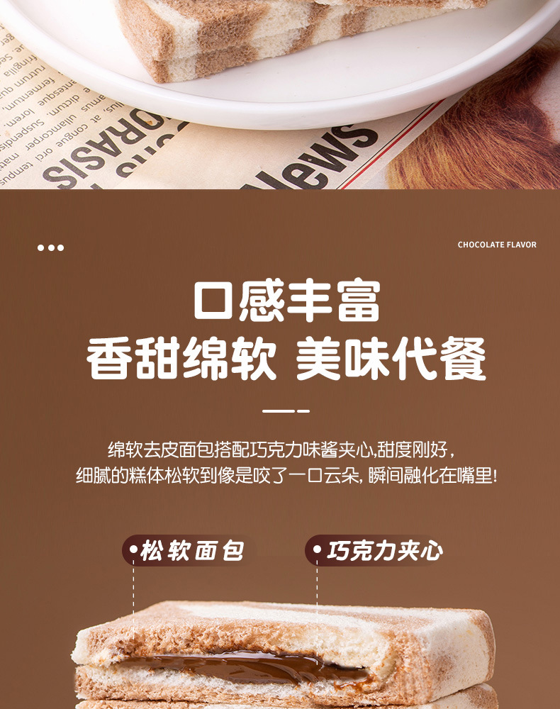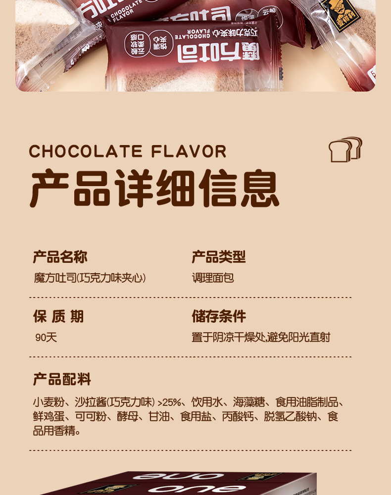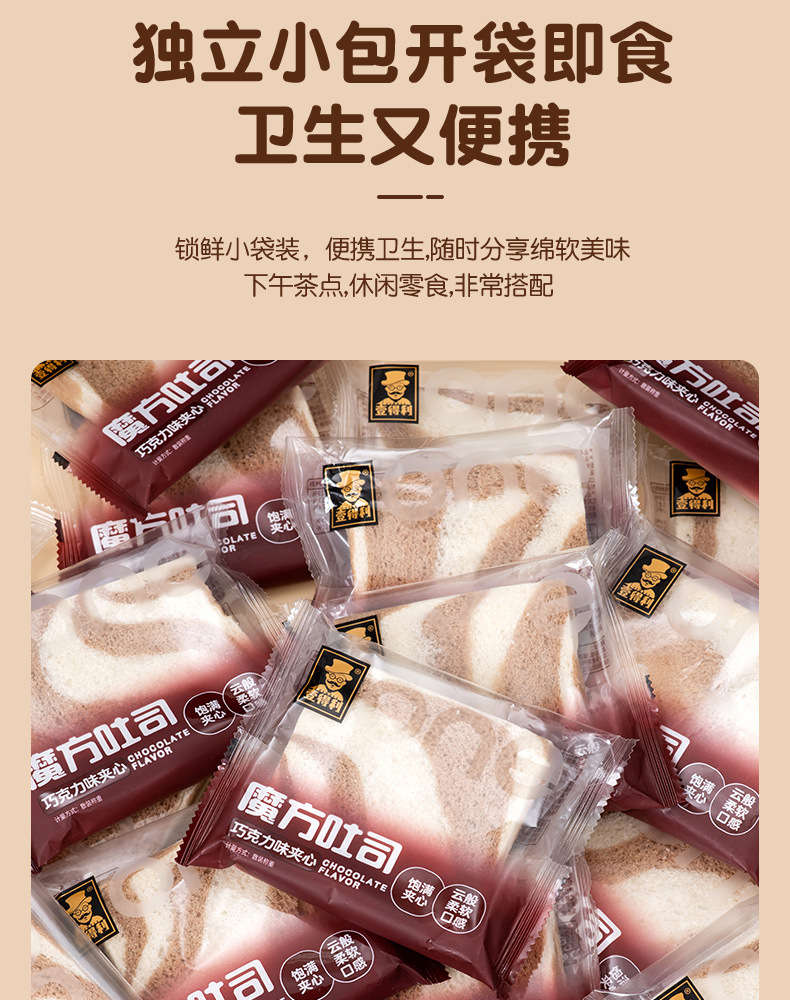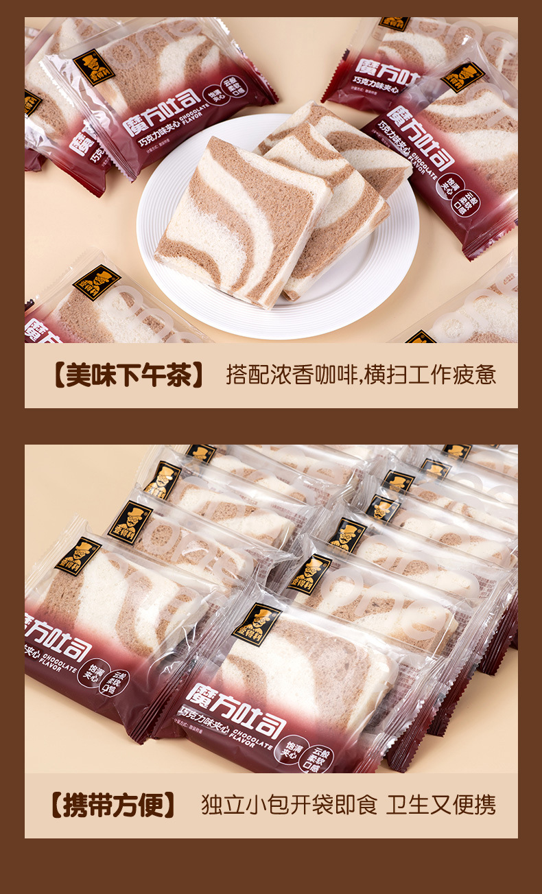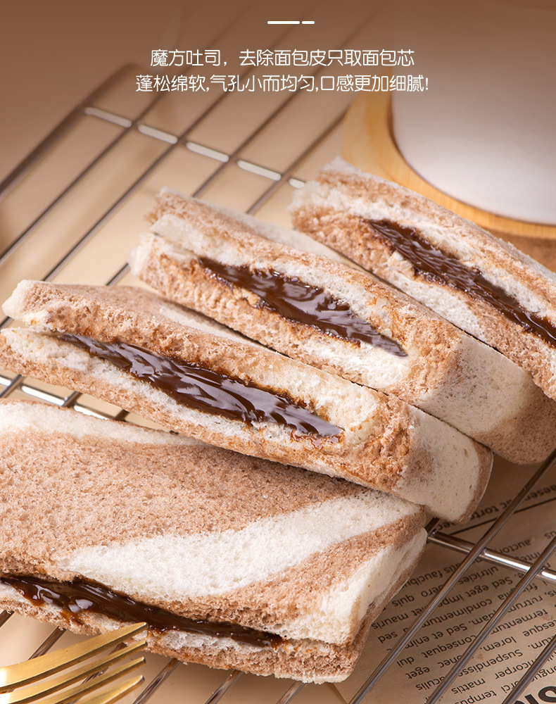 「巧克力夹心!魔方吐司」巧克力味夹心面包魔方吐司早餐粗粮网红零食小吃