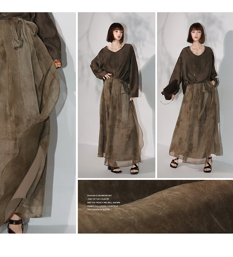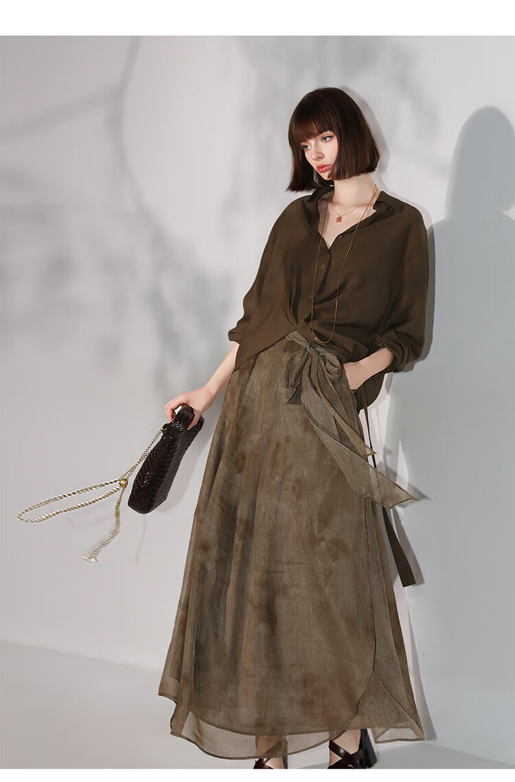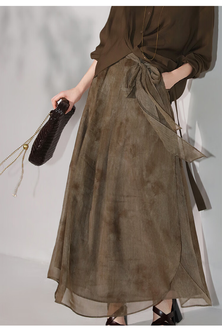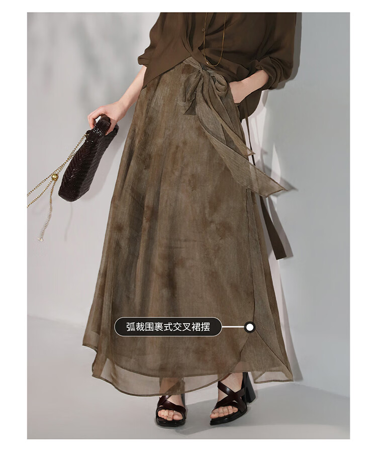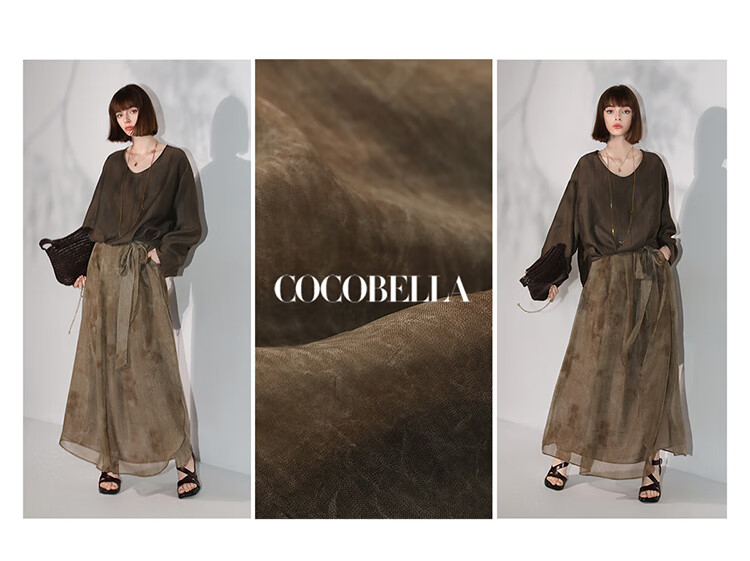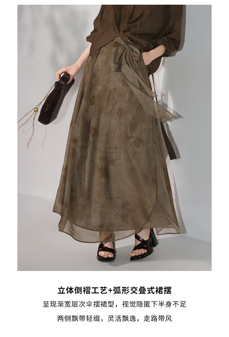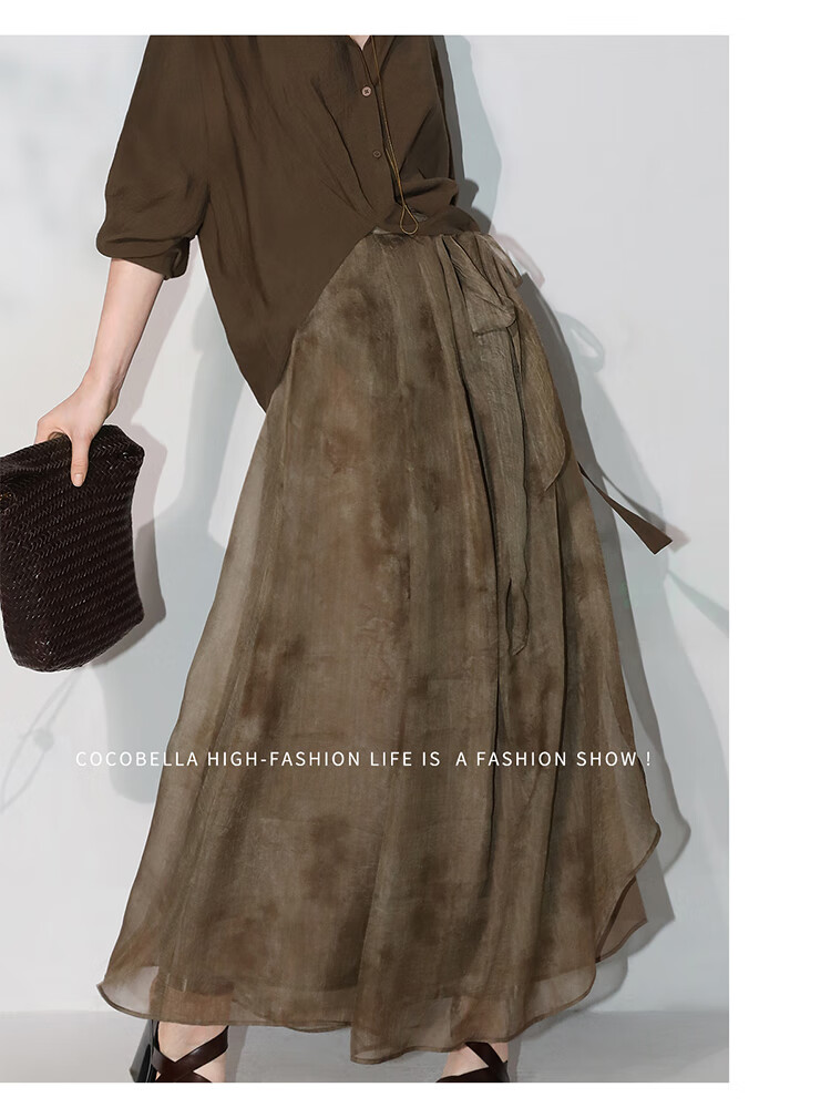COCOBELLA新国风晕染炒色半身裙手工捏褶绑带早秋长裙HS0048