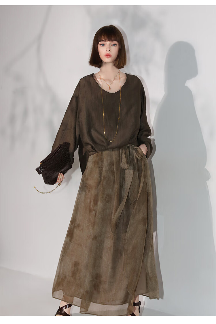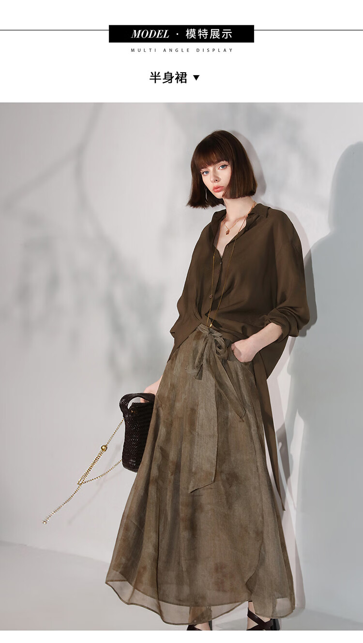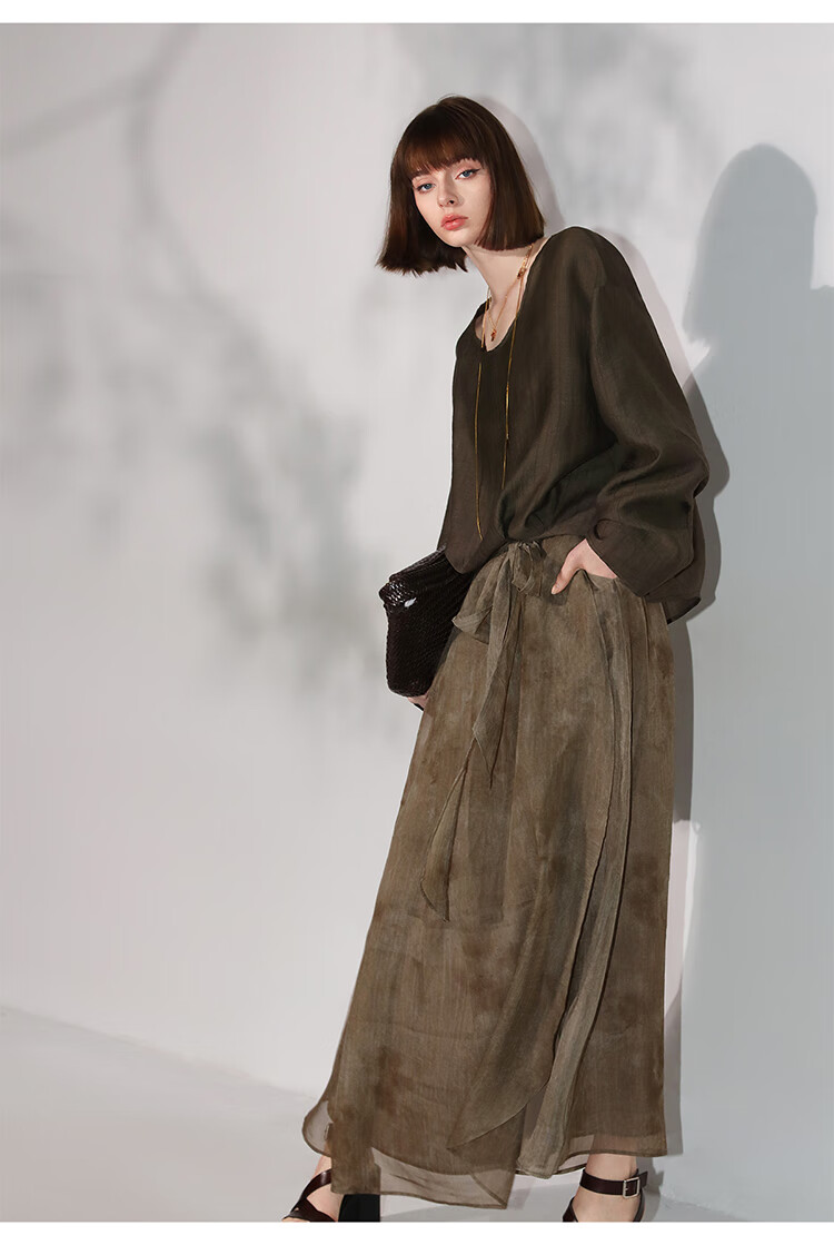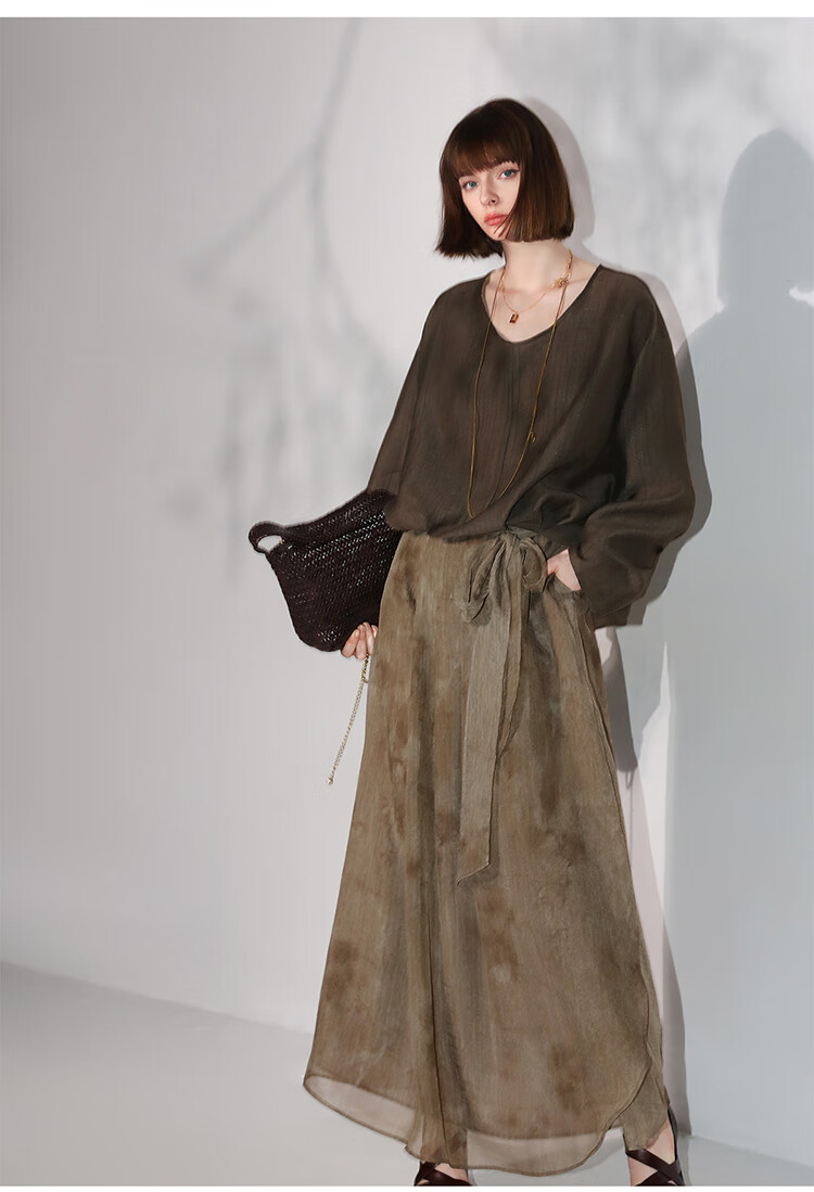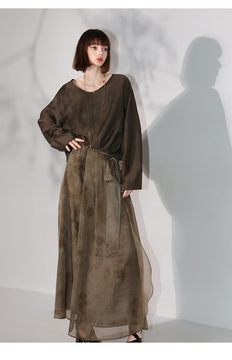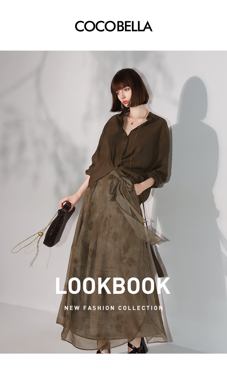 COCOBELLA新国风晕染炒色半身裙手工捏褶绑带早秋长裙HS0048