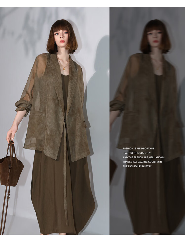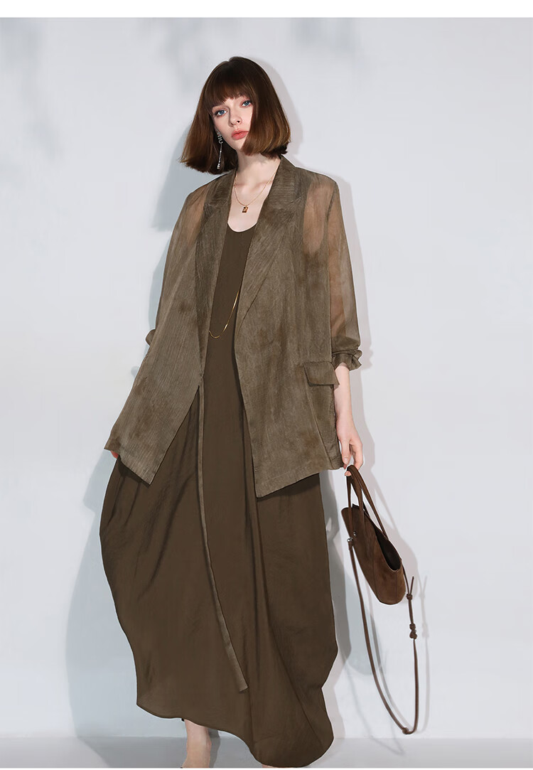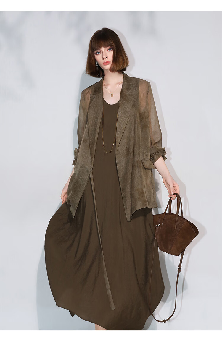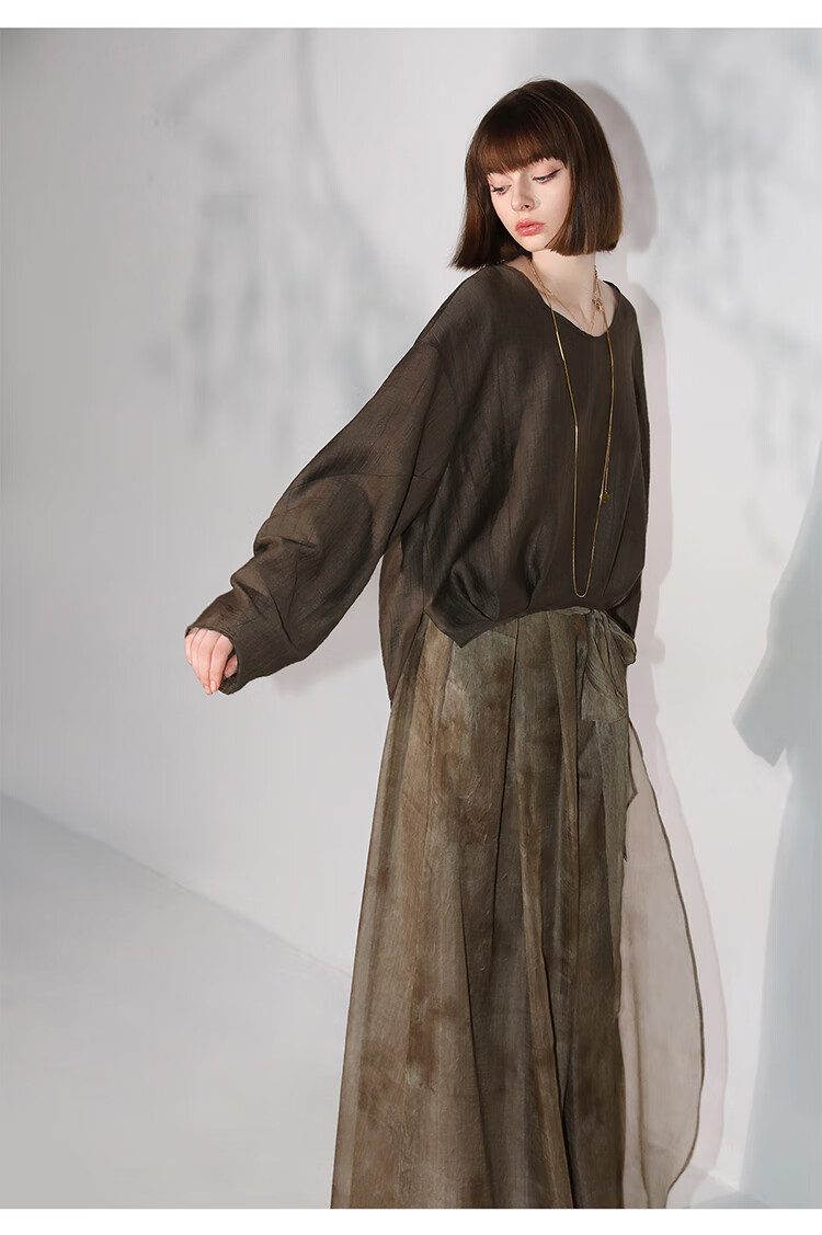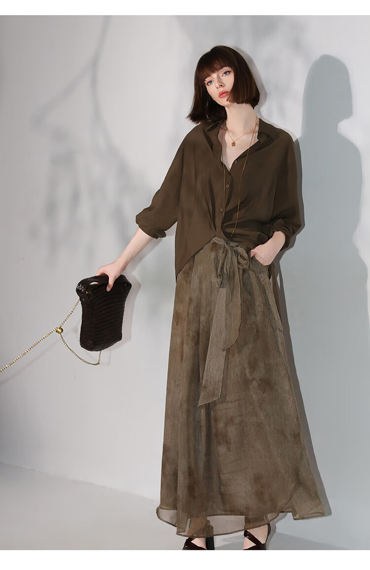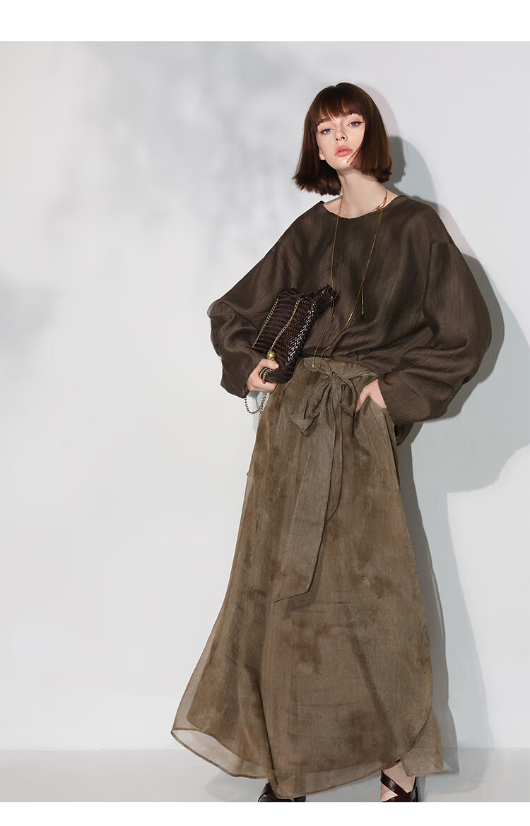 COCOBELLA新国风晕染炒色半身裙手工捏褶绑带早秋长裙HS0048