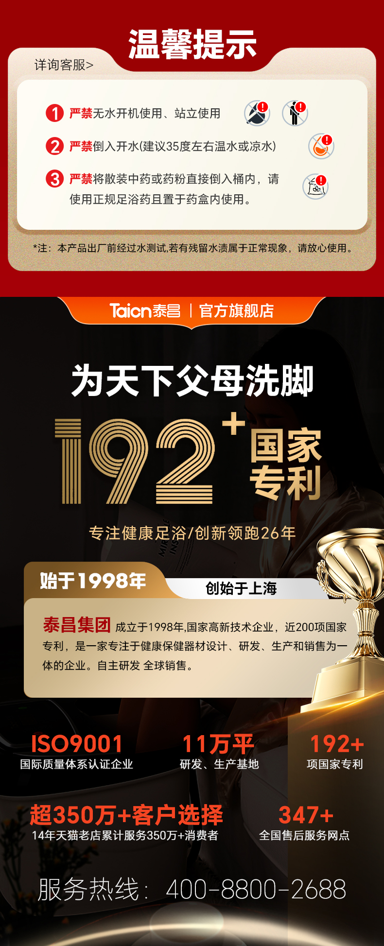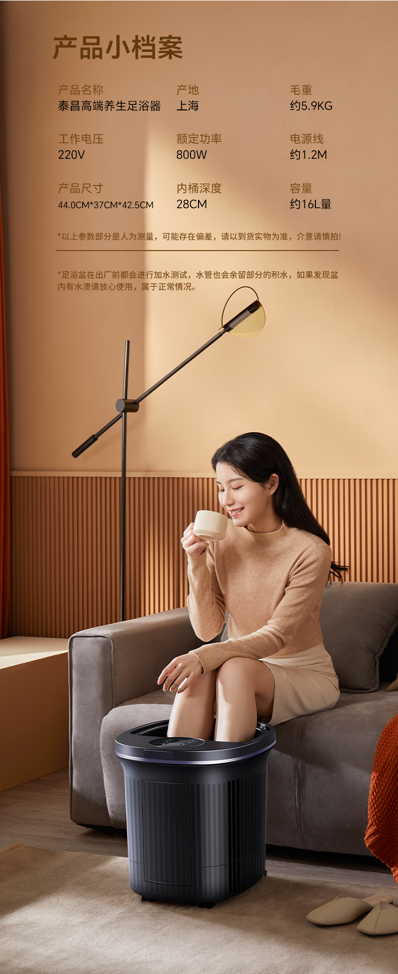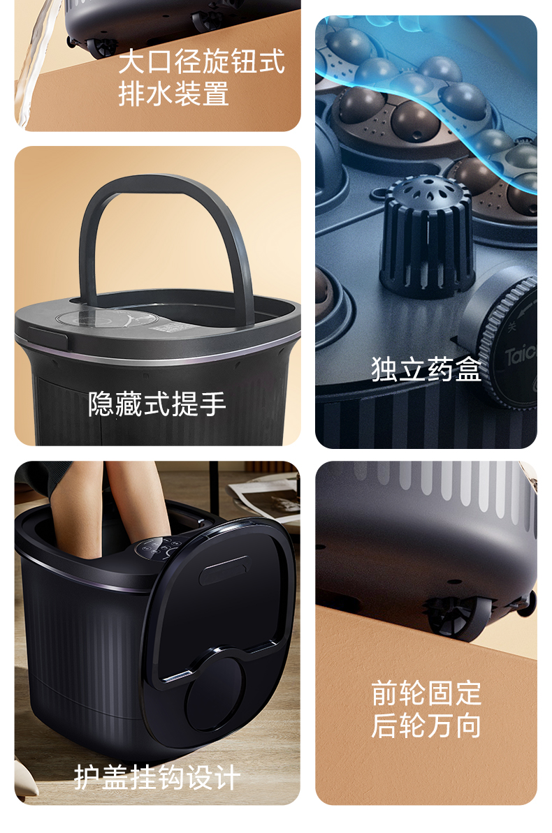 【自营】 泰昌 足浴盆 智能紫外线杀菌 仿真人太极电动按摩转盘恒温加热