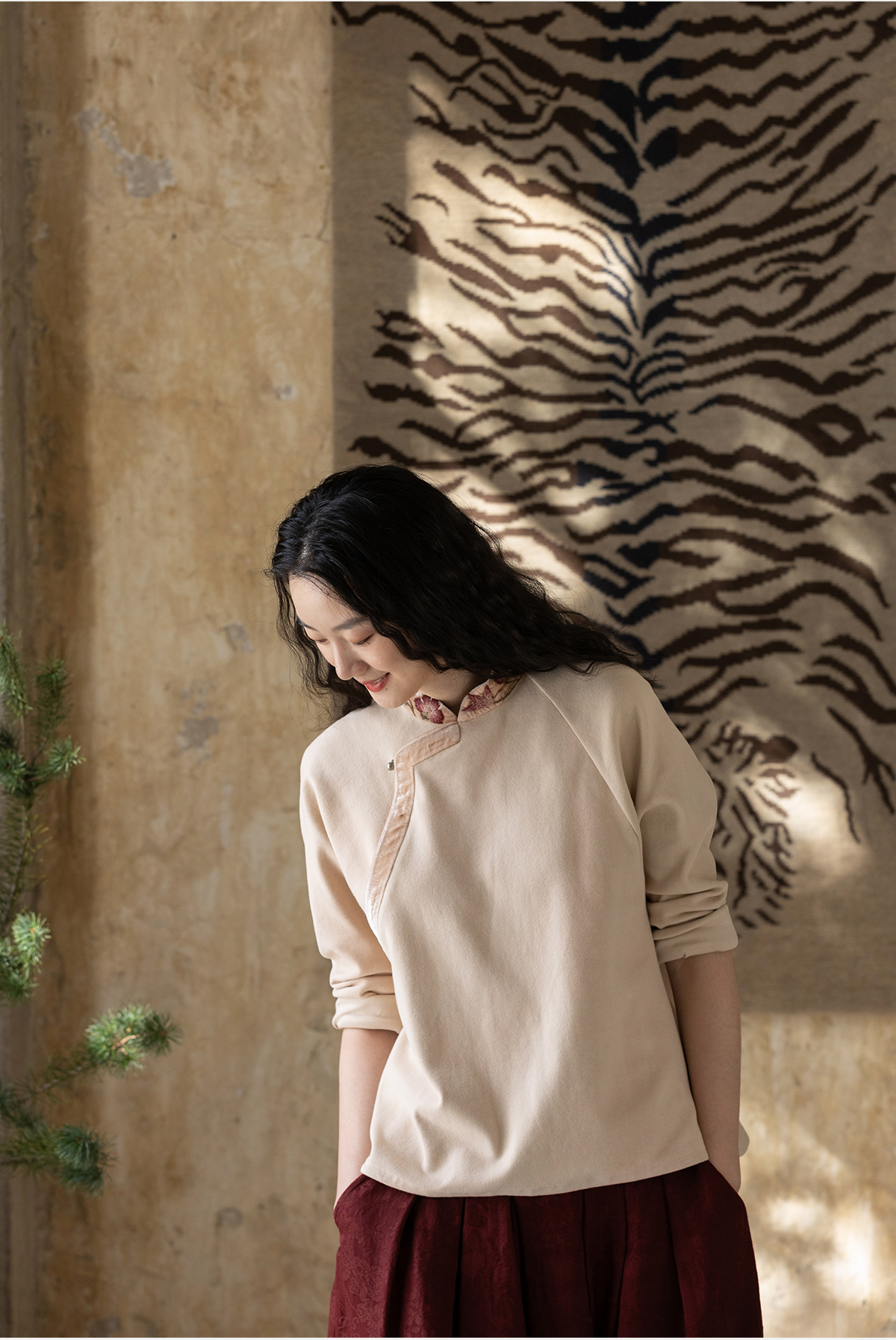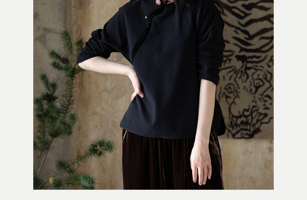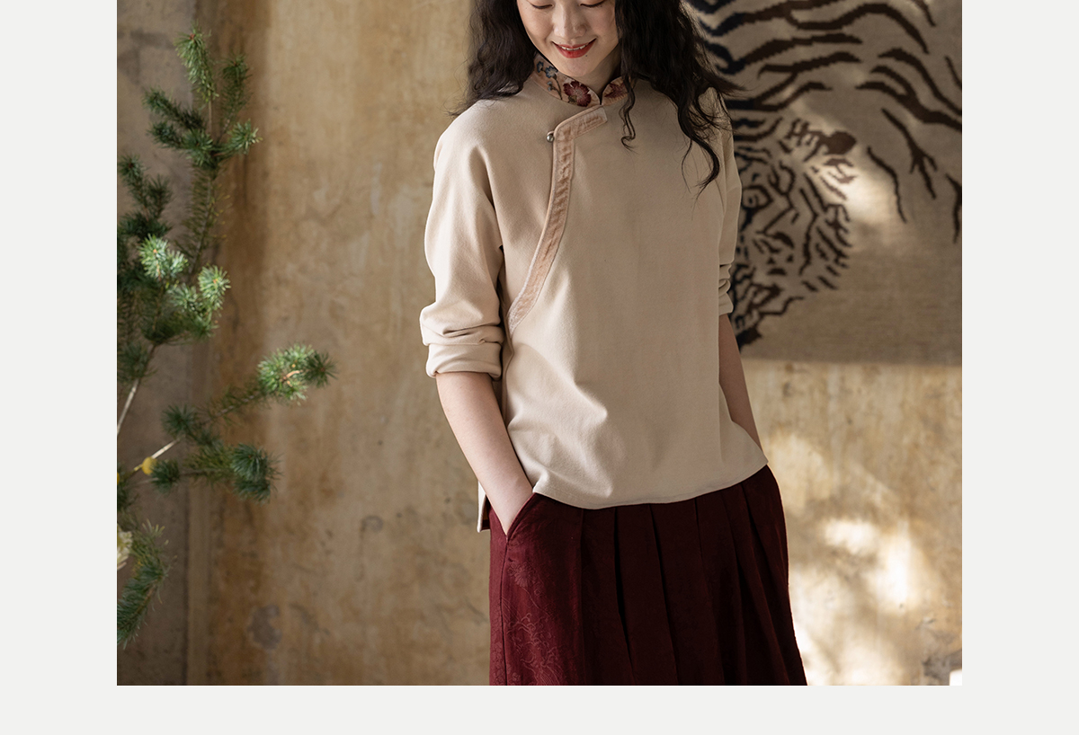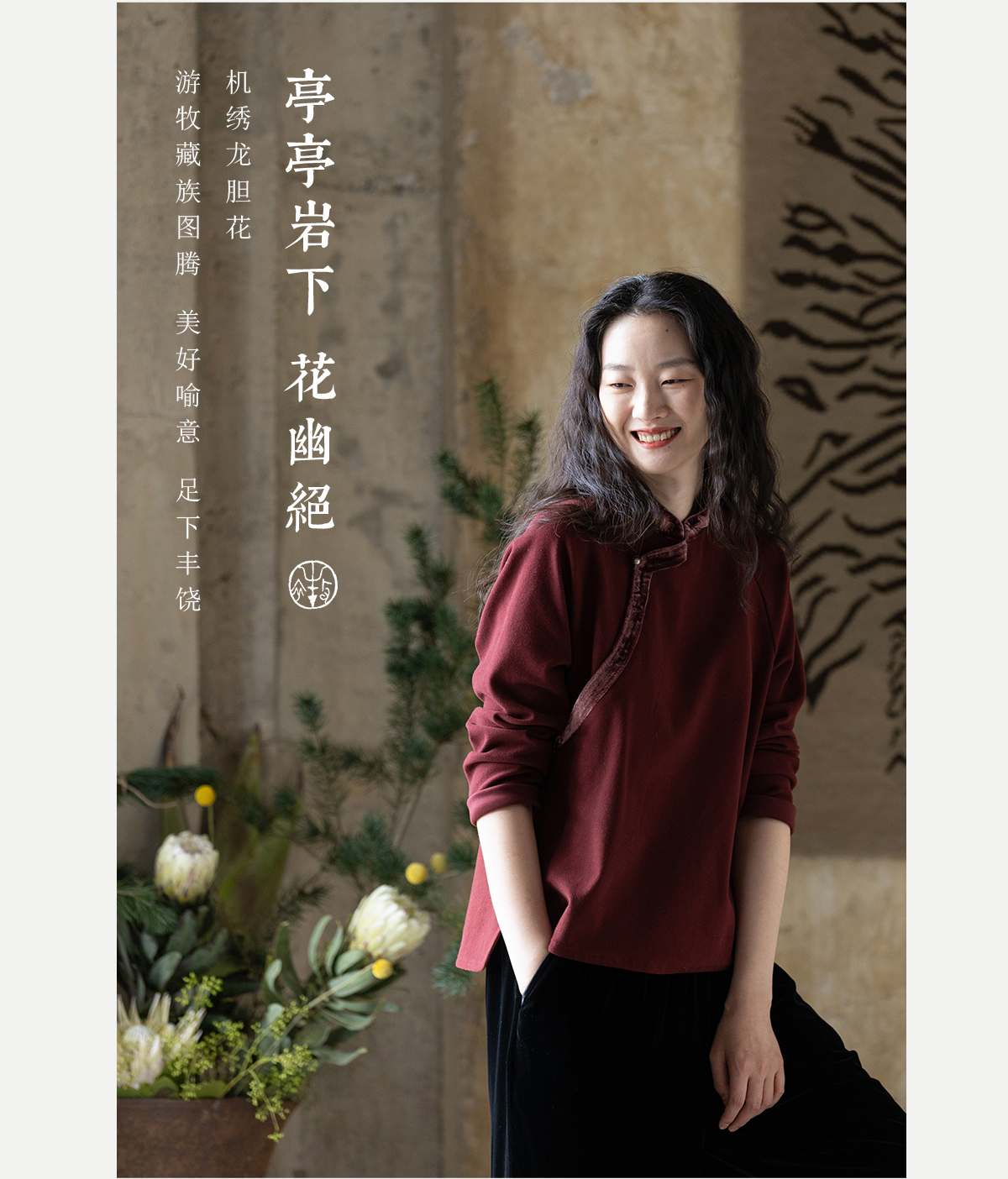 牧衣游原创 机绣棉质套头衫冬柔软亲肤复古文艺百搭宽松上衣 舟遥
