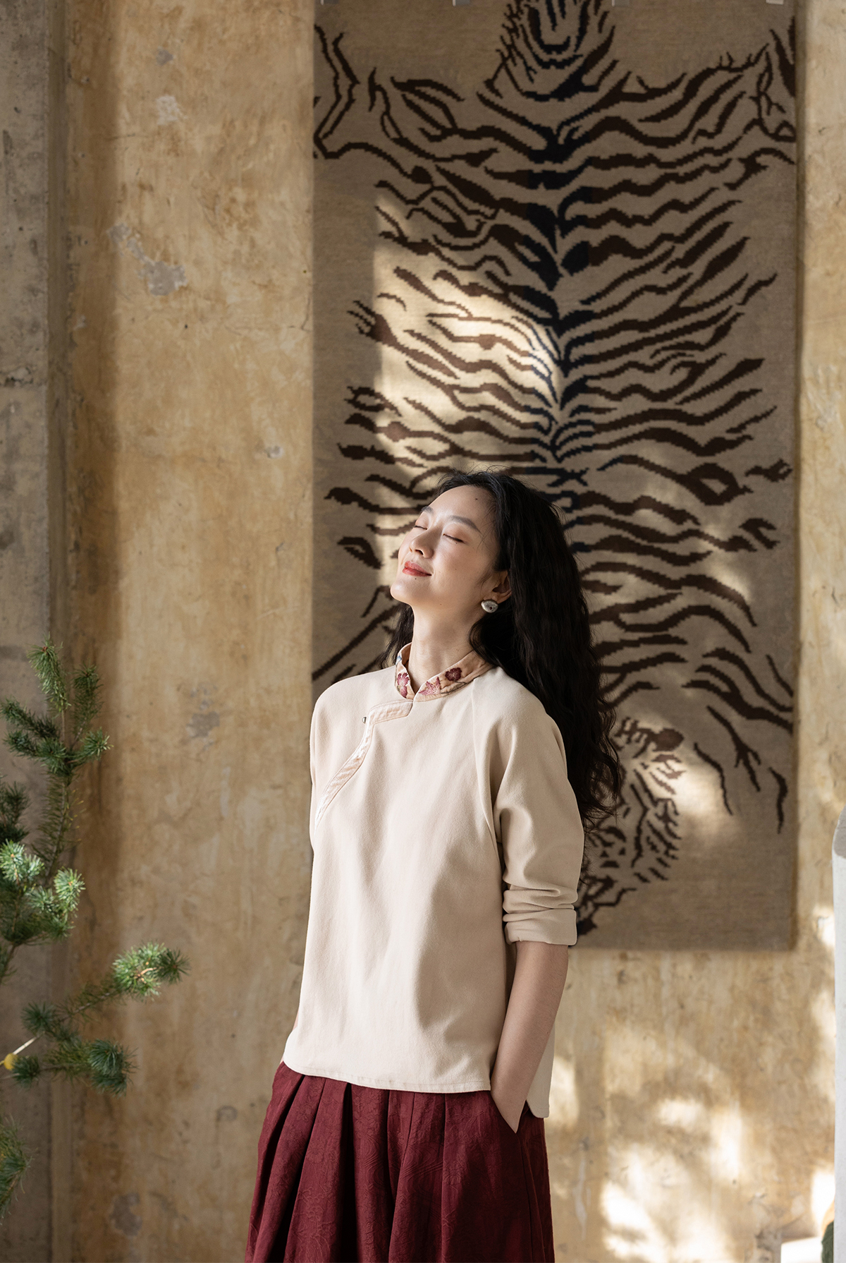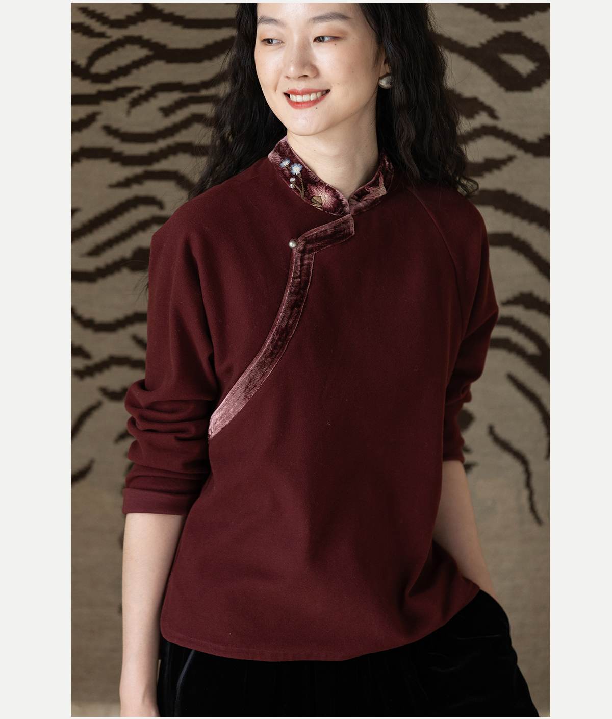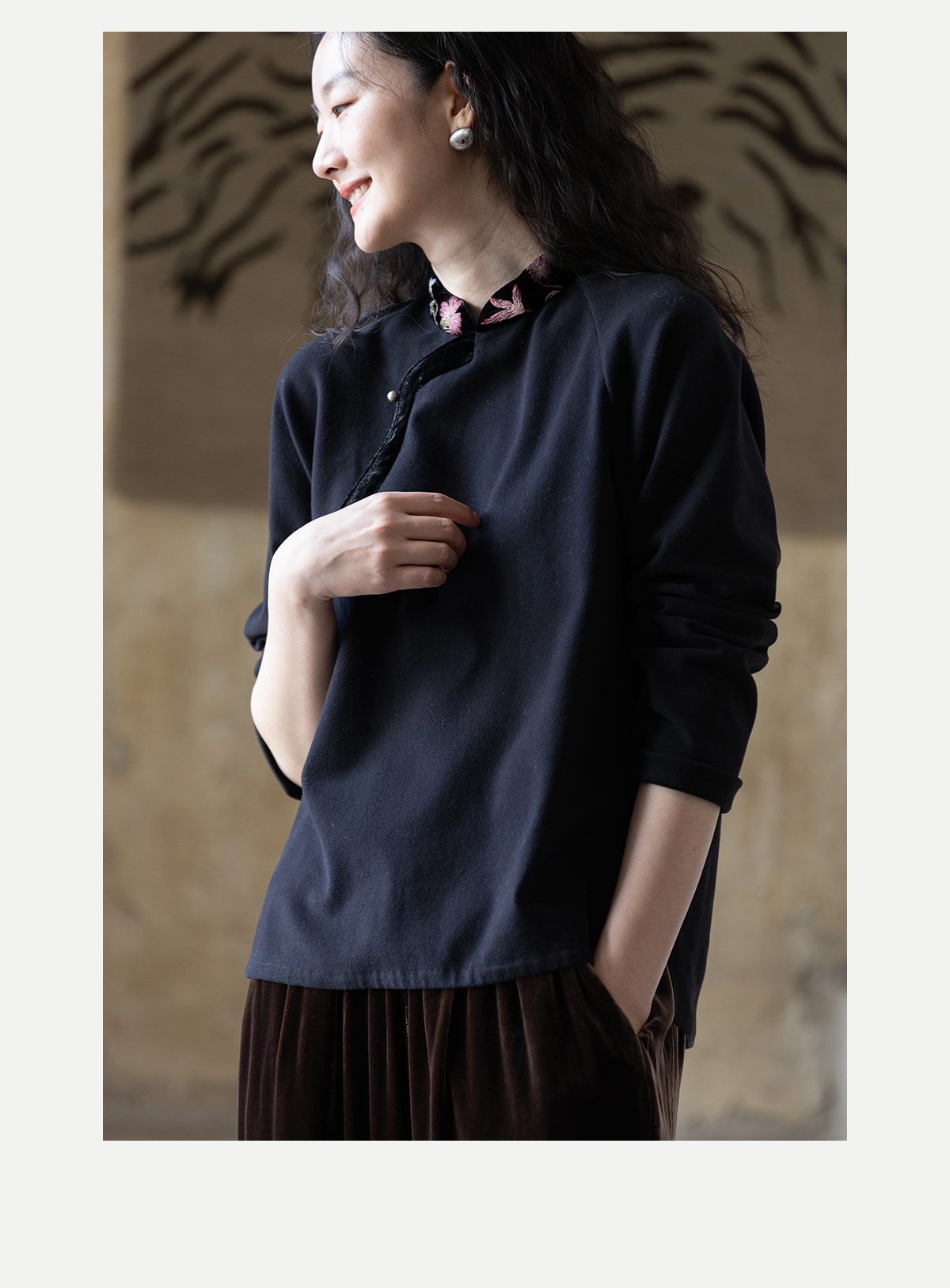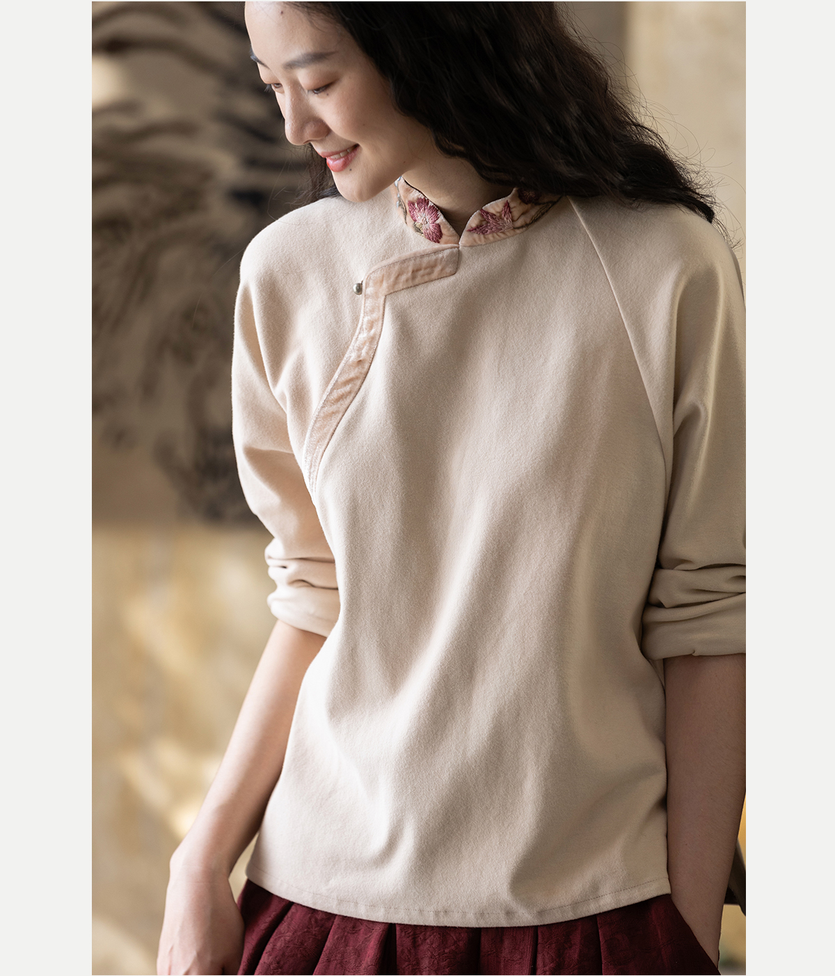 牧衣游原创 机绣棉质套头衫冬柔软亲肤复古文艺百搭宽松上衣 舟遥
