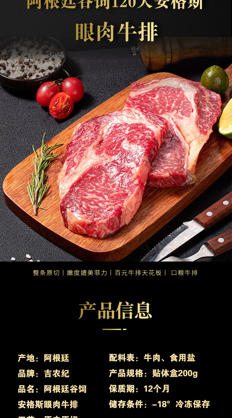 阿根廷冷冻谷饲安格斯眼肉牛排约200克