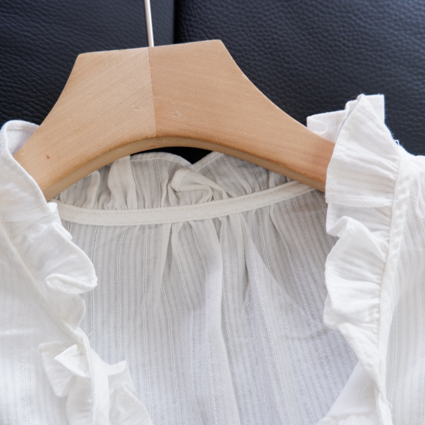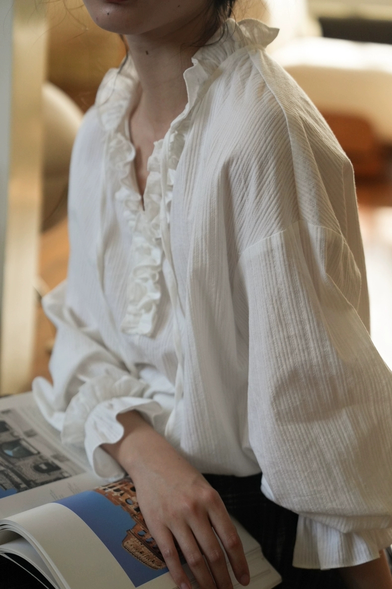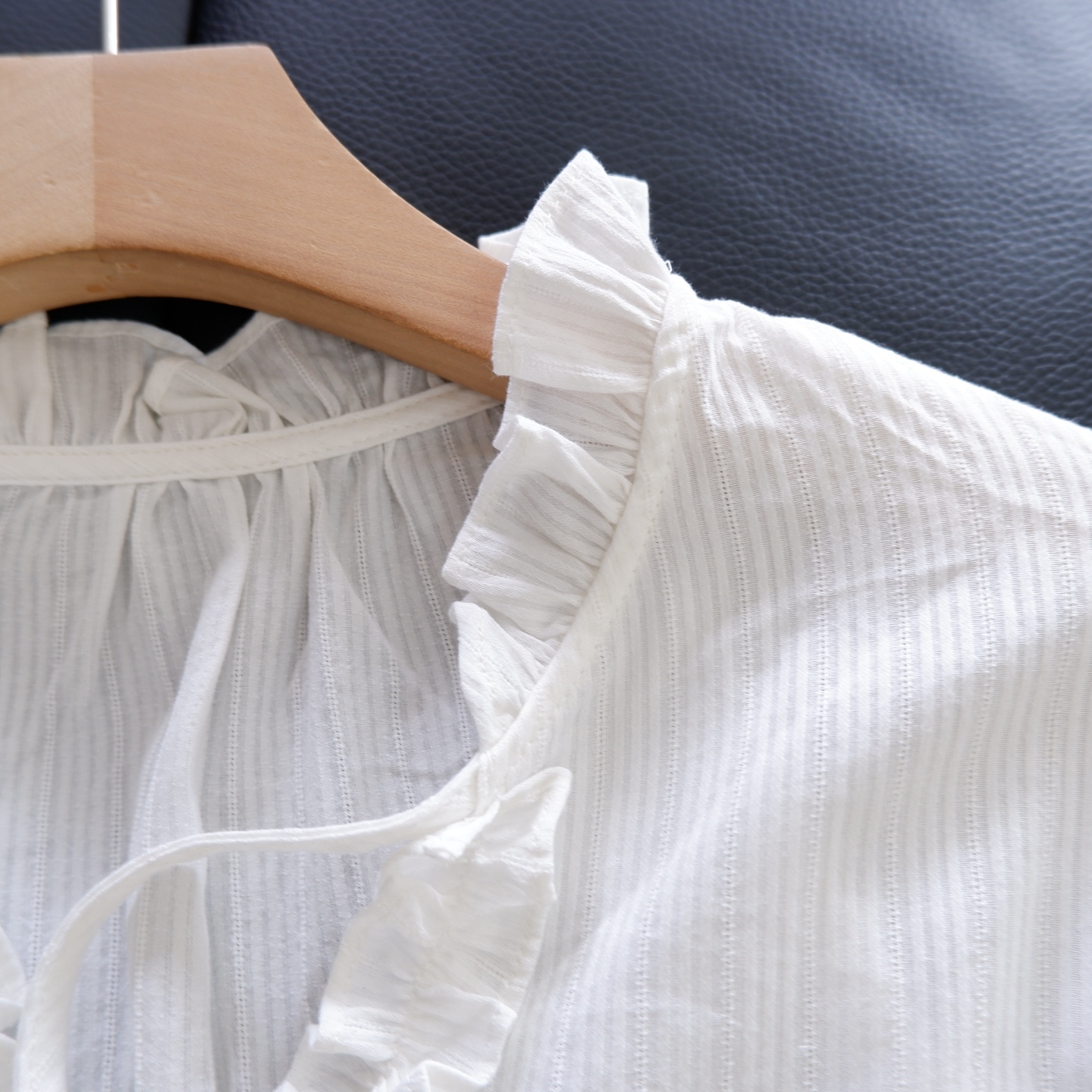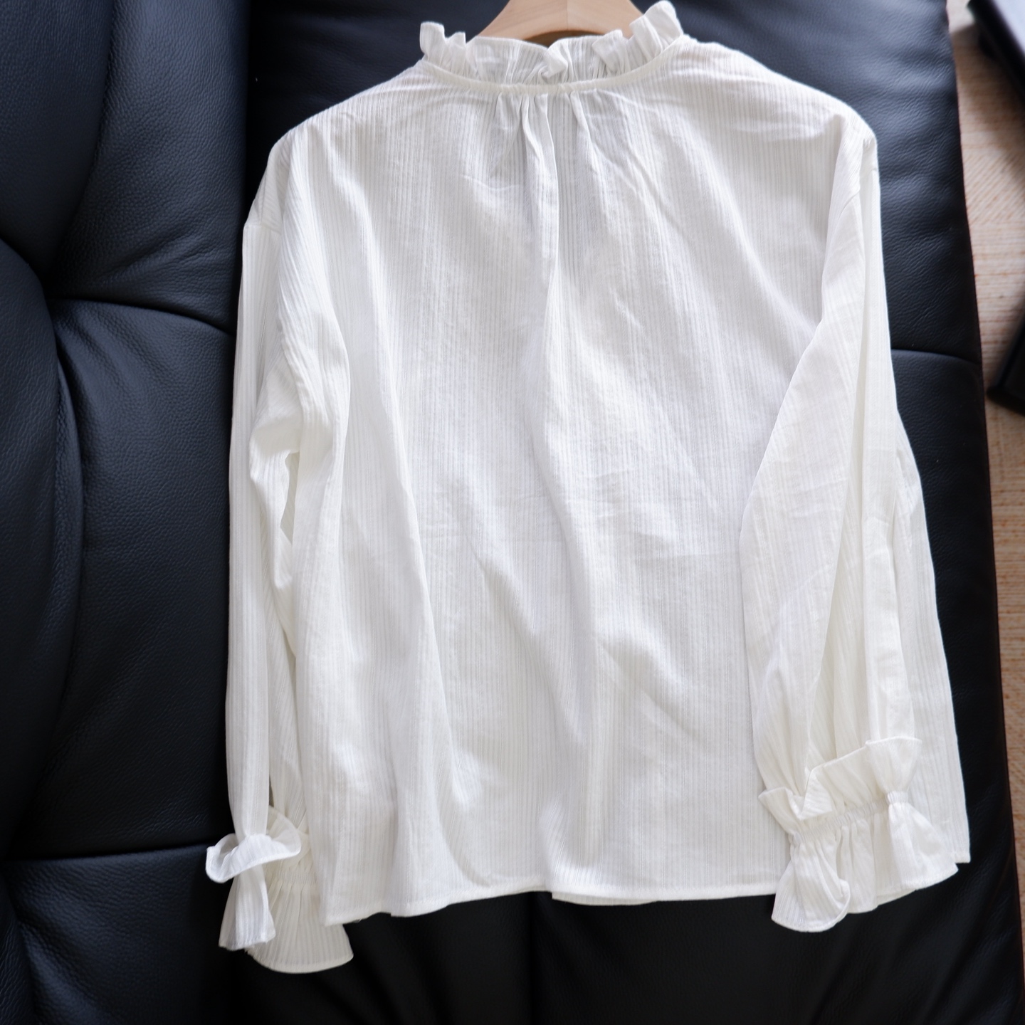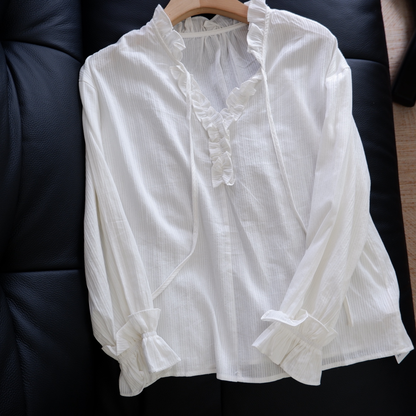 💰100元包邮, 春日小调~法式浪漫花边领 提花肌理全棉长袖衬衫【JS3693452】 这件试穿,有种独特的松弛味道 很有知性文艺女青年的范儿