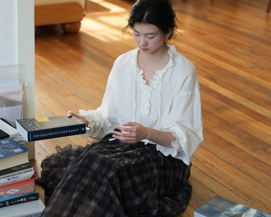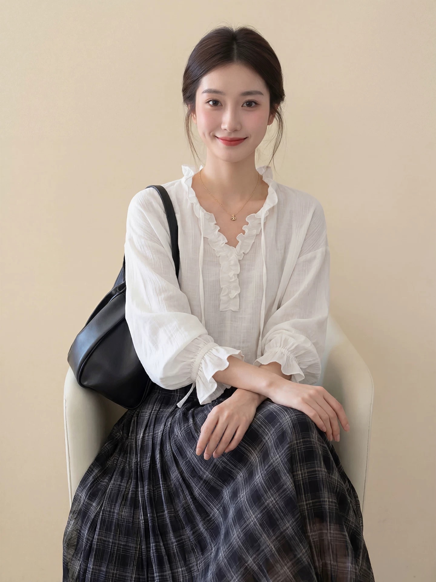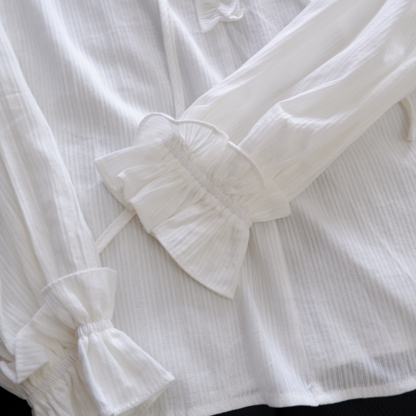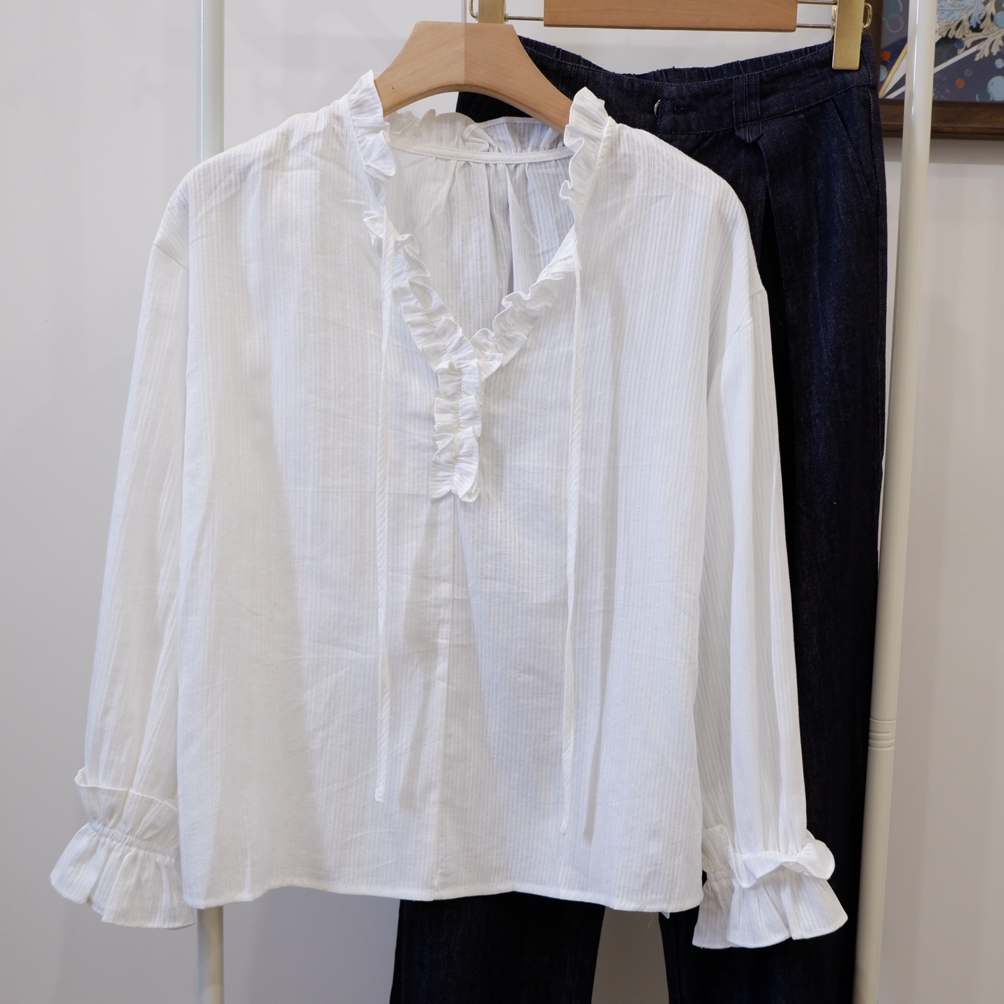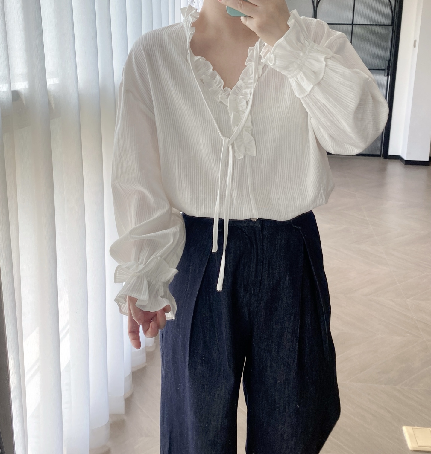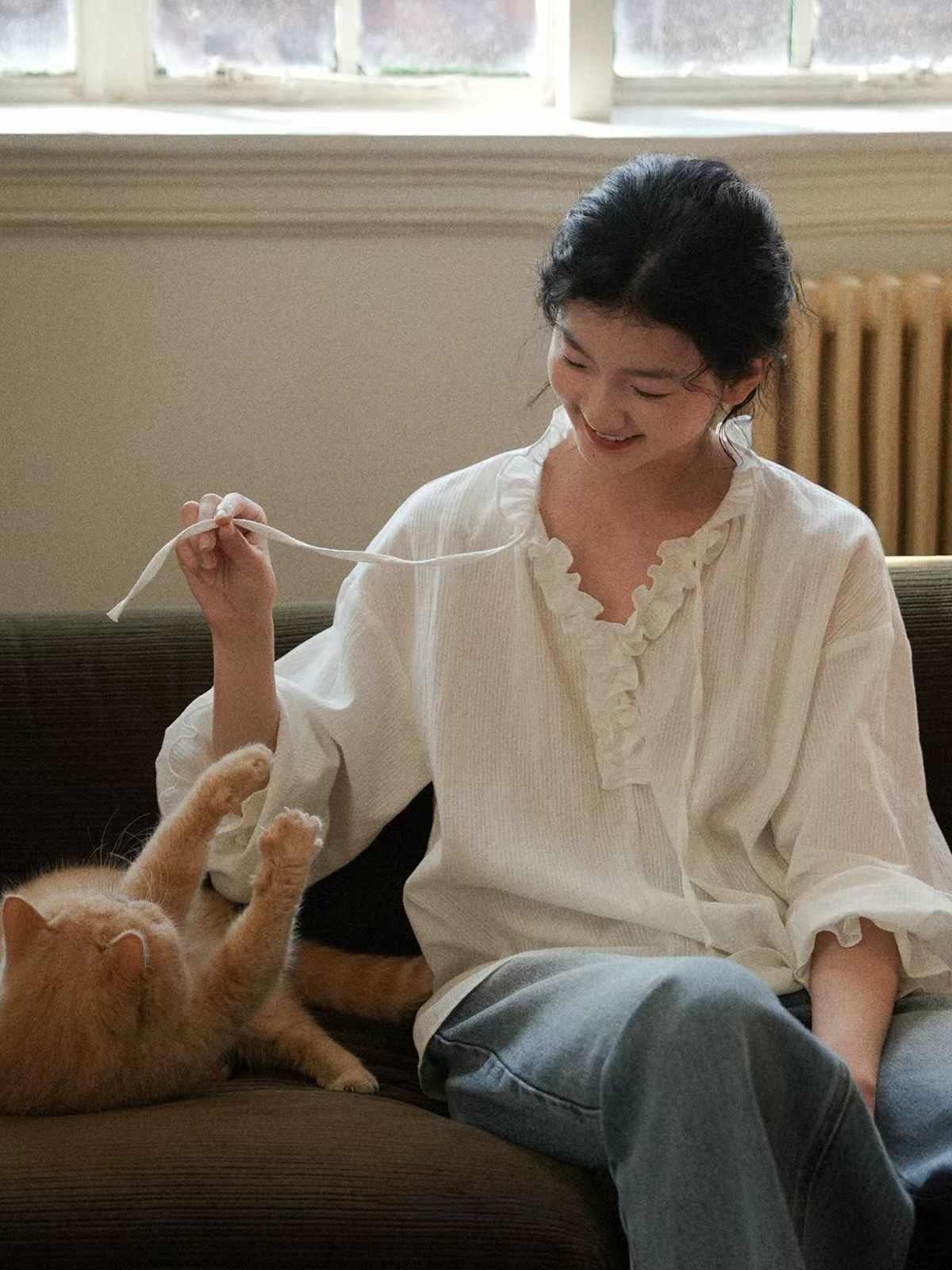 💰100元包邮, 春日小调~法式浪漫花边领 提花肌理全棉长袖衬衫【JS3693452】 这件试穿,有种独特的松弛味道 很有知性文艺女青年的范儿