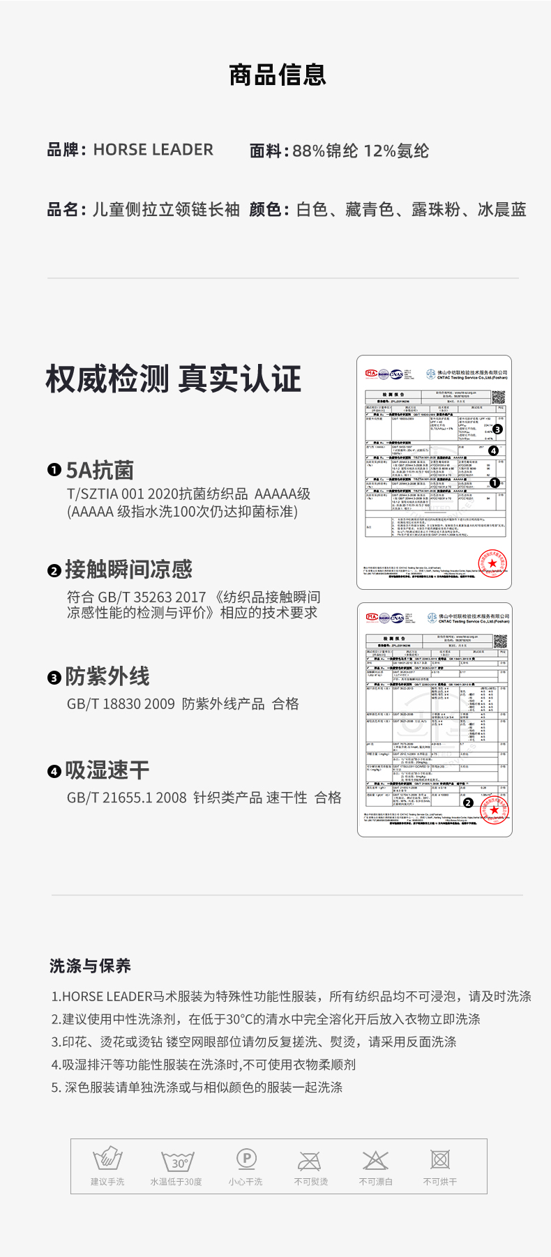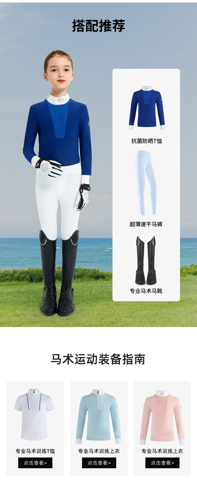 horseleader夏季儿童马术长袖侧拉链款-13605