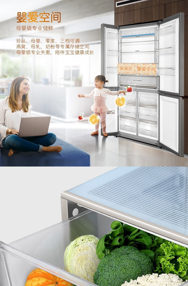 美的(Midea)546升对开门冰箱 19分钟急速净味 智能操控 三档变温 温湿精控 BCD-546WKGPZM(Q)
