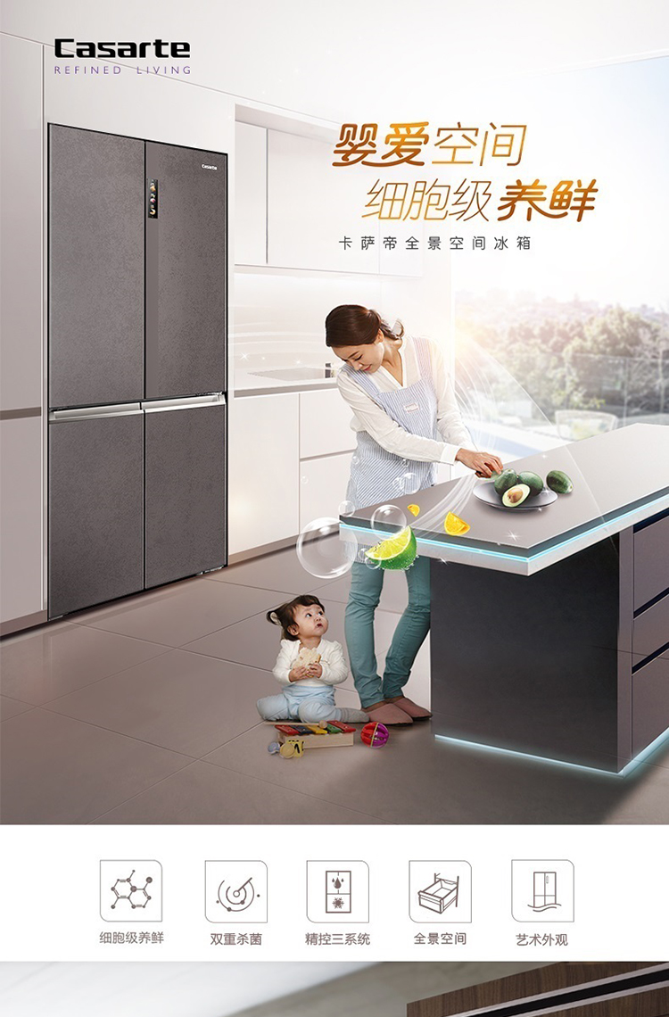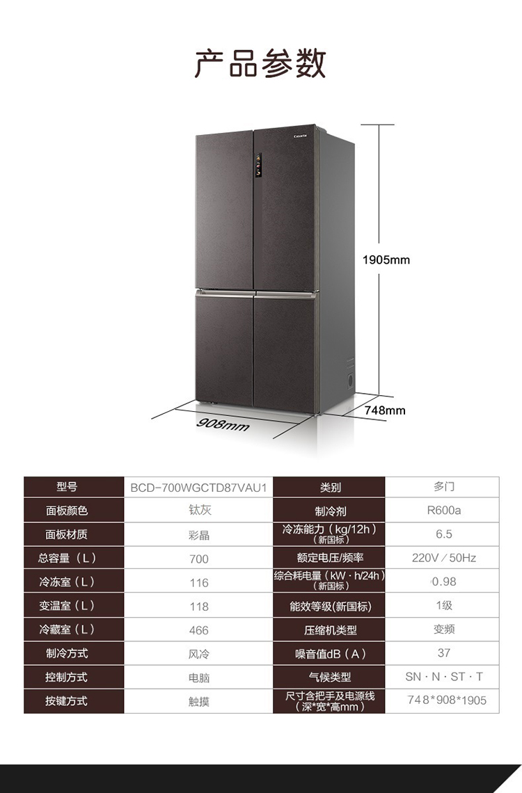 卡萨帝全景空间变频冰箱700升十字对开门冰BCD-700WGCTD87VAU1