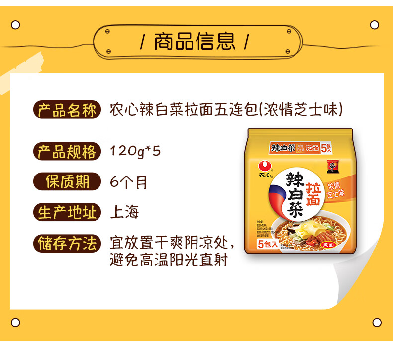 农心辣白菜浓情芝士拉面120g