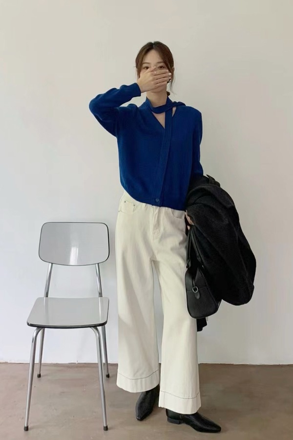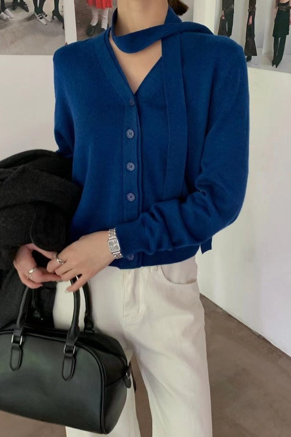ANSUABEL 时尚气质飘带针织开衫 21579