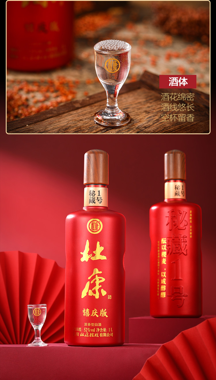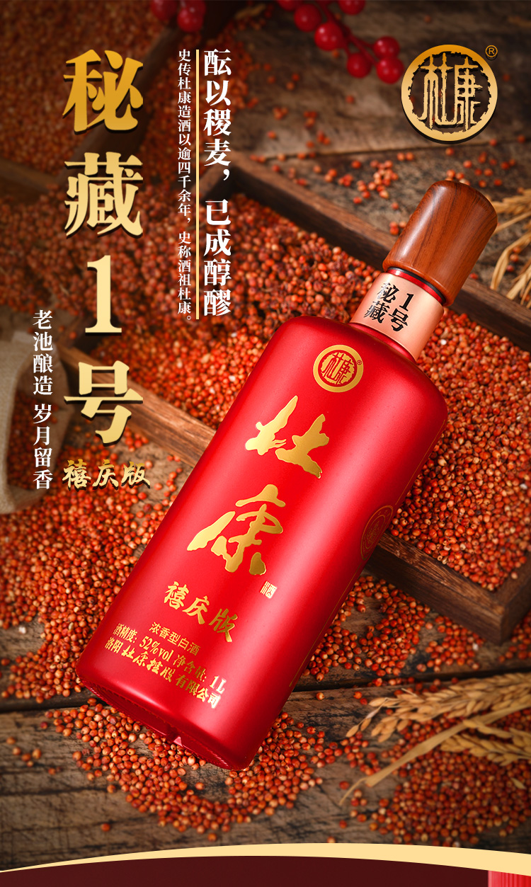 52°杜康秘藏1号禧庆版 1000mL*4瓶浓香型酒整箱装优级纯粮酒 单瓶扫码价199元/瓶 领券后再下单