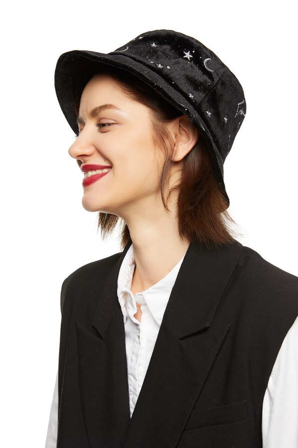 SUMMER & SAGE 星空刺绣黑色渔夫帽 8551