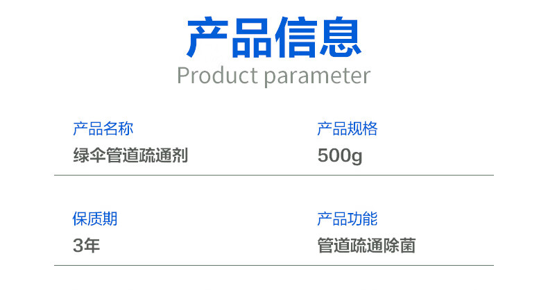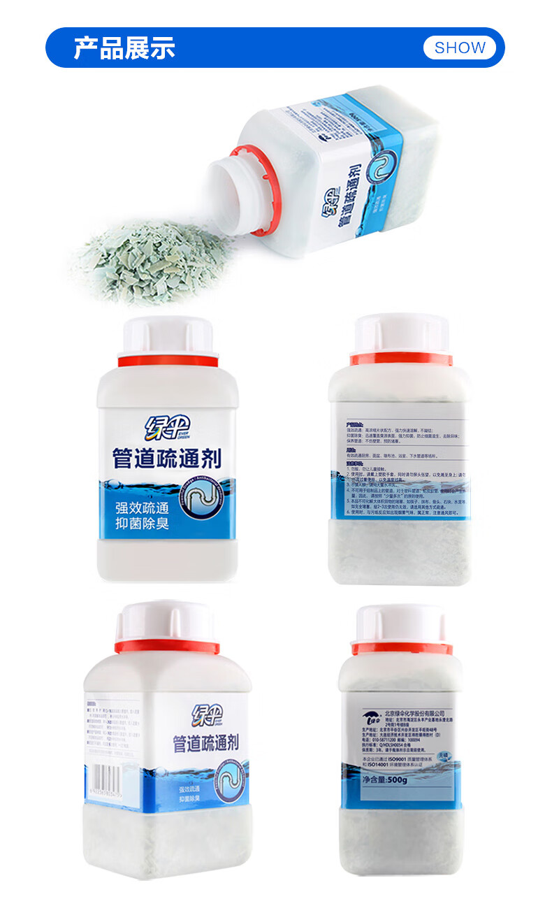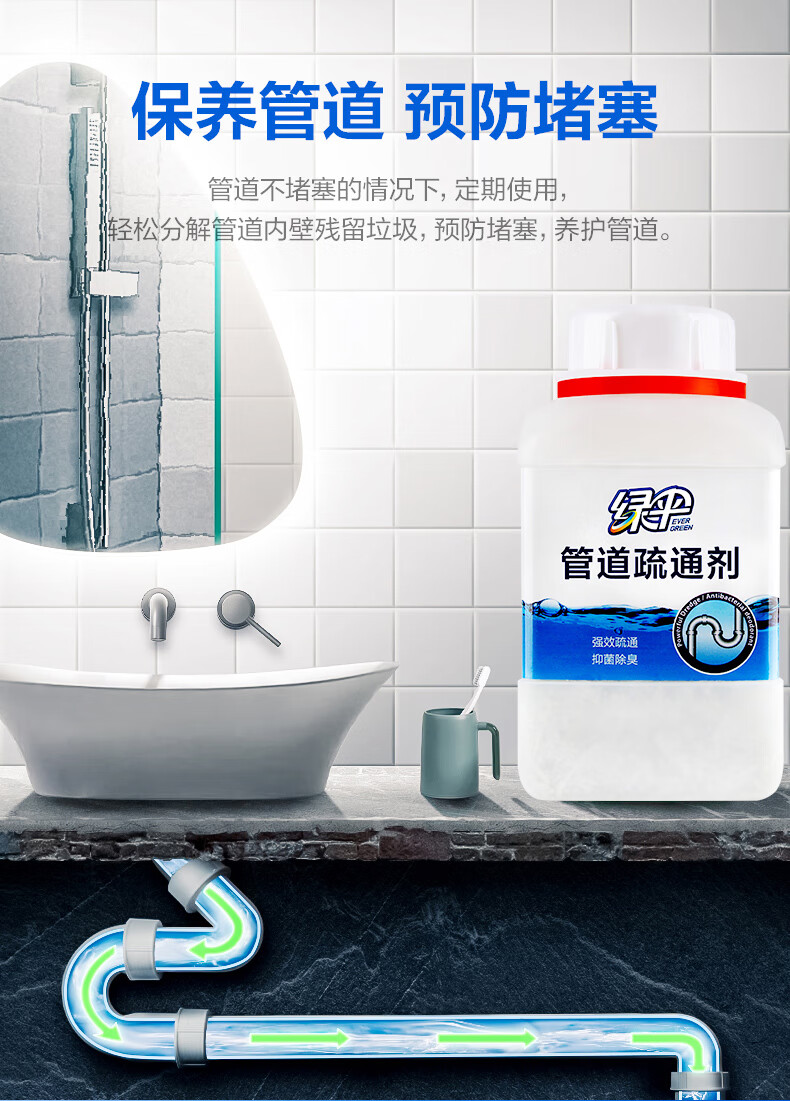 绿伞下水道管道疏通剂500g厕所马桶地漏浴室厨房疏通剂 抑菌除臭 1330603