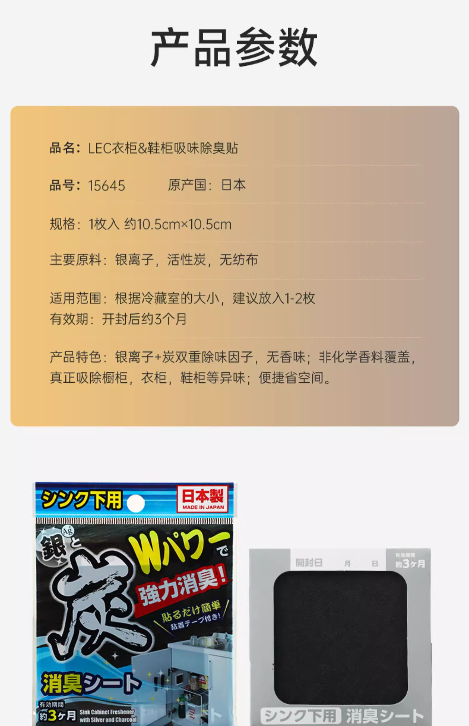 LEC激落君冰箱橱柜衣柜鞋柜吸味除臭贴除味消味贴