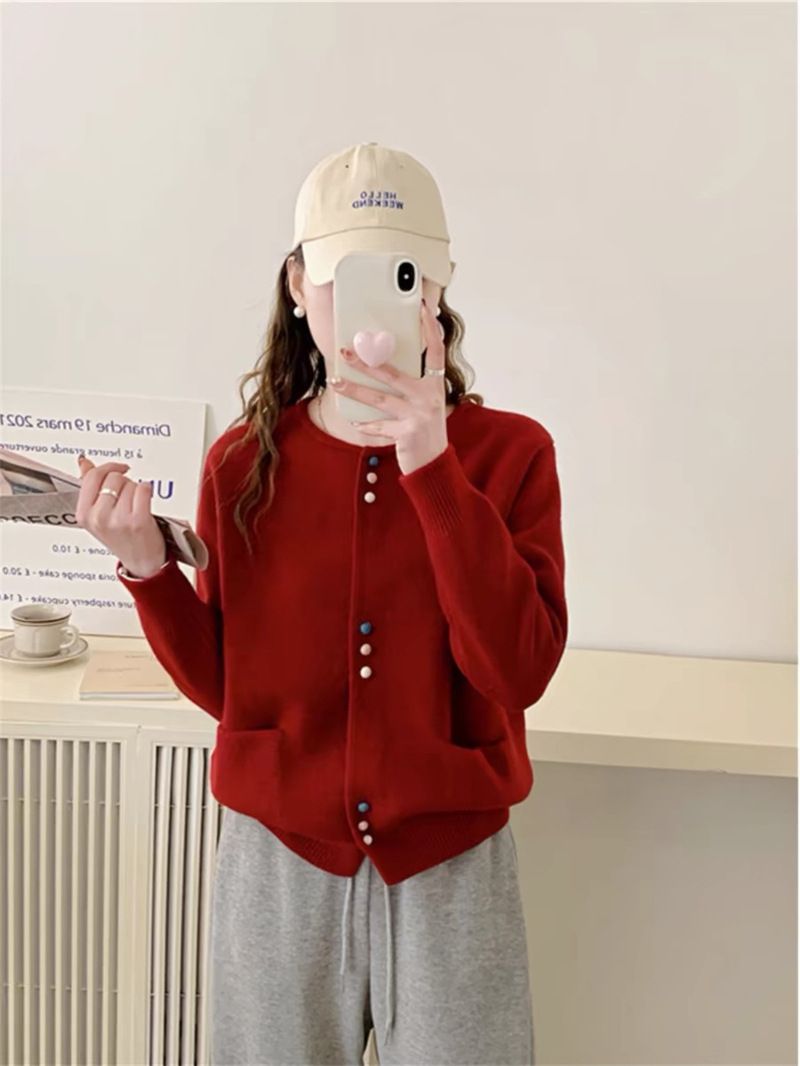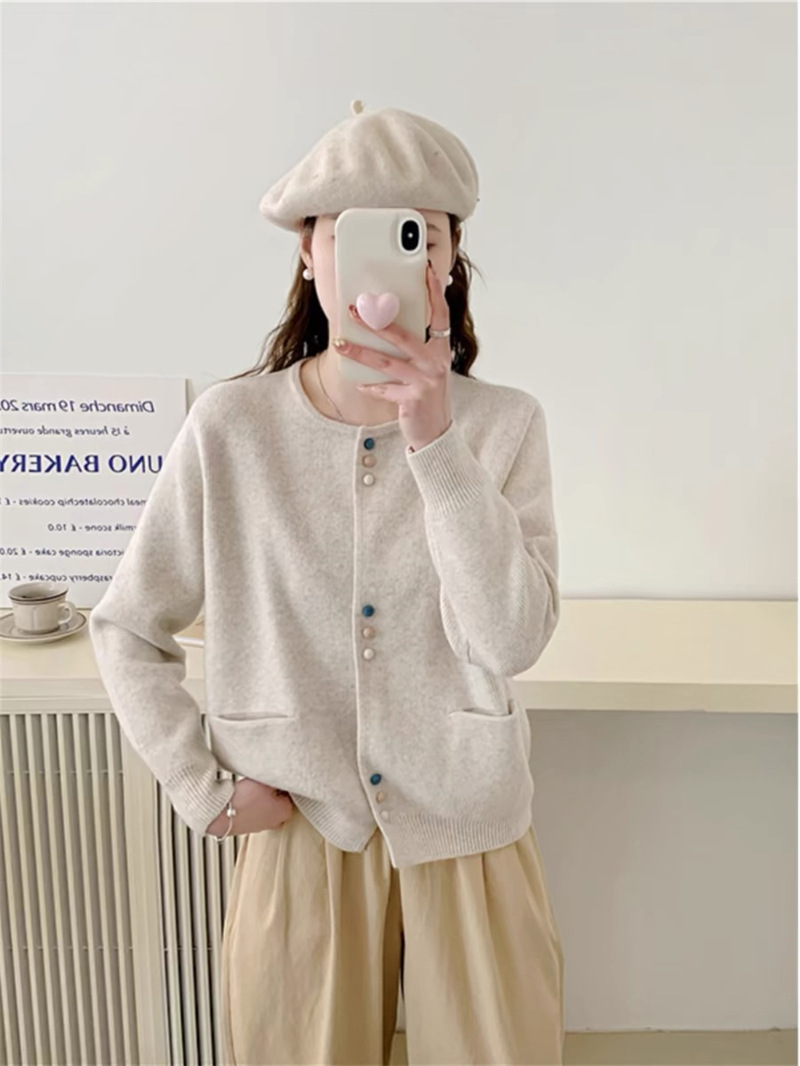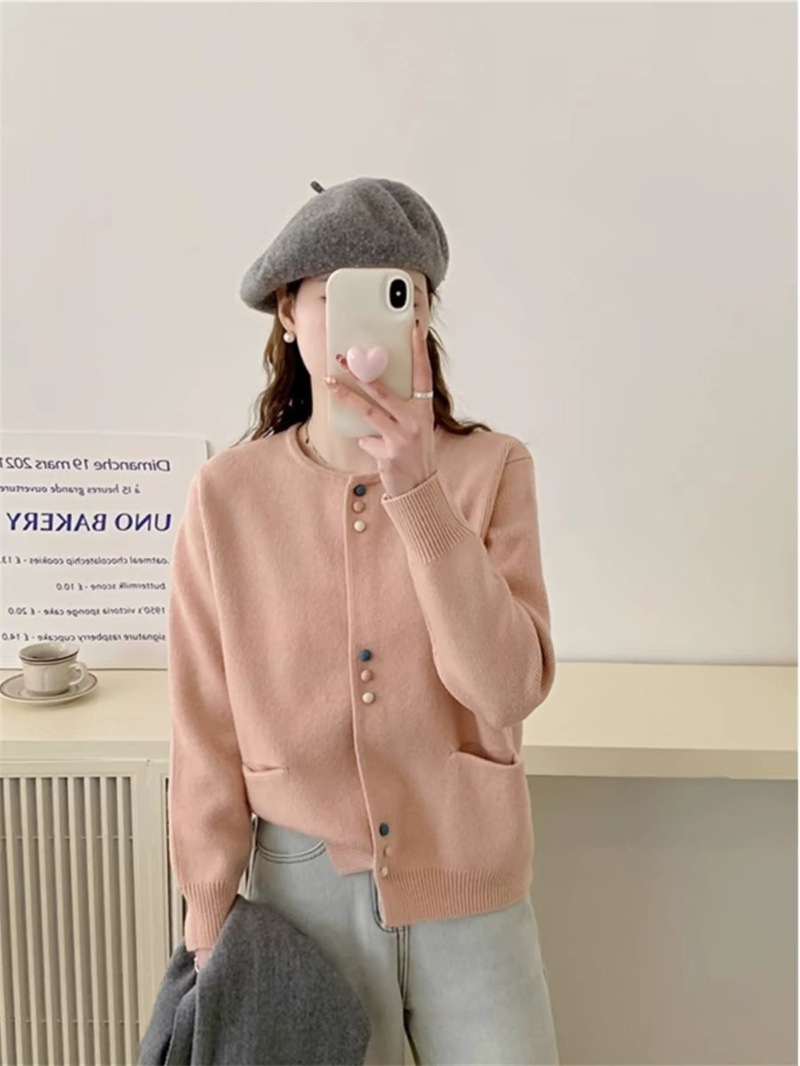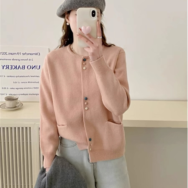 春秋2024新款时尚洋气毛衣外套女韩版宽松慵懒风圆领针织开衫上衣
