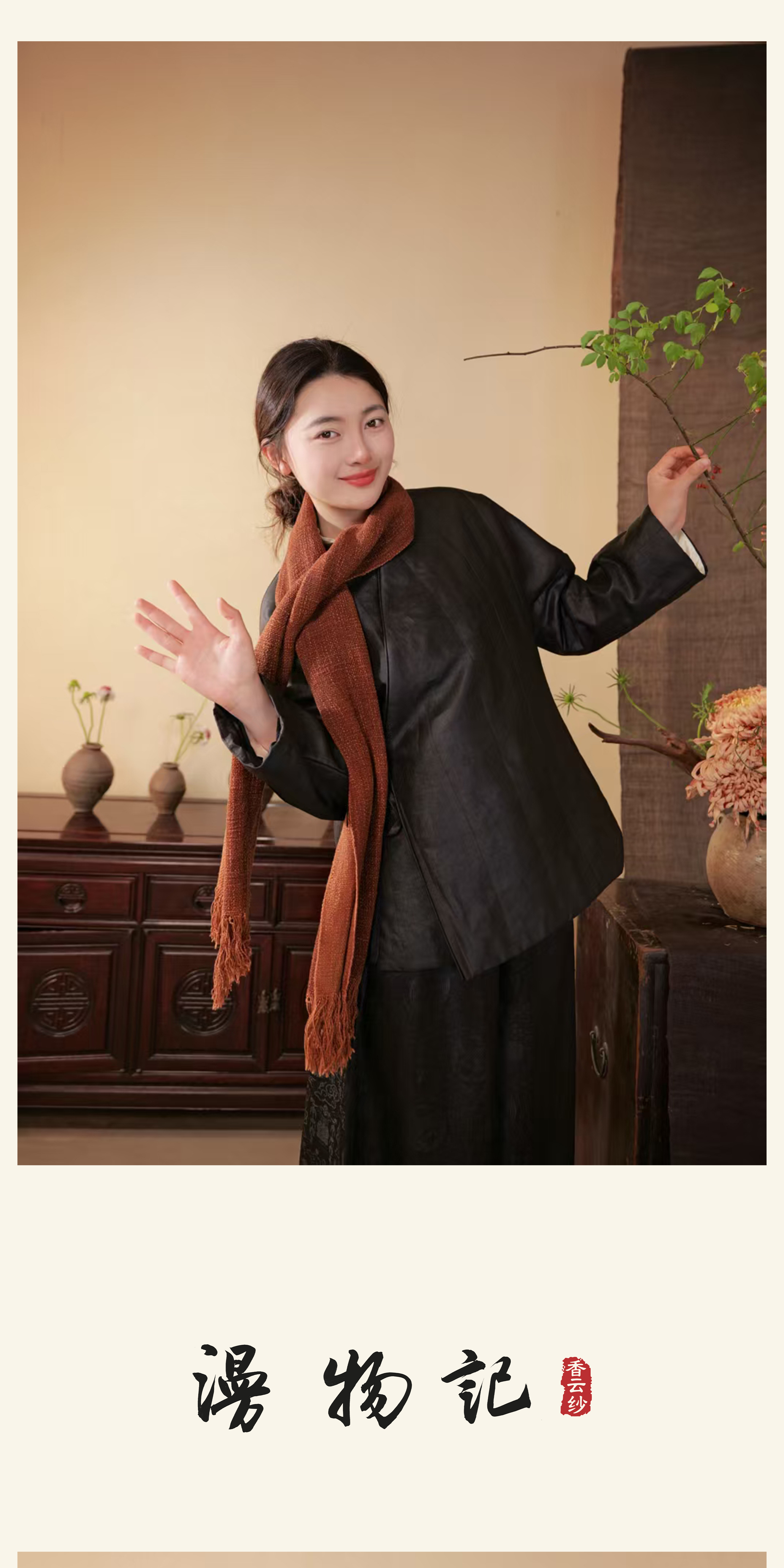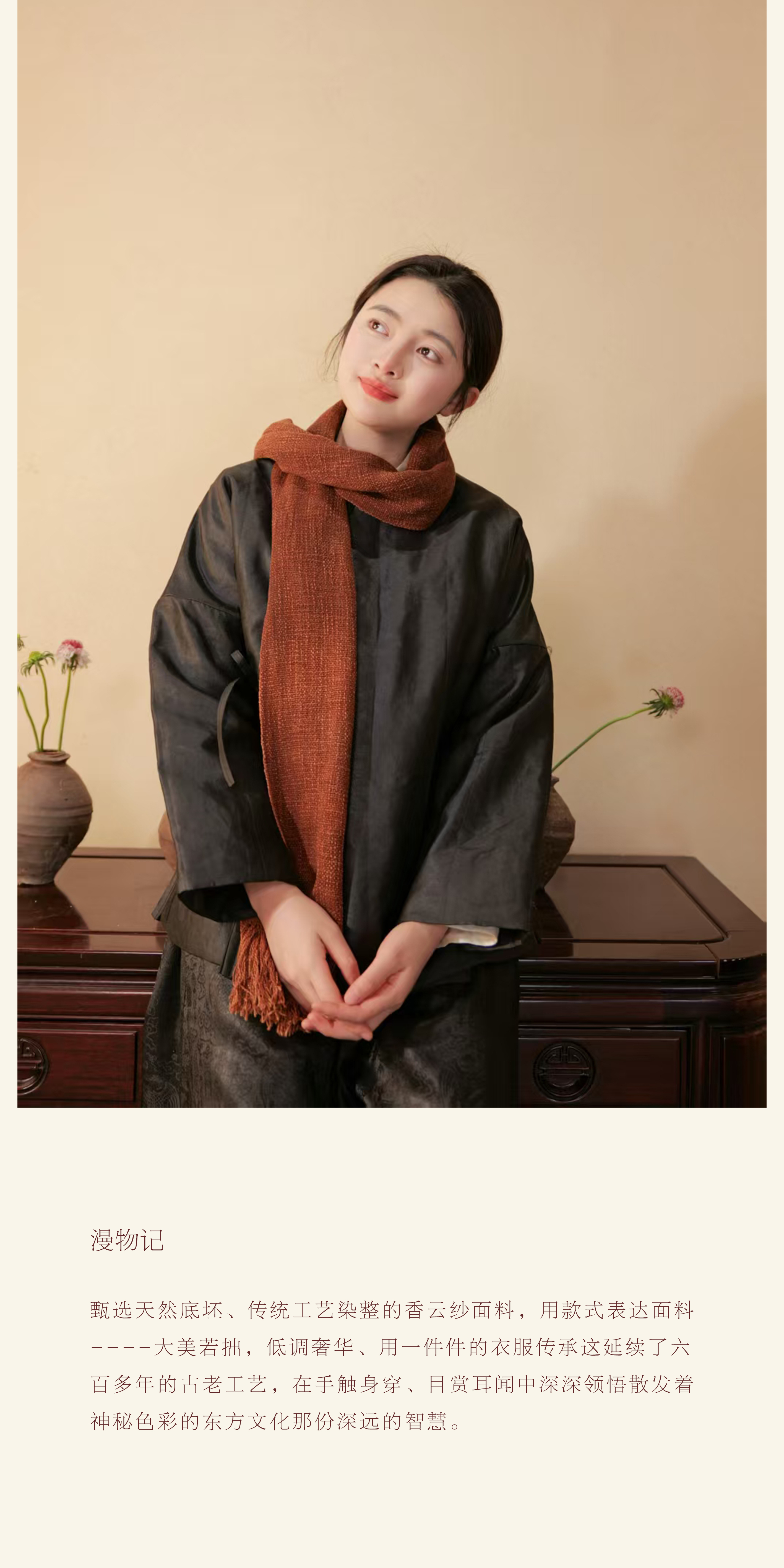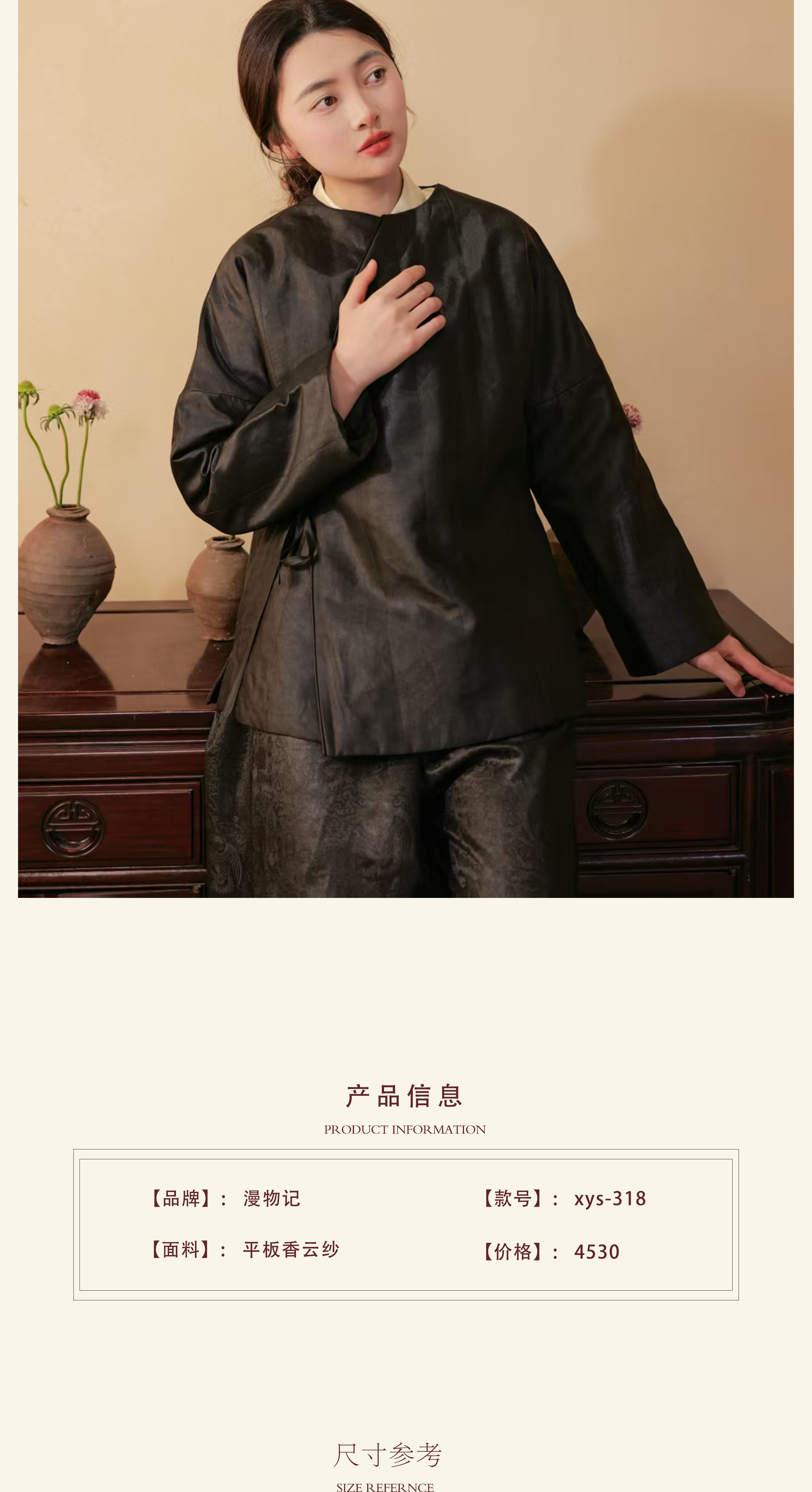 漫物记平板香云纱圆领系带棉上衣xys-318