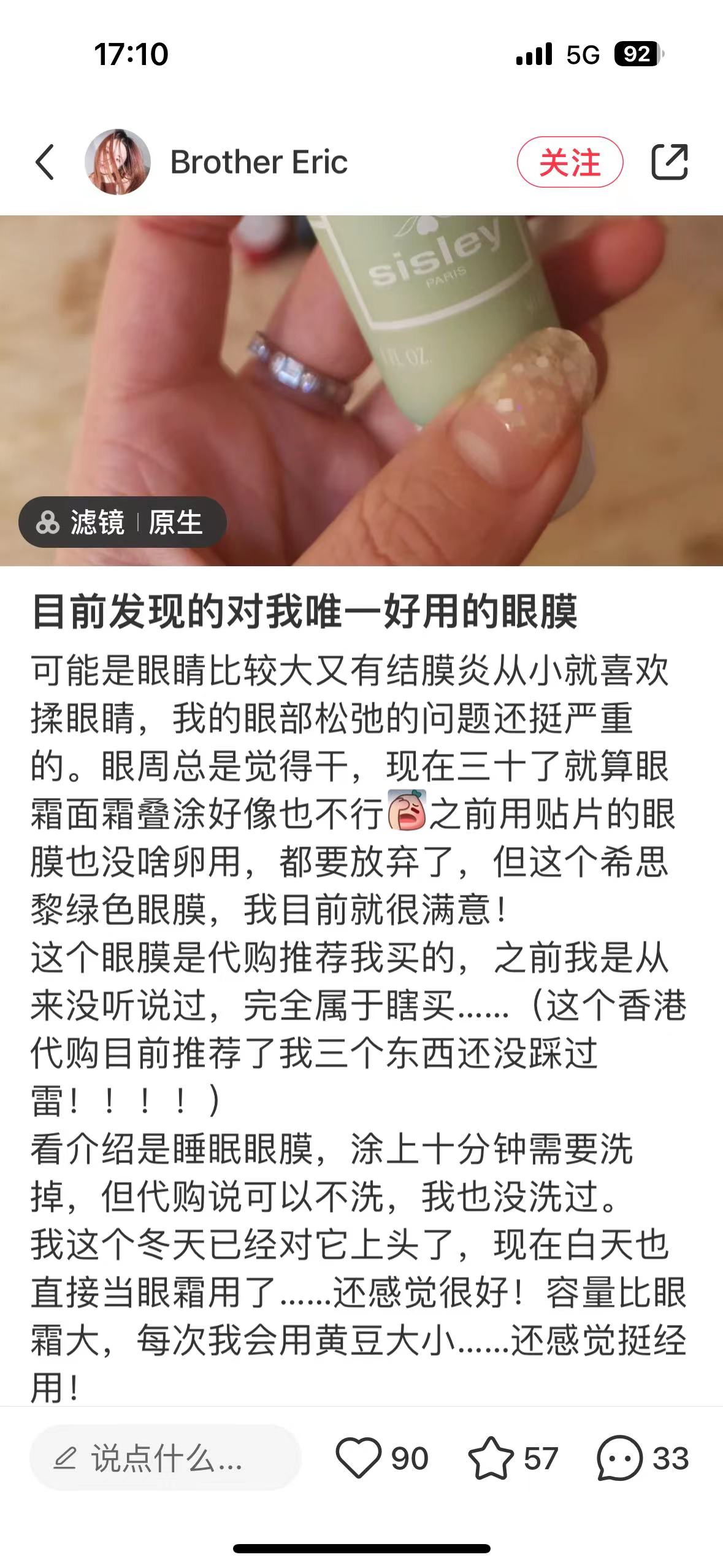 对细纹、黑眼圈及眼袋有非常不错的效果