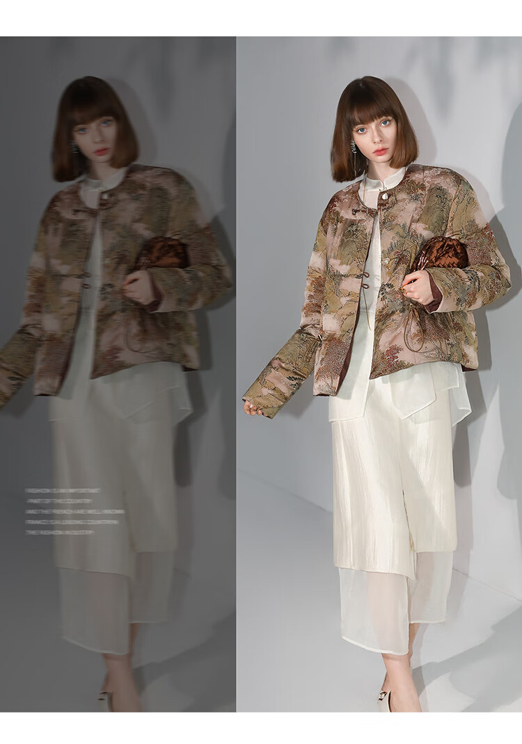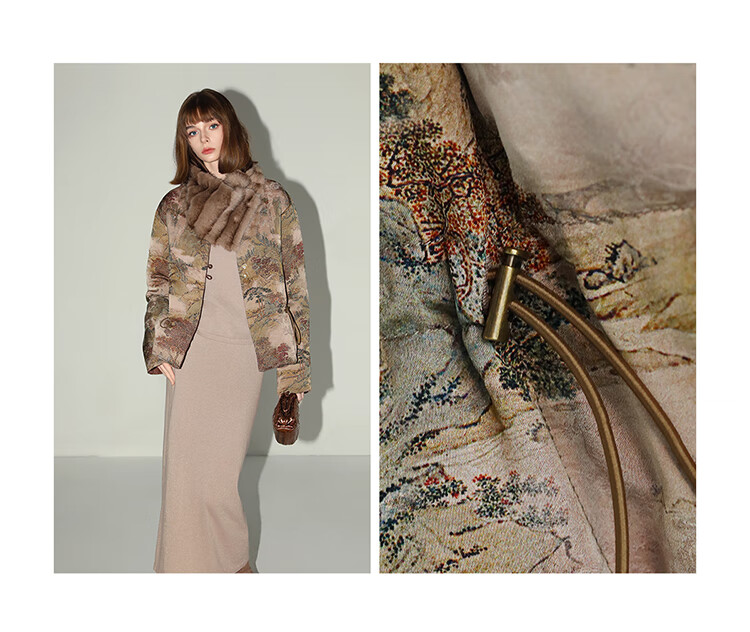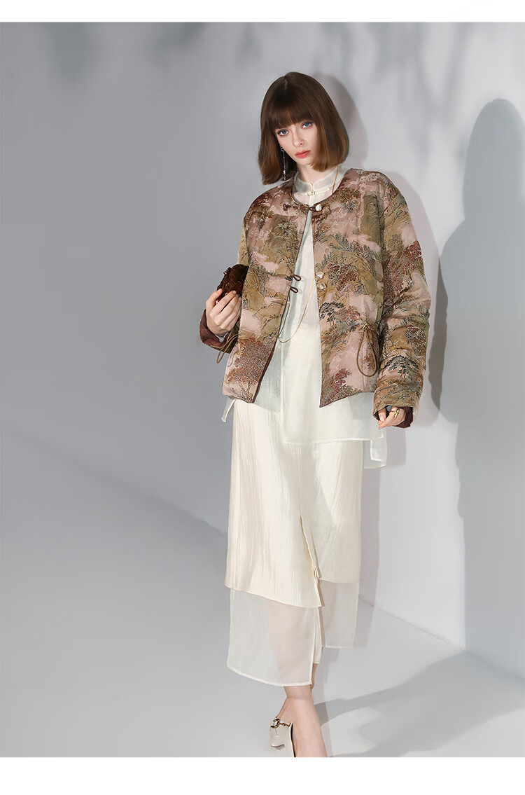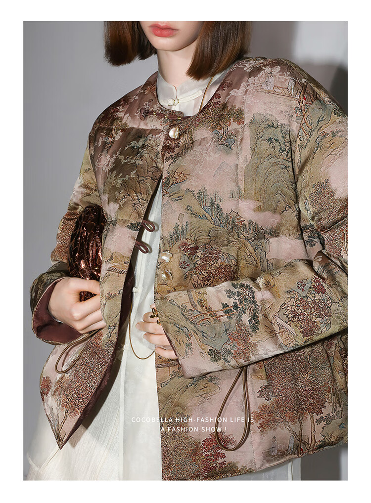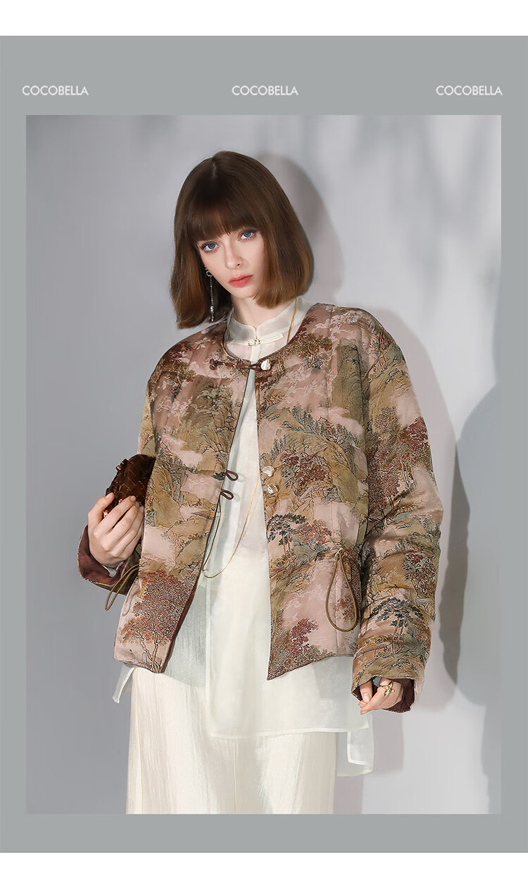 【秒杀特惠】COCOBELLA[双面穿]新中式国风100%人丝提花新国标羽绒服DC3026