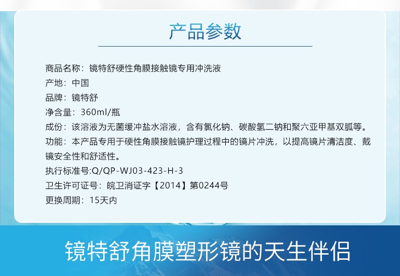 KJ ZCH 硬性角膜接触镜专用冲洗液 360ml 镜特舒隐形眼镜用品系列满195元送硬性角膜接触镜专用冲洗液1瓶 满460元赠送深度洁净液1瓶