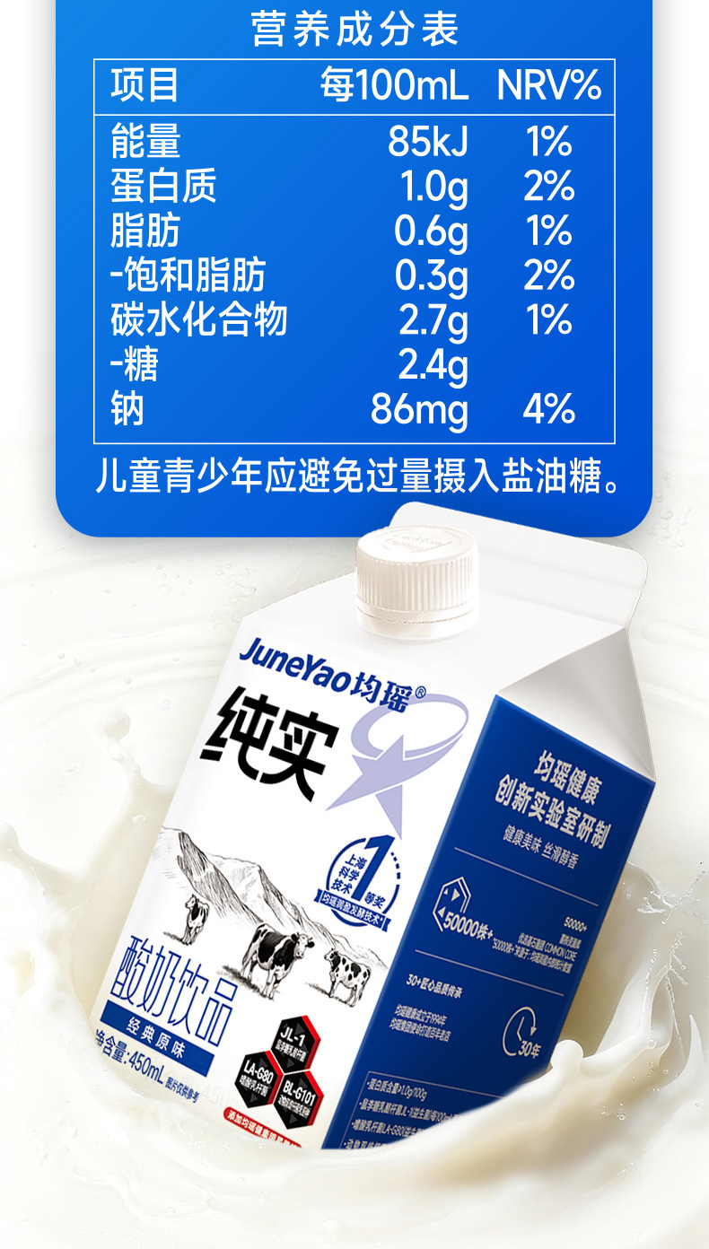 【新品上市】均瑶纯实酸奶饮品450mL/盒