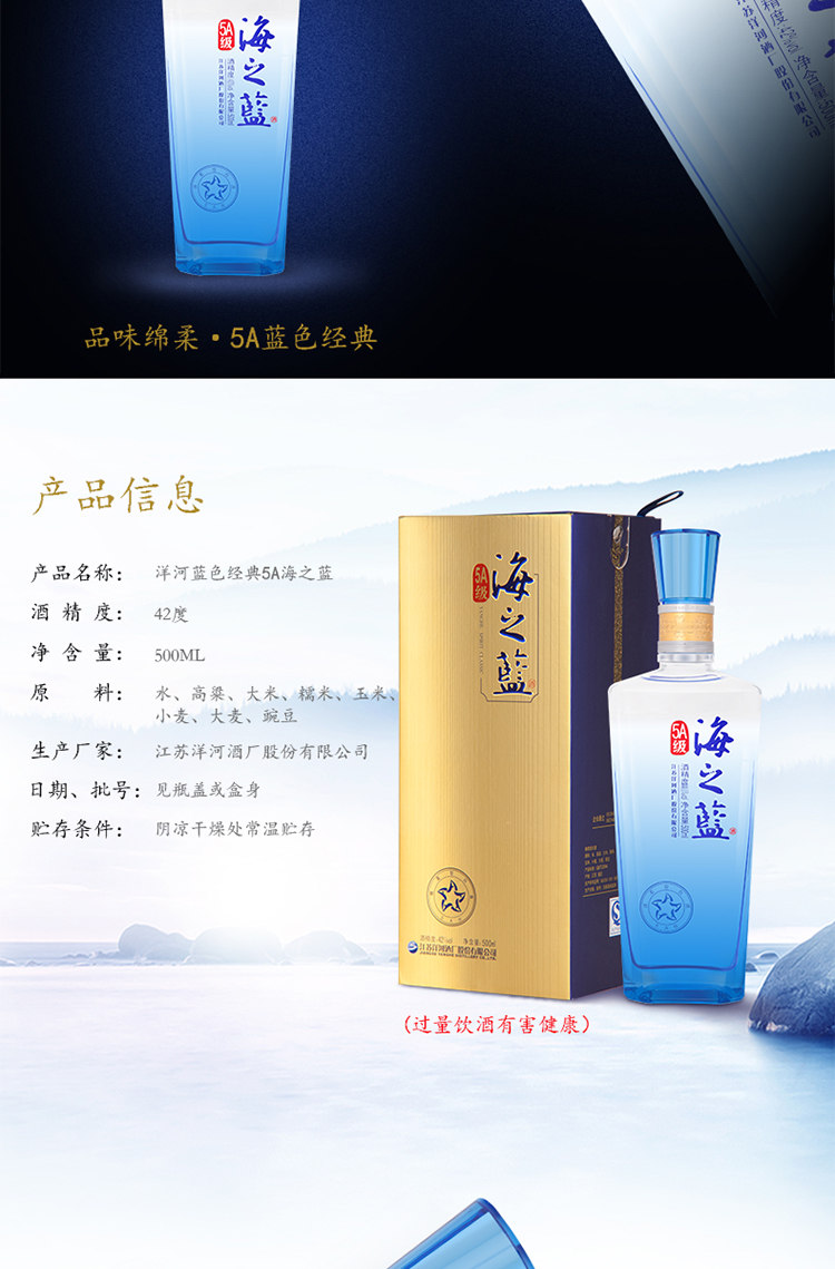 【清仓特价】洋河5A级海之蓝52度500ml*1瓶外包装有损坏/瑕疵 不影响酒质 介意勿拍(306残损仓发货)