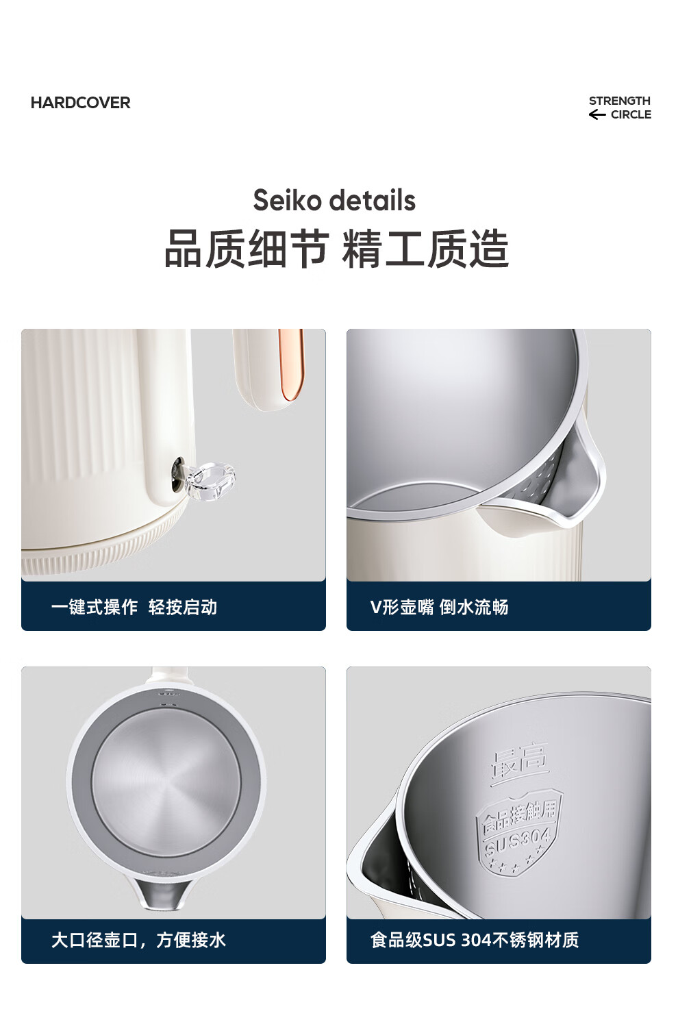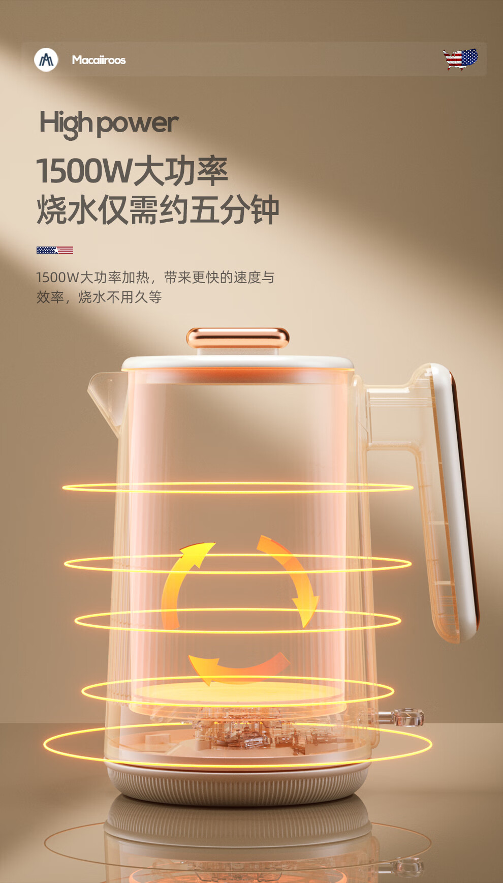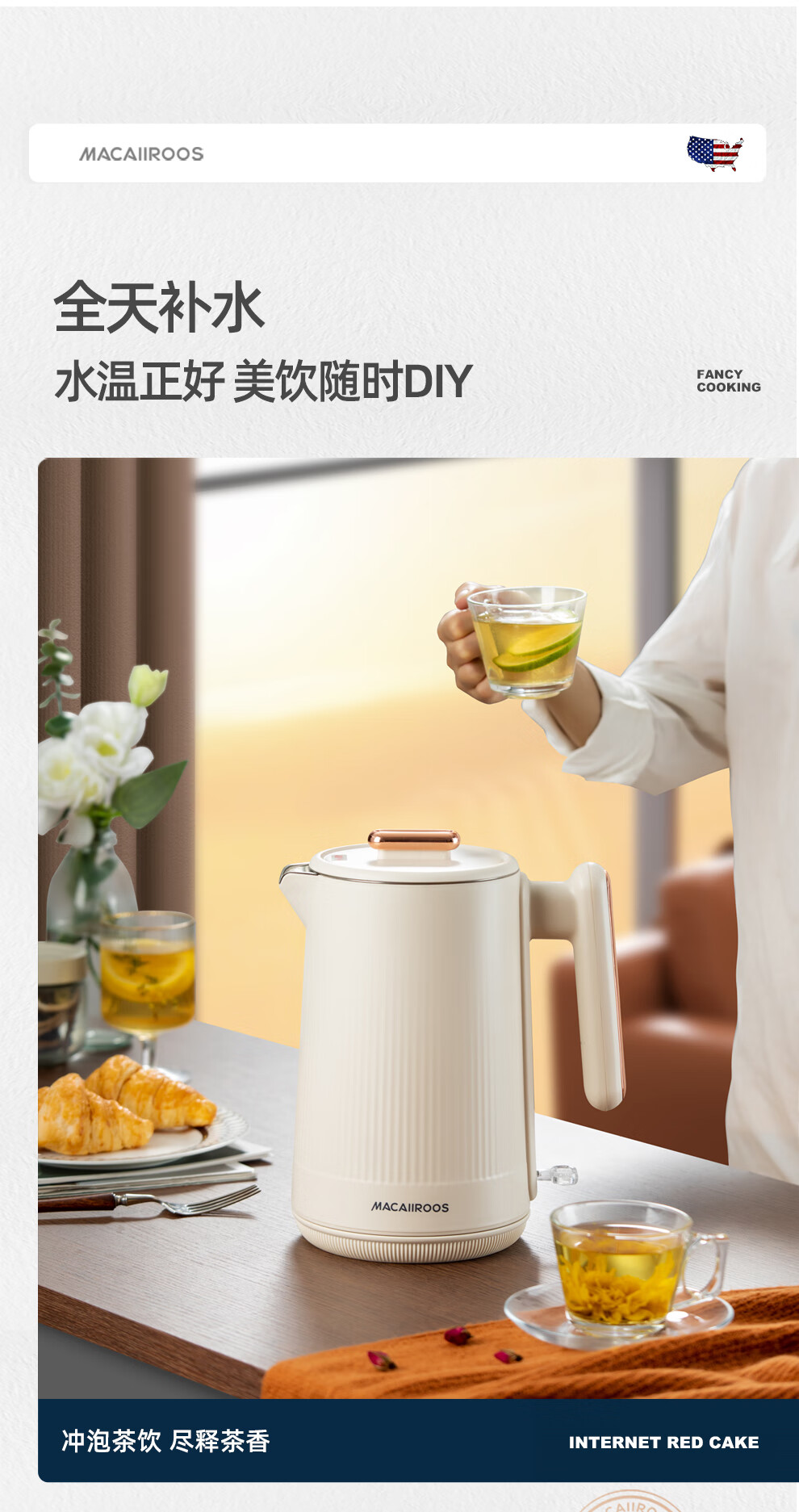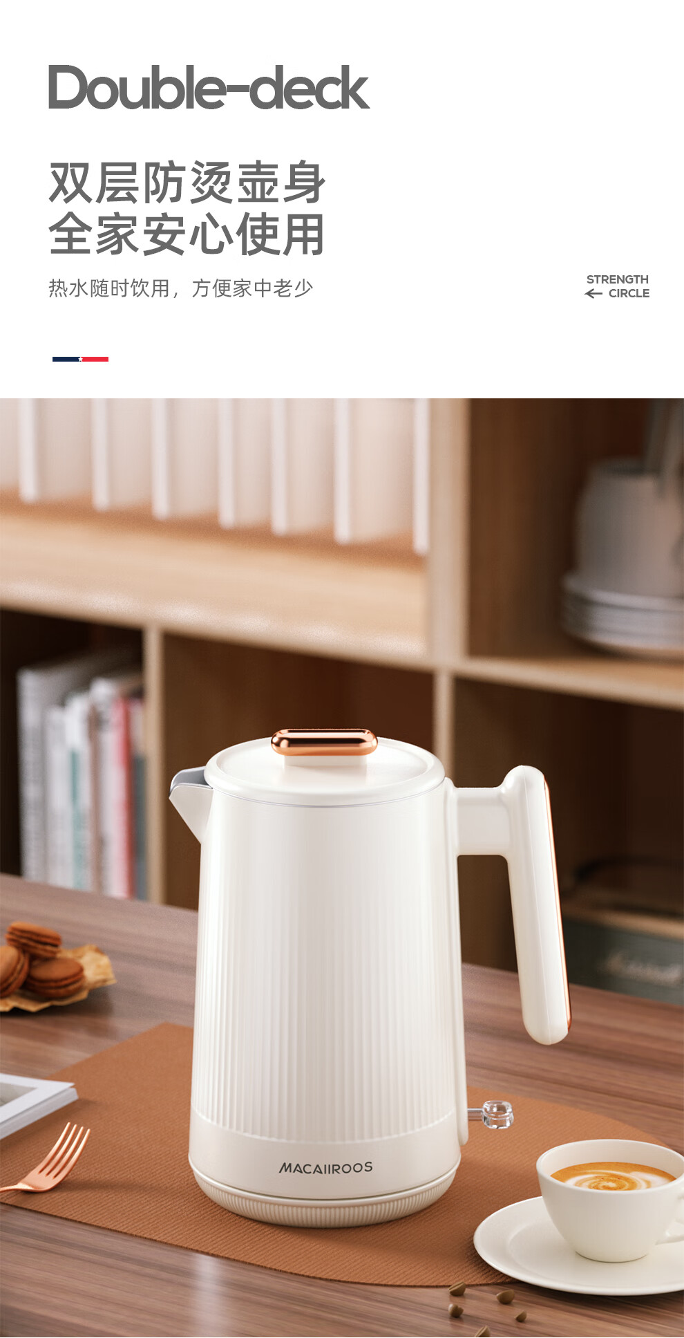 【小家电】迈卡罗MC-SH159电水壶烧水壶 热水壶电热水壶304不锈钢家用双层防烫开水壶HF