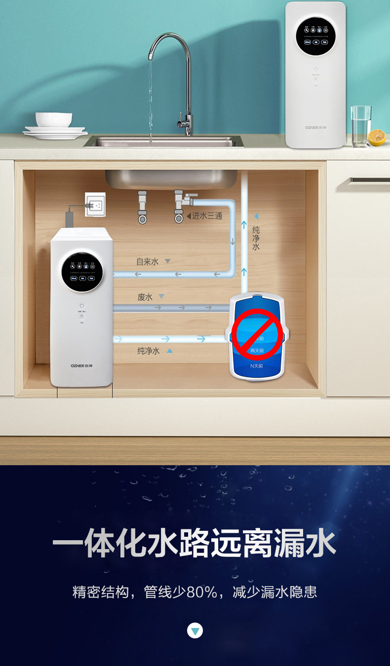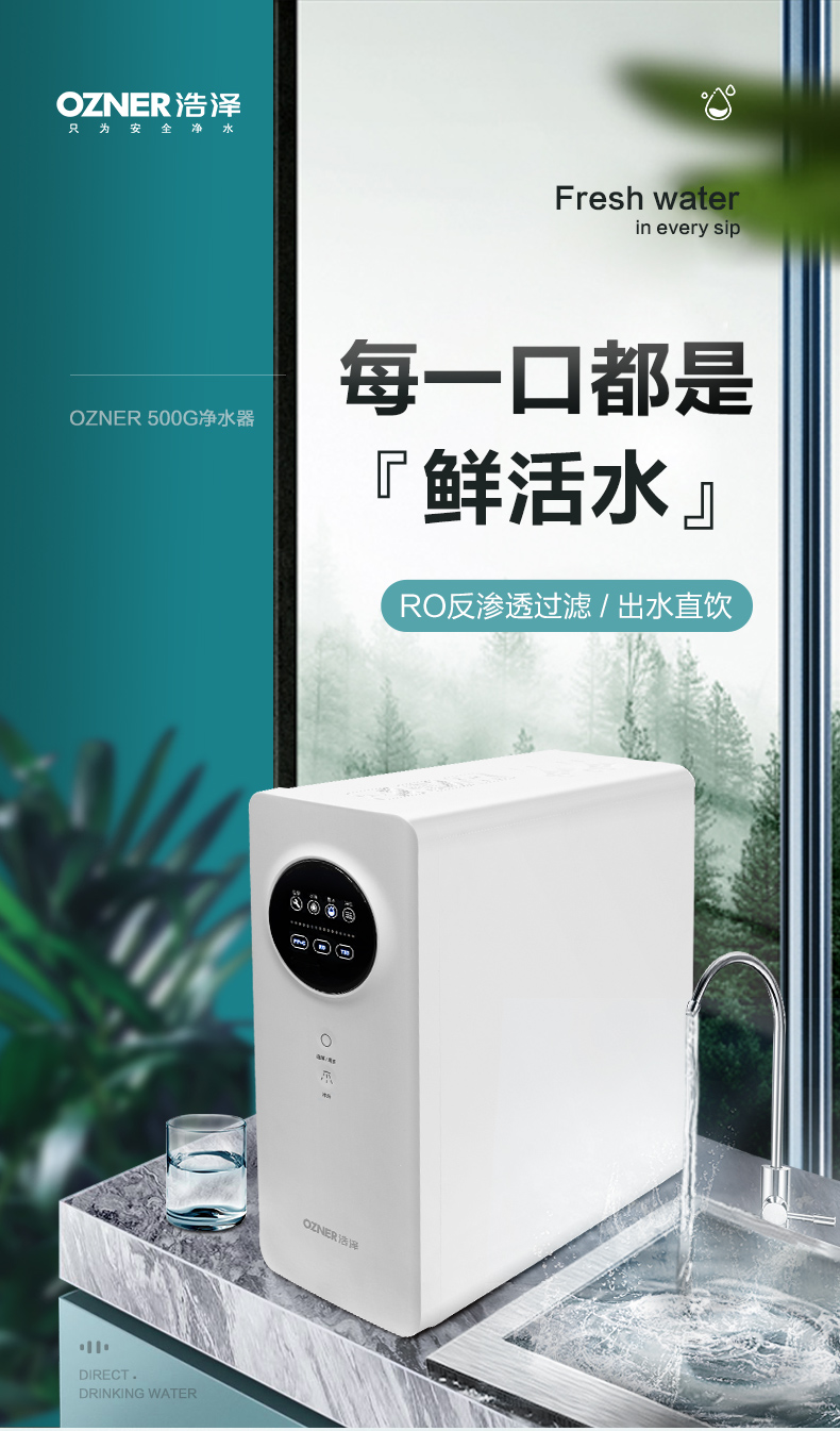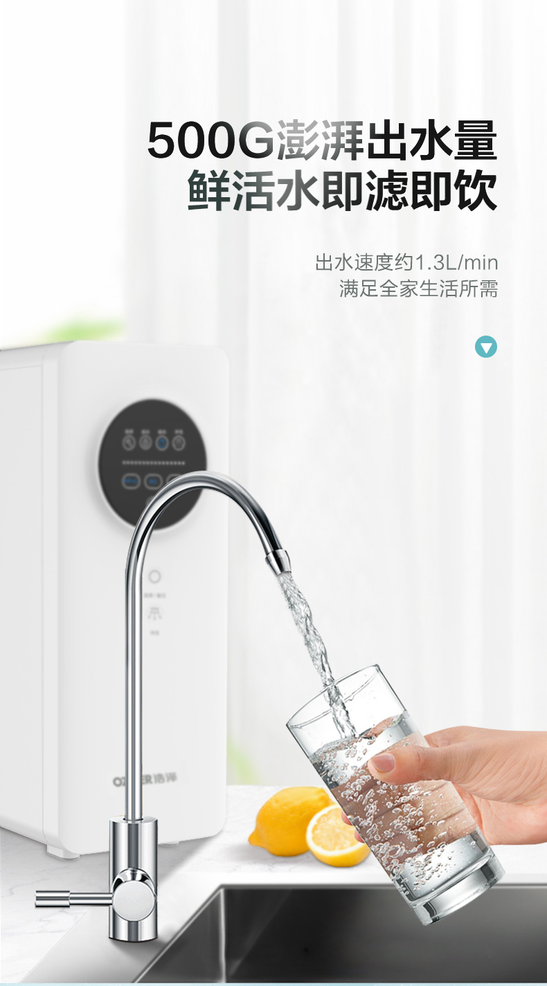 浩泽净水器家用直饮自来水过滤器反渗透厨房水龙头大流量净水机