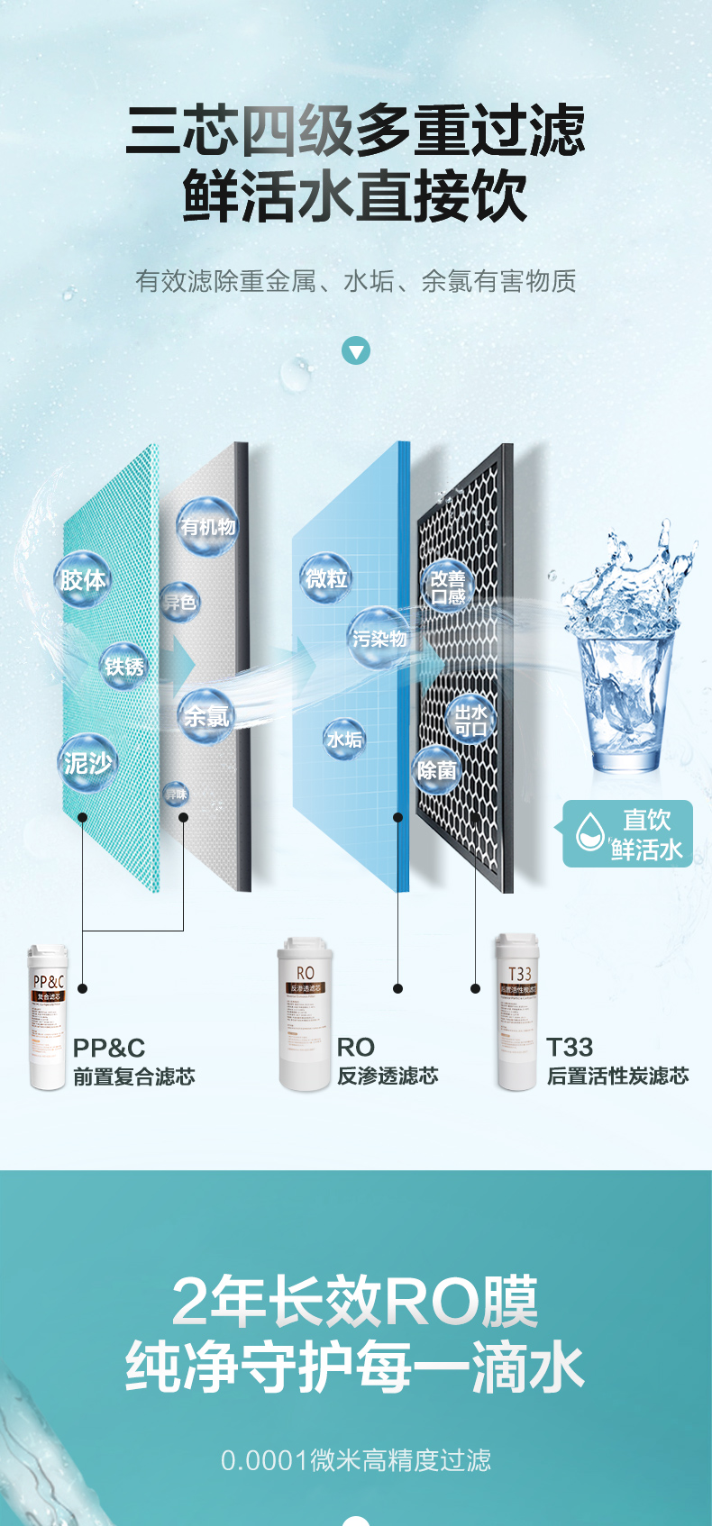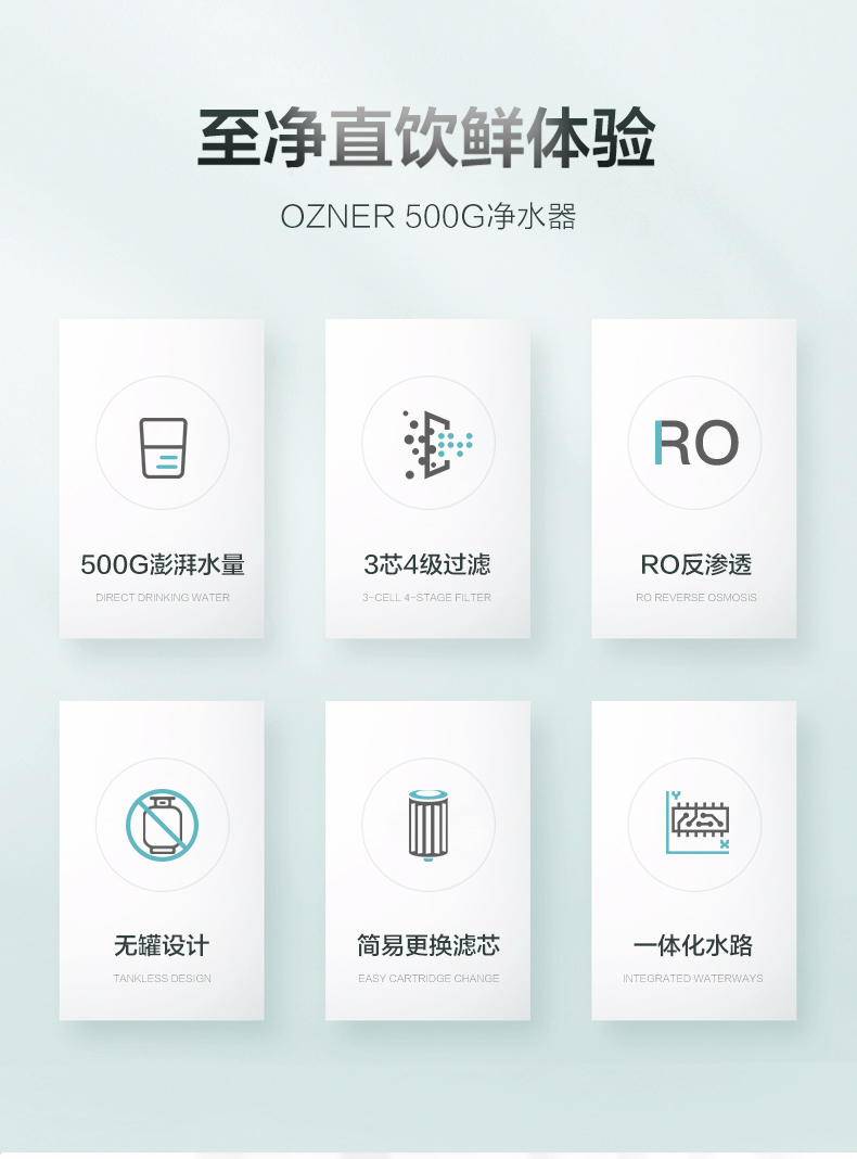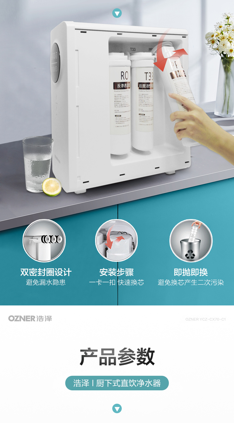浩泽净水器家用直饮自来水过滤器反渗透厨房水龙头大流量净水机