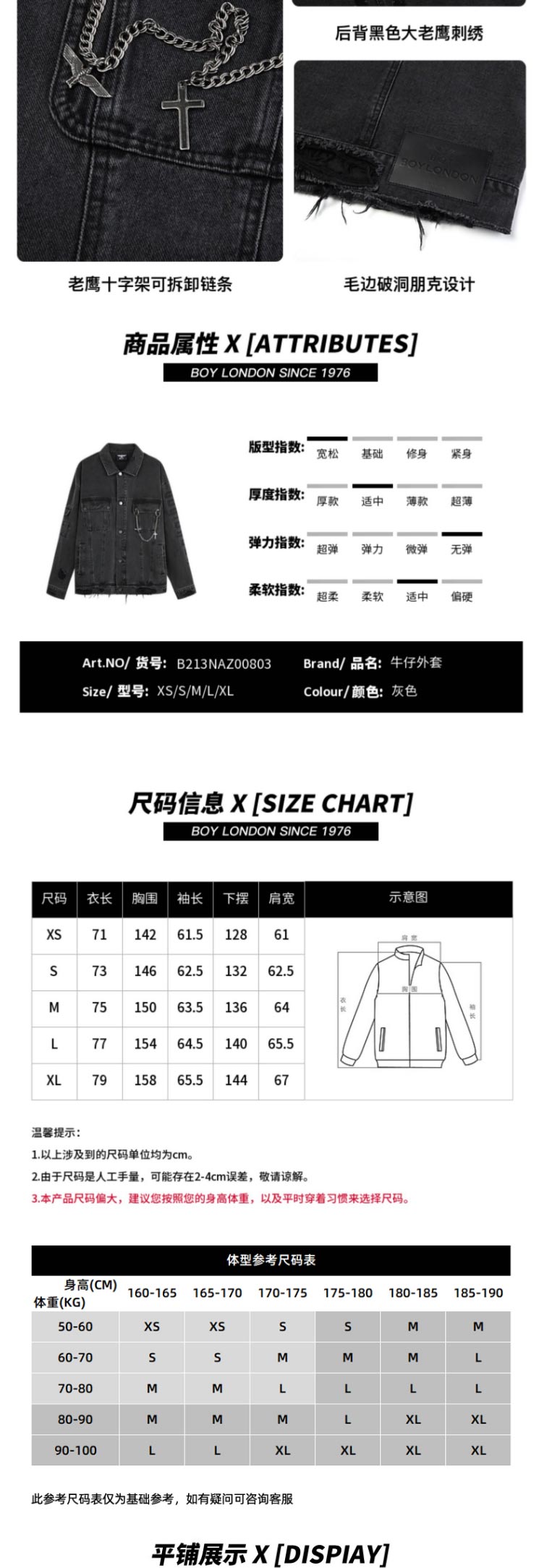 BOY老鹰刺绣潮宽松牛仔外套B213NAZ00803