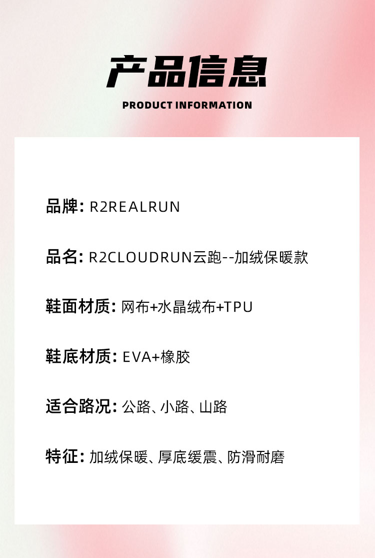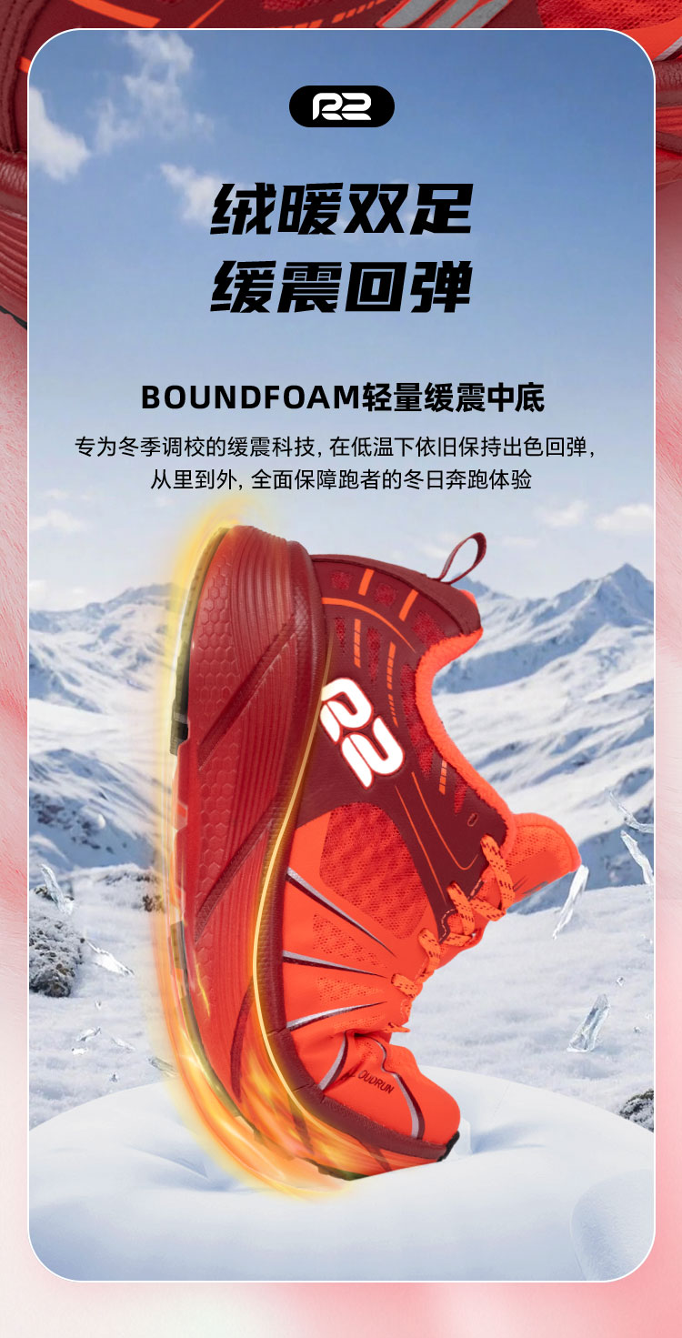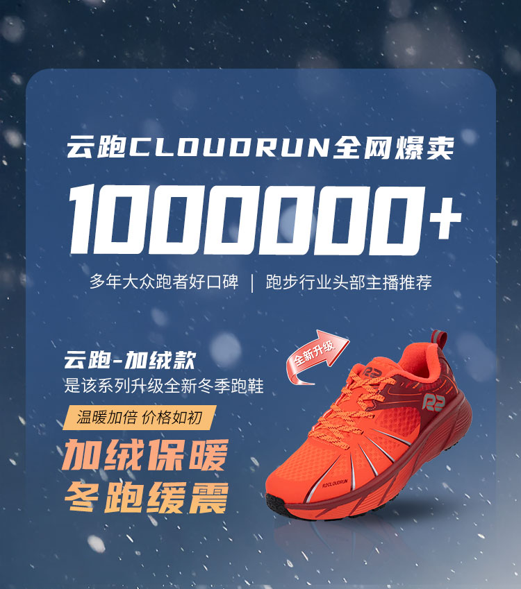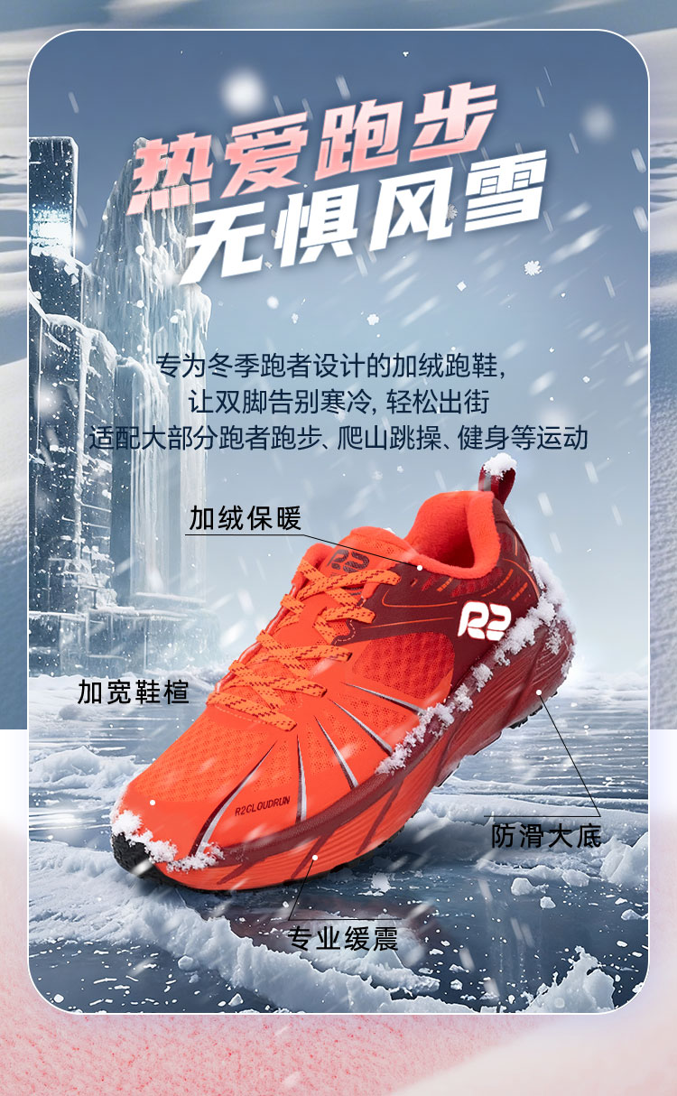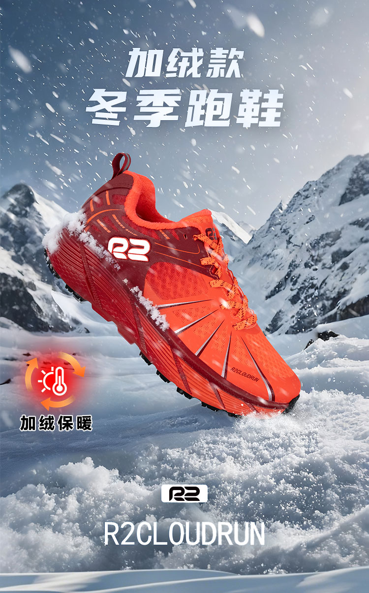 R2跑鞋官方旗舰店新款云跑加绒秋冬跑步鞋缓震保暖防滑运动鞋男女
