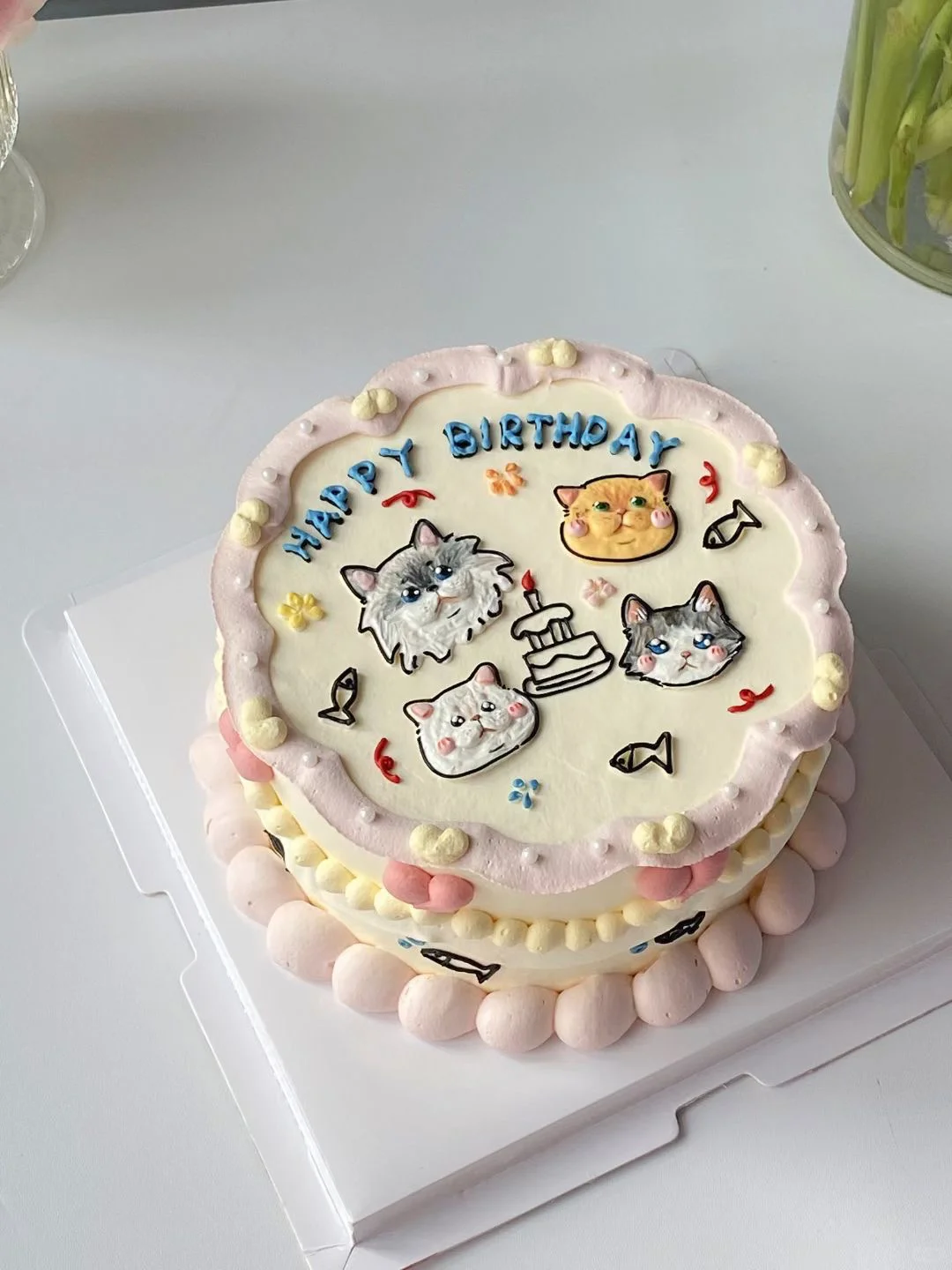 喵喵爱吃鱼喵星人小动物手绘蛋糕-低糖处理无添加