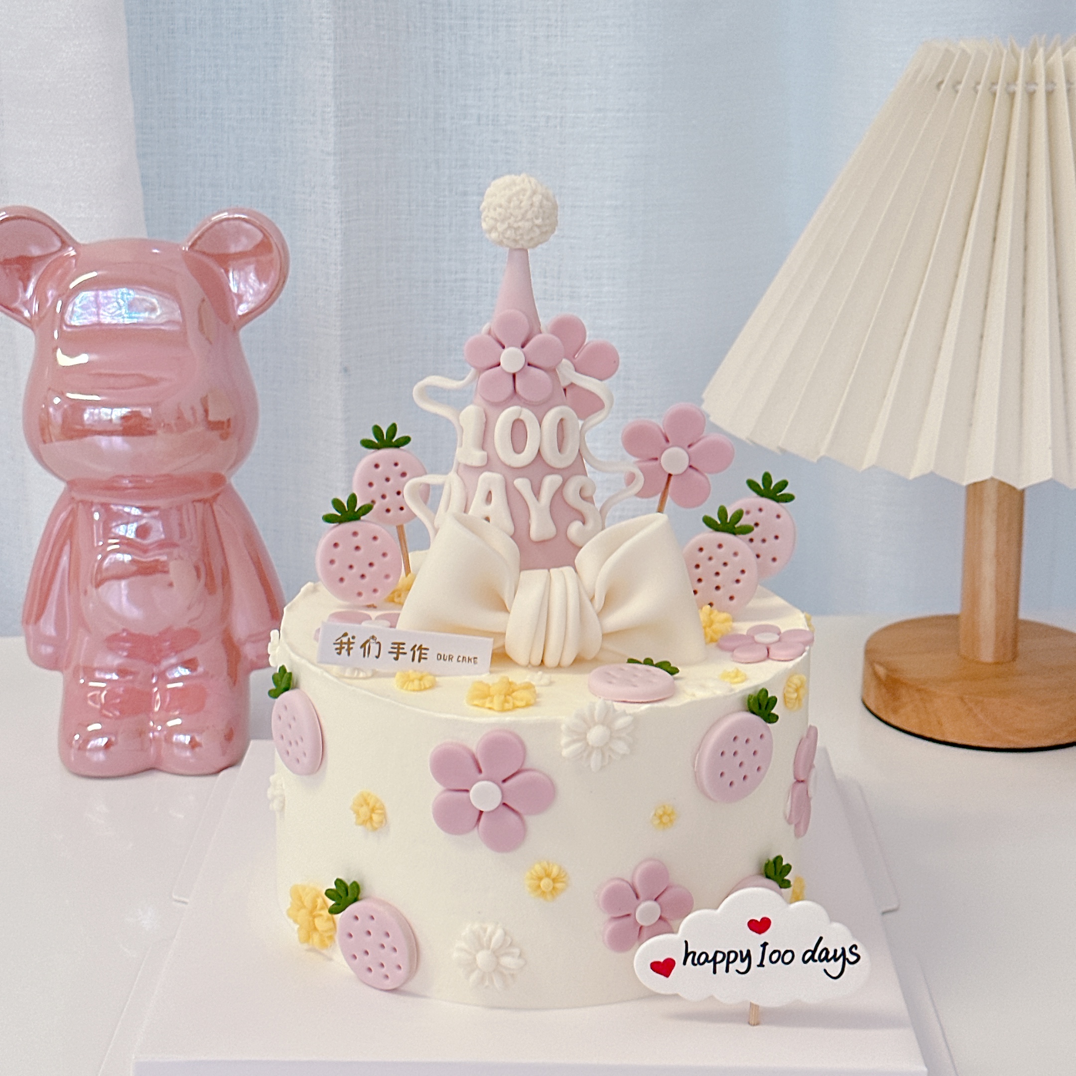 百天/周岁蝴蝶结生日帽卡通蛋糕-低糖处理无添加