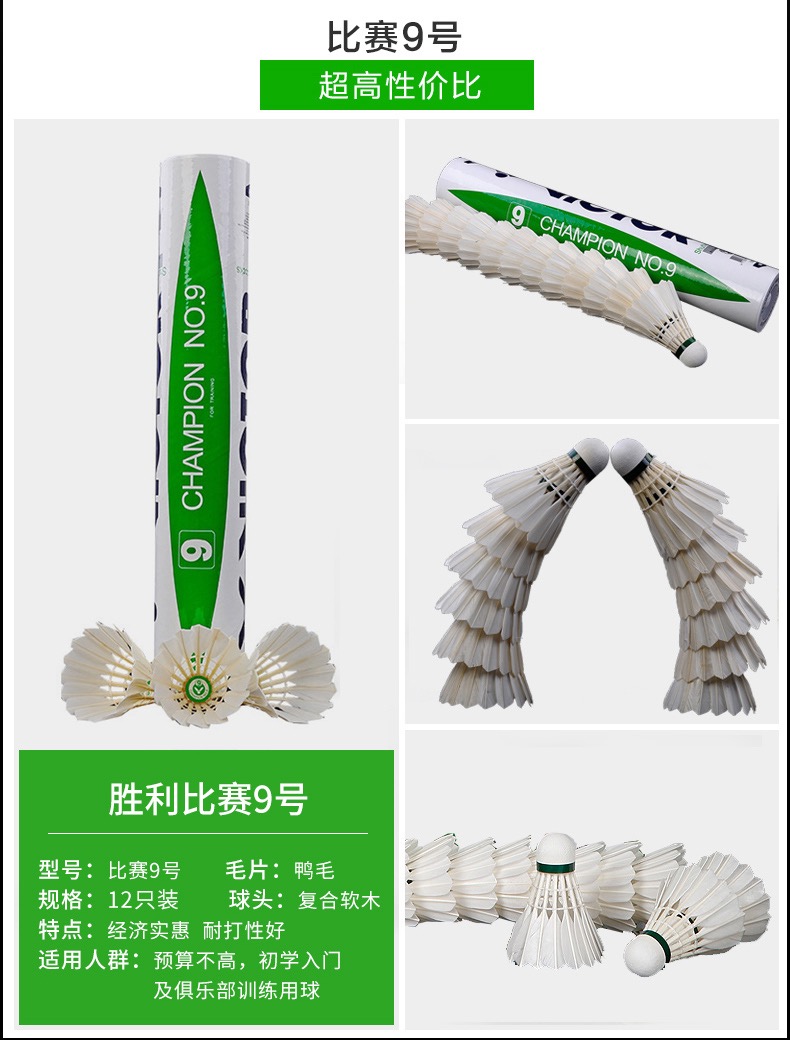 威克多VICTOR胜利羽毛球 比赛级9号 12只/筒 耐打训练比赛球鸭毛复合软木