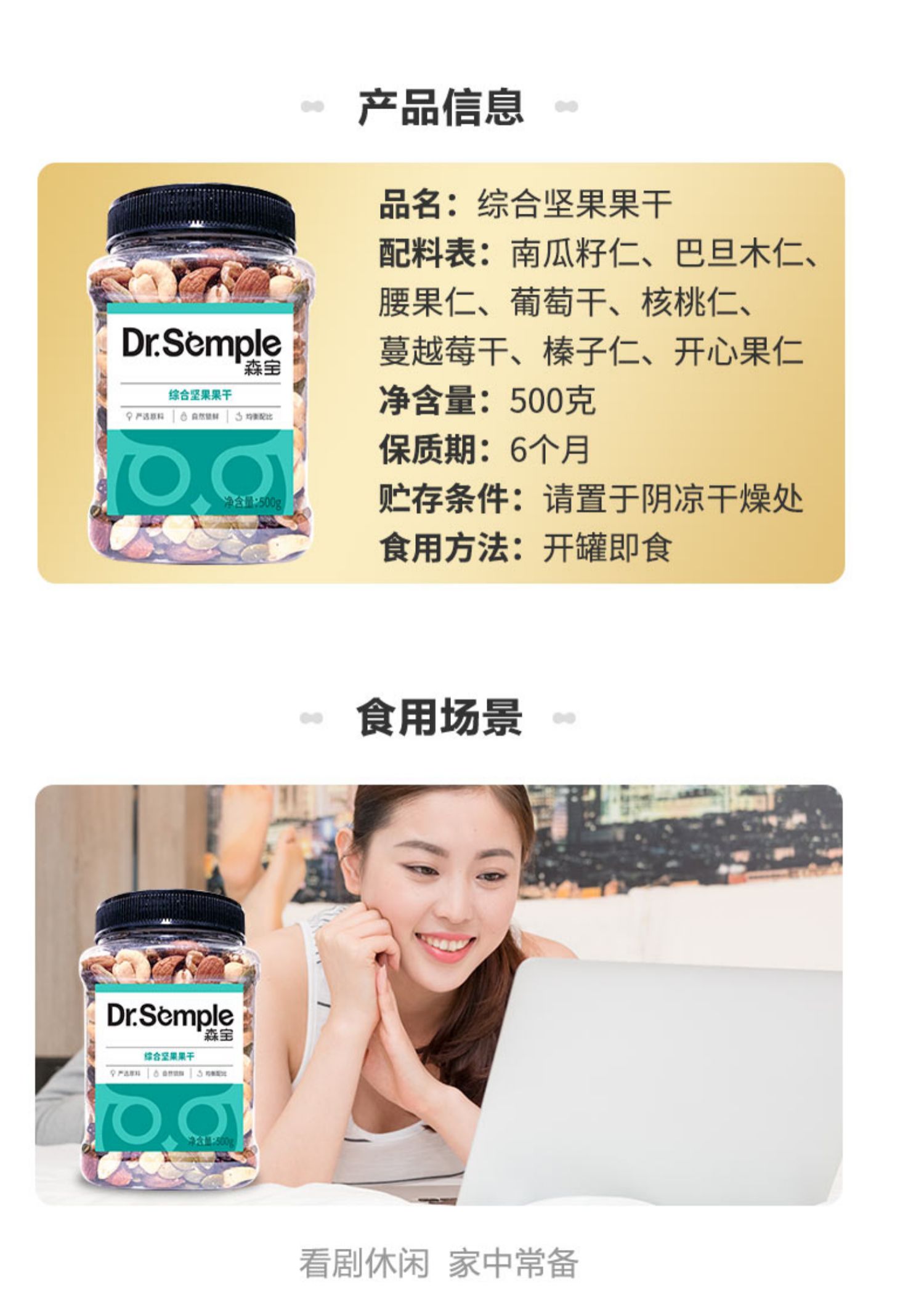 已下架】森宝 欧式综合坚果果干500g*2罐 酥脆好味原味原香 [福利品]