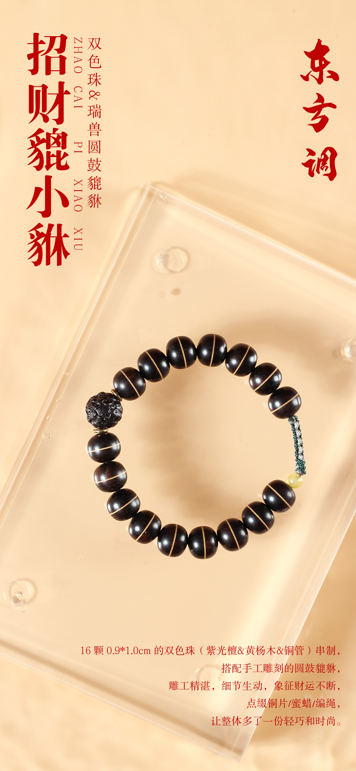 圆鼓貔貅/铜片/蜜蜡/镶嵌黄杨木铜管