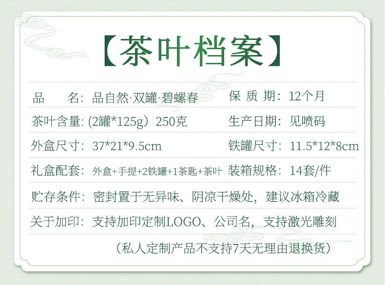 「碧螺春双罐礼盒装」2023年新茶绿茶碧螺春 茶叶礼盒装250g节日送礼茶饮