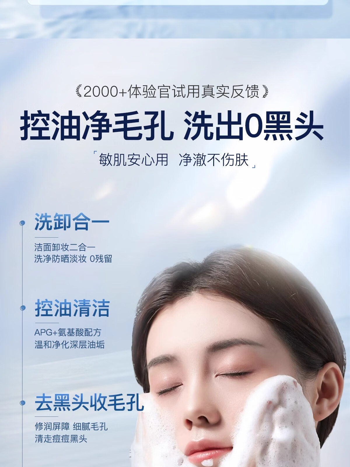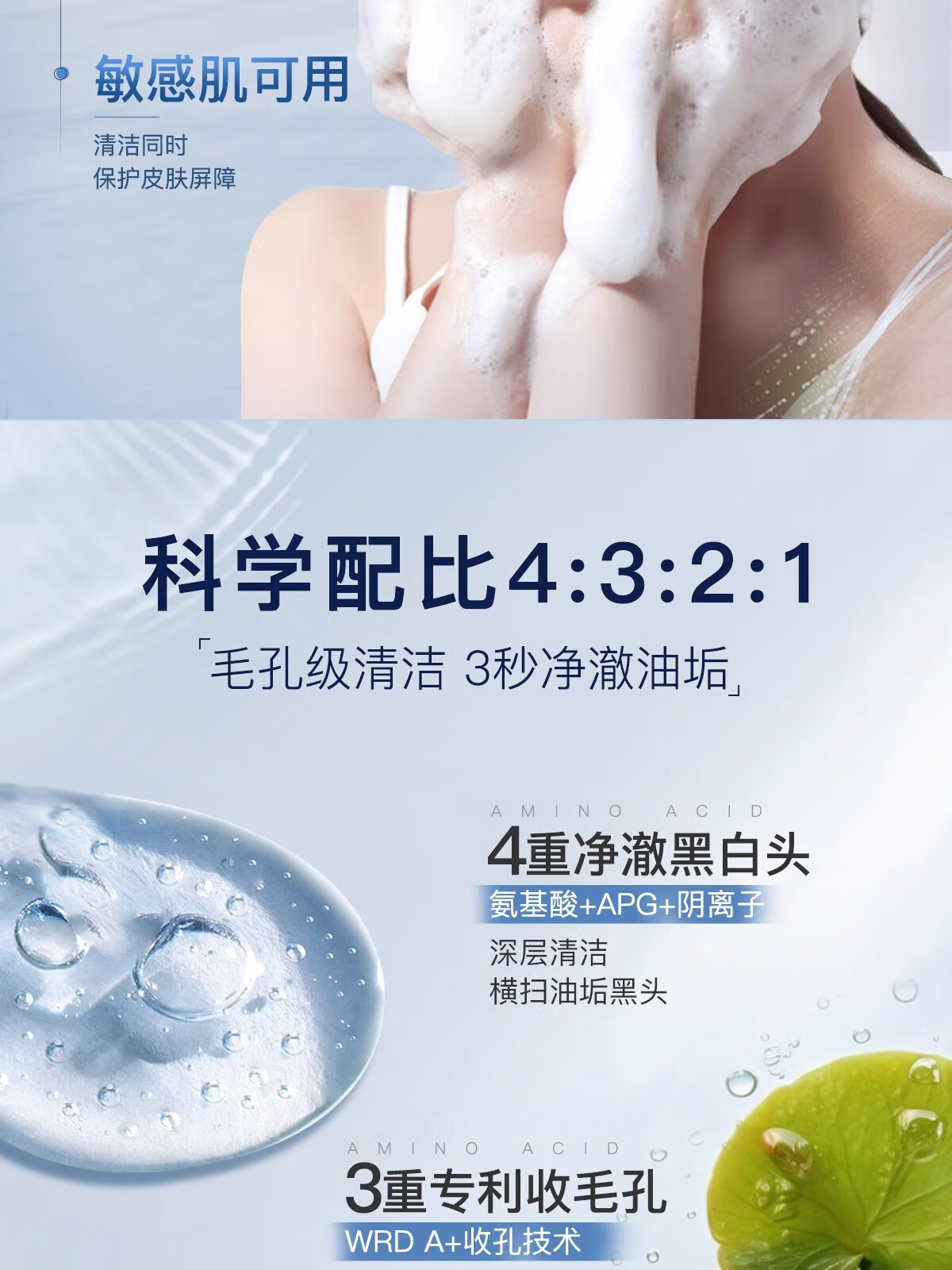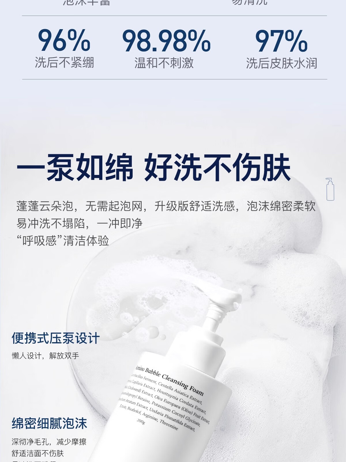 【海豚美购】DPU氨基酸洗面奶 深层清洁保湿舒缓不紧绷控油洗面奶男女 自发泡洗面奶200ml