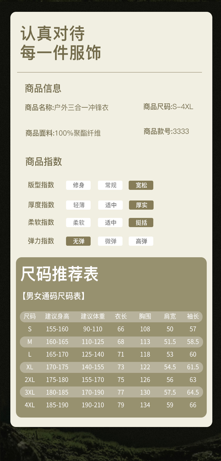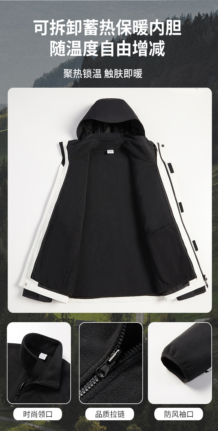 【冲锋衣】新国标三合一冲锋衣 男女户外摇粒抓绒内胆防风防水登山服外套