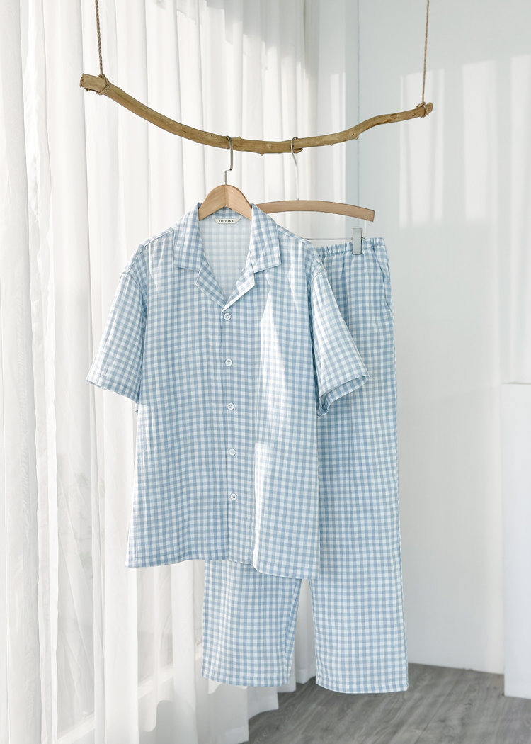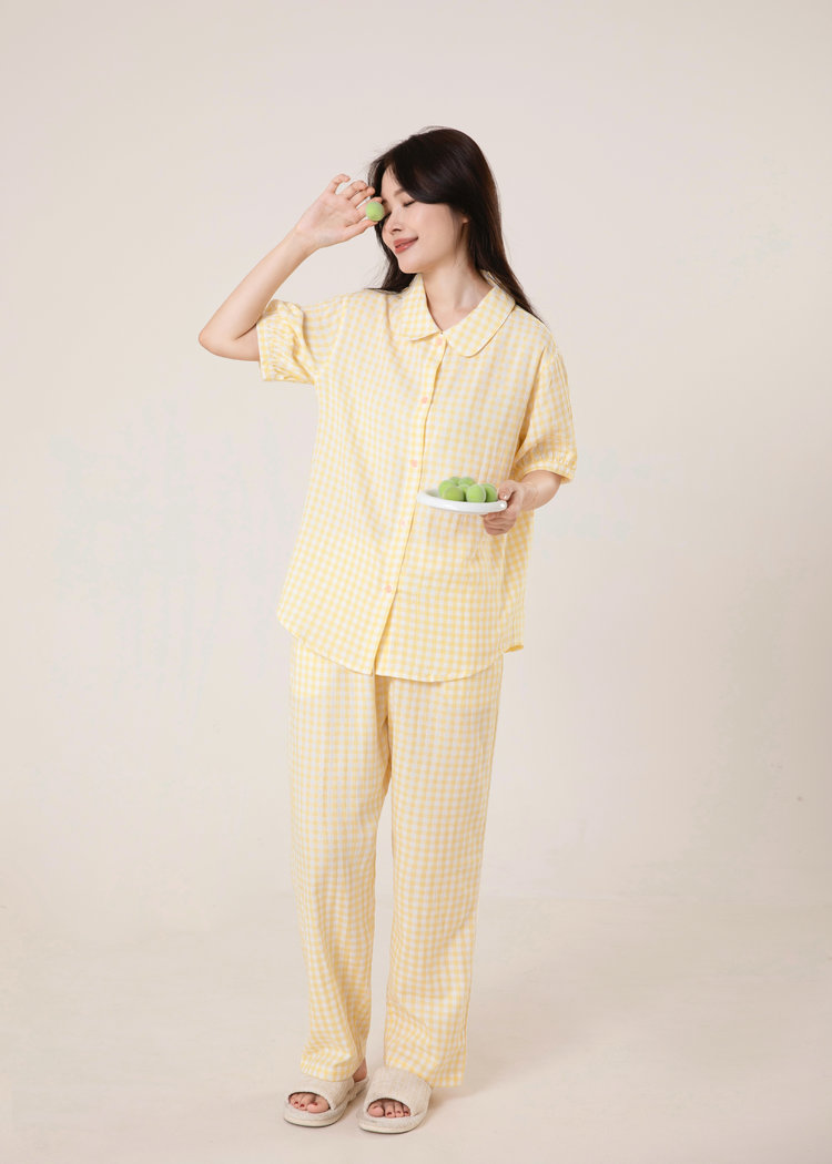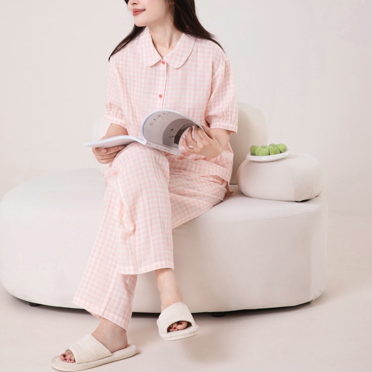 【顺丰包邮】无*良品同款代工厂 纯棉双层纱短袖睡衣套装 娃娃领糖果色 显瘦家居服 亲肤透气 越洗越软