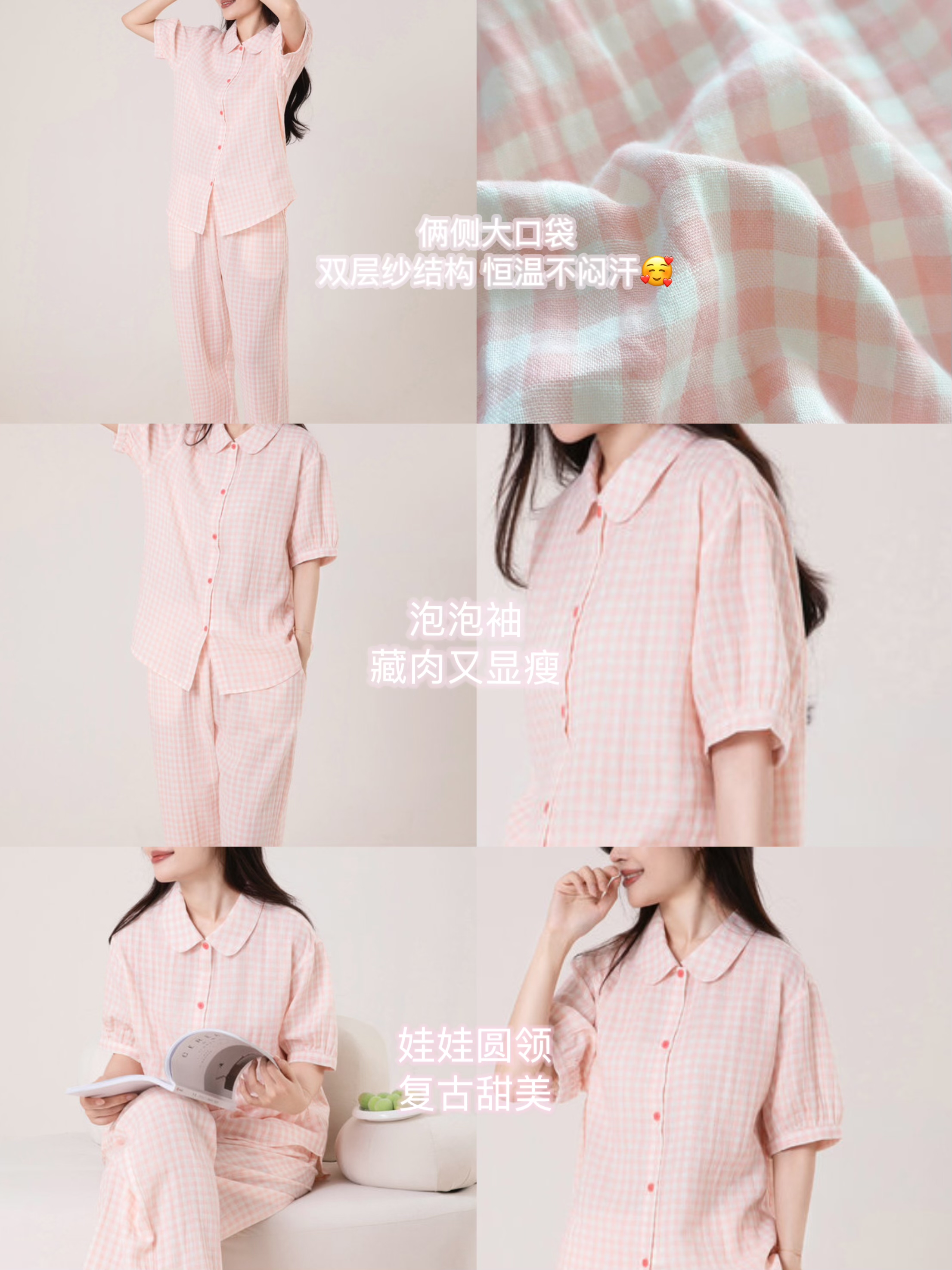 「娃娃领七分甜系睡衣」,无印良品同源工厂出品,40支双层纱面料,穿在身上像棉花糖一样