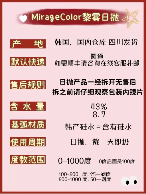 黎雾日抛活动色板 MirageColor日抛全系列 (多盒购买更划算 选款色板在详情页内 108一盒198两盒10盒组合装)