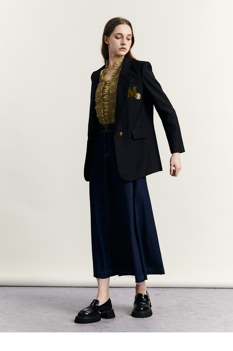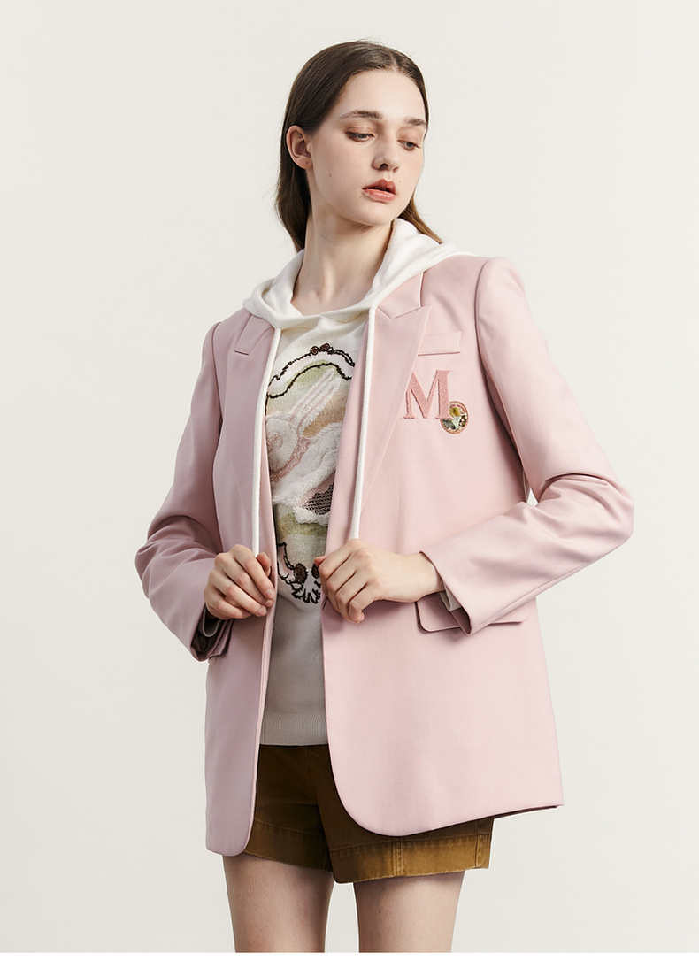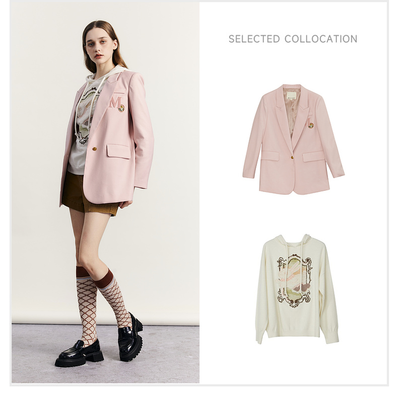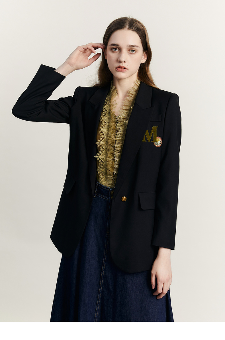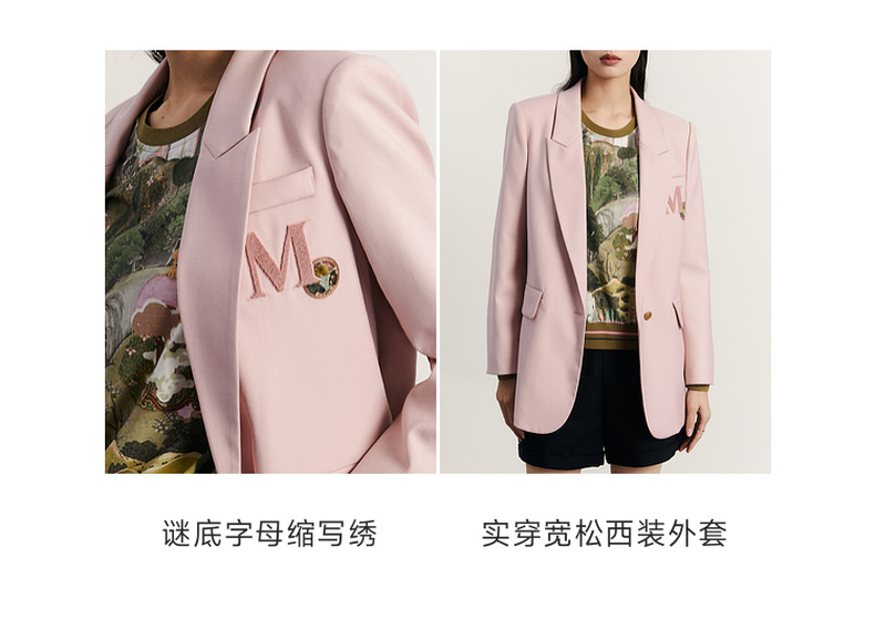 谜底西装外套女2023秋季新款翻驳领宽松绣花一粒扣西服233MW0970