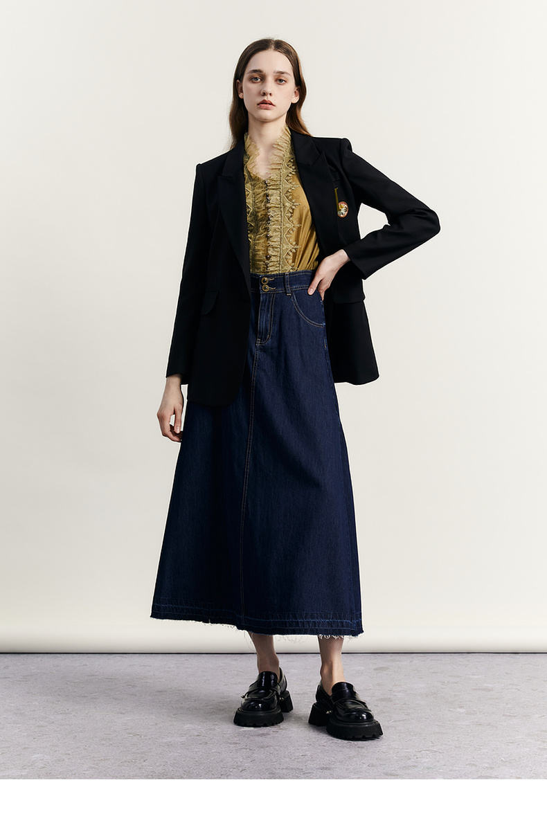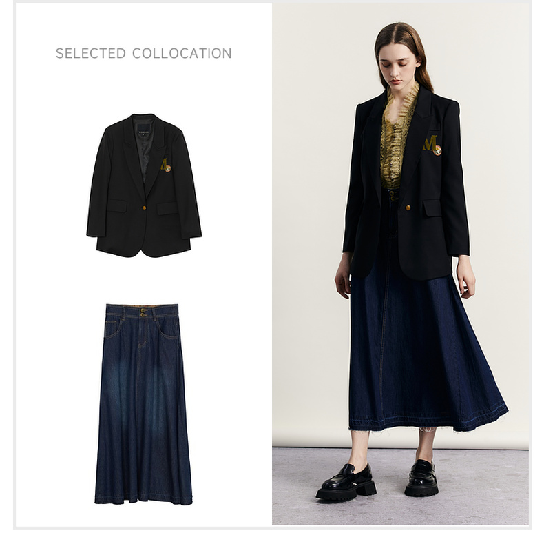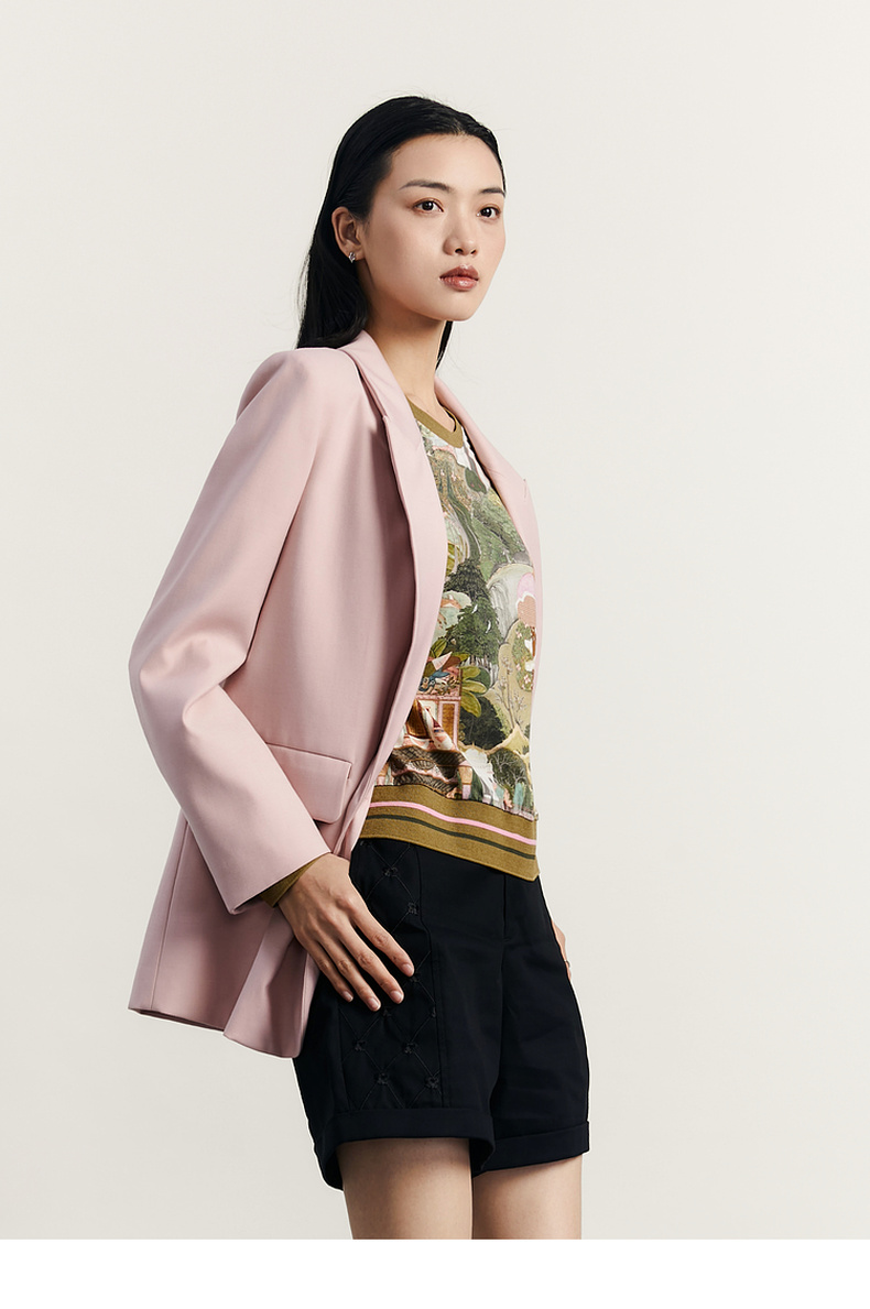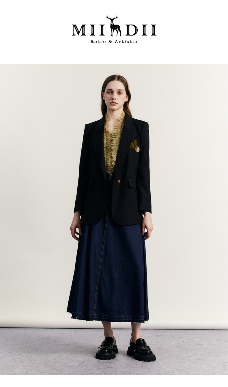 谜底西装外套女2023秋季新款翻驳领宽松绣花一粒扣西服233MW0970
