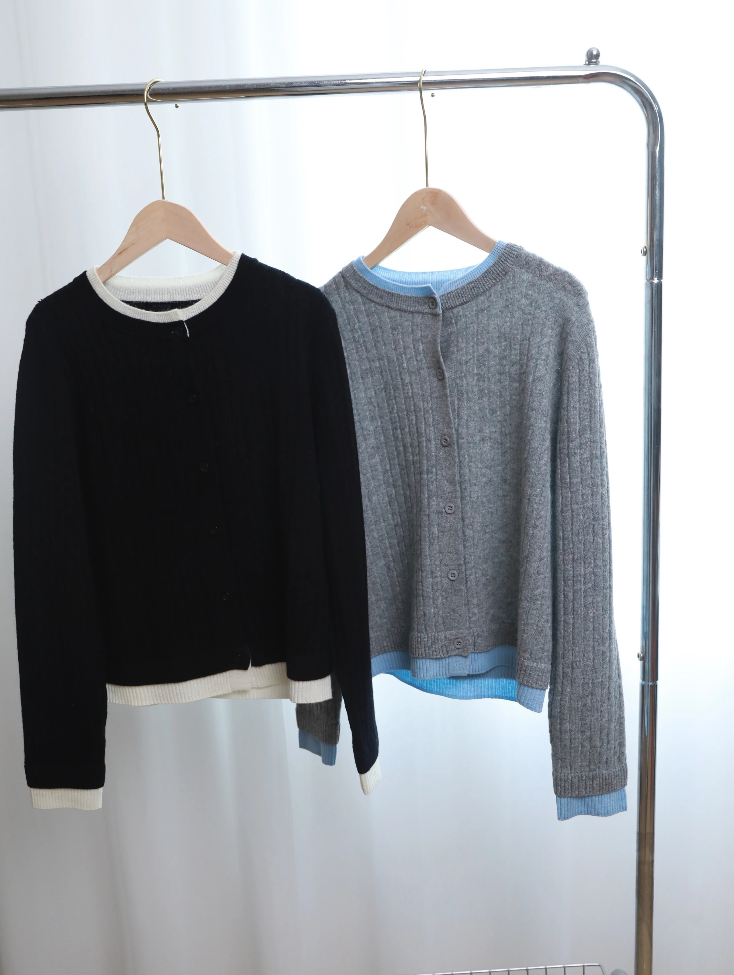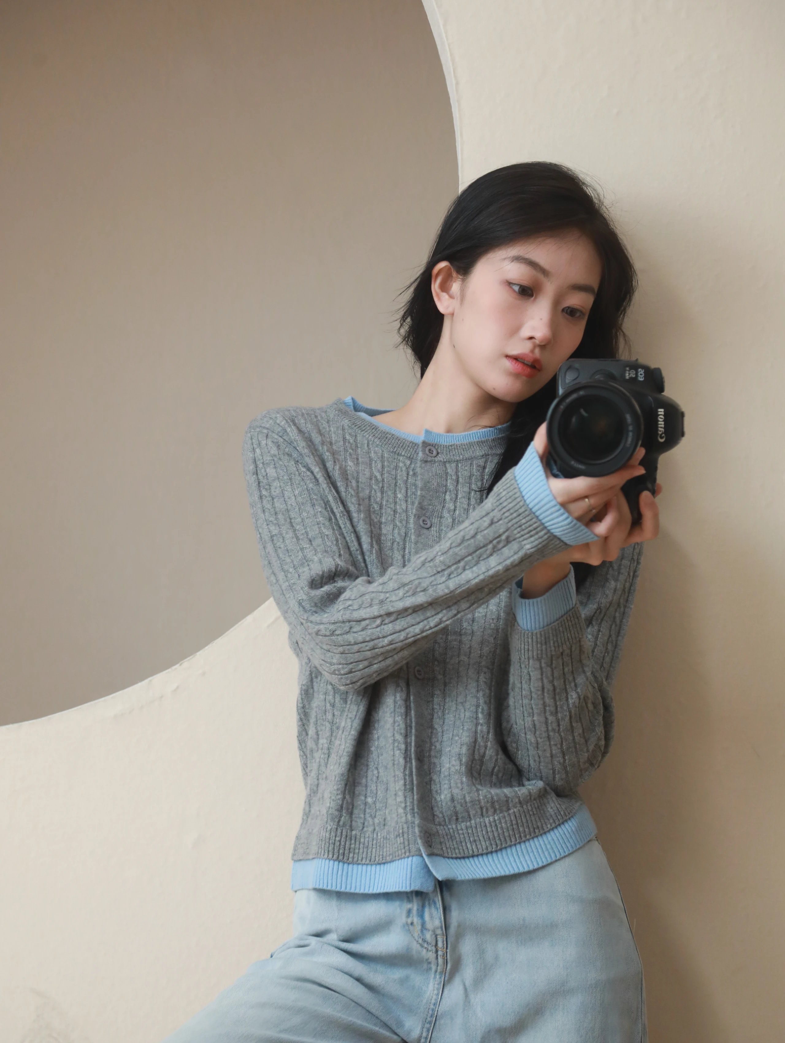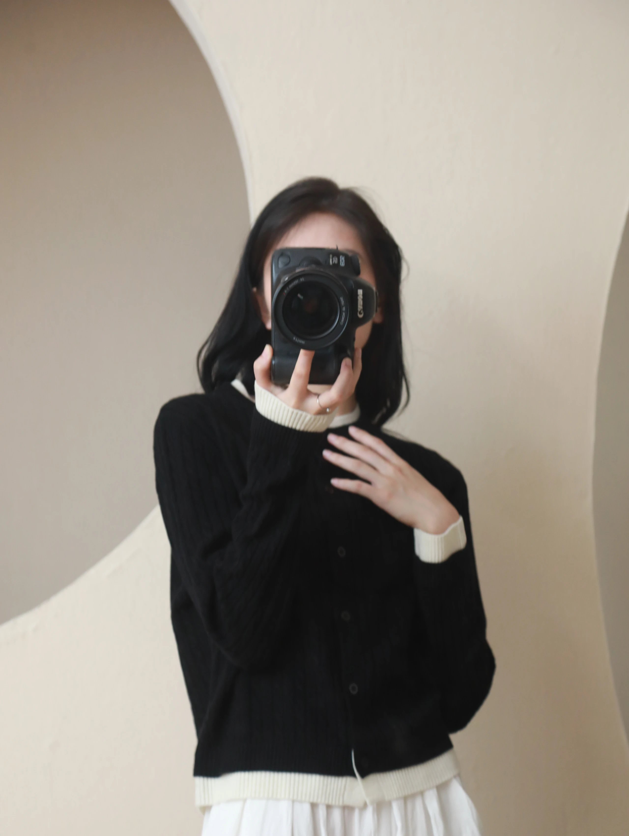 拼接式假两件设计为开衫融入了不一样的灵动感