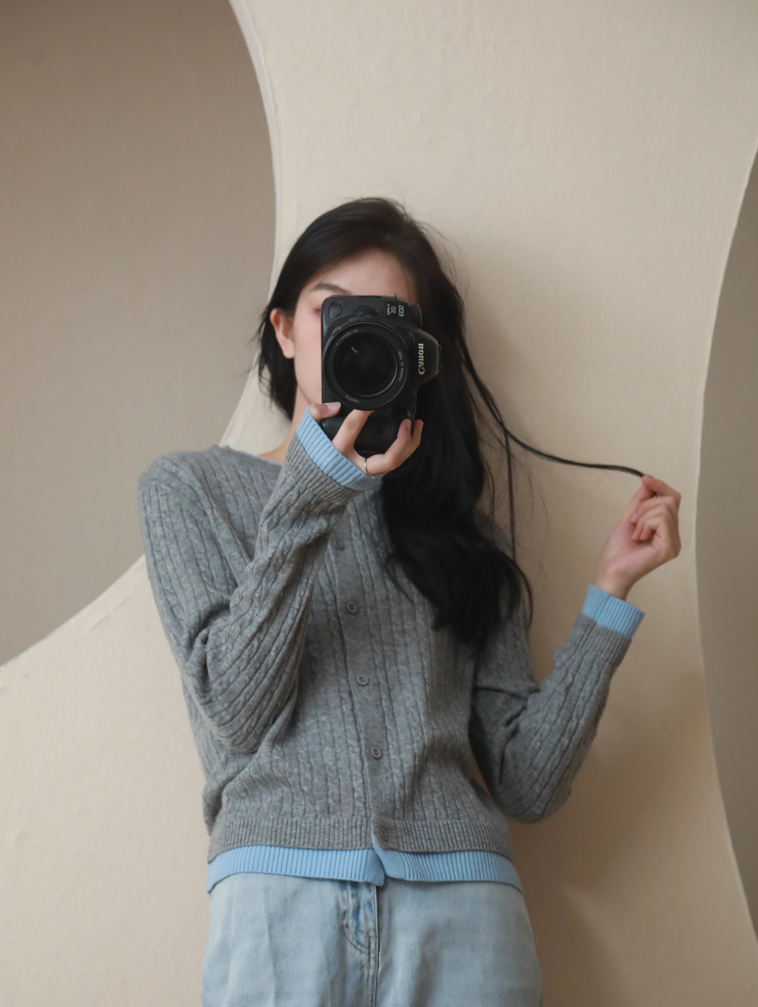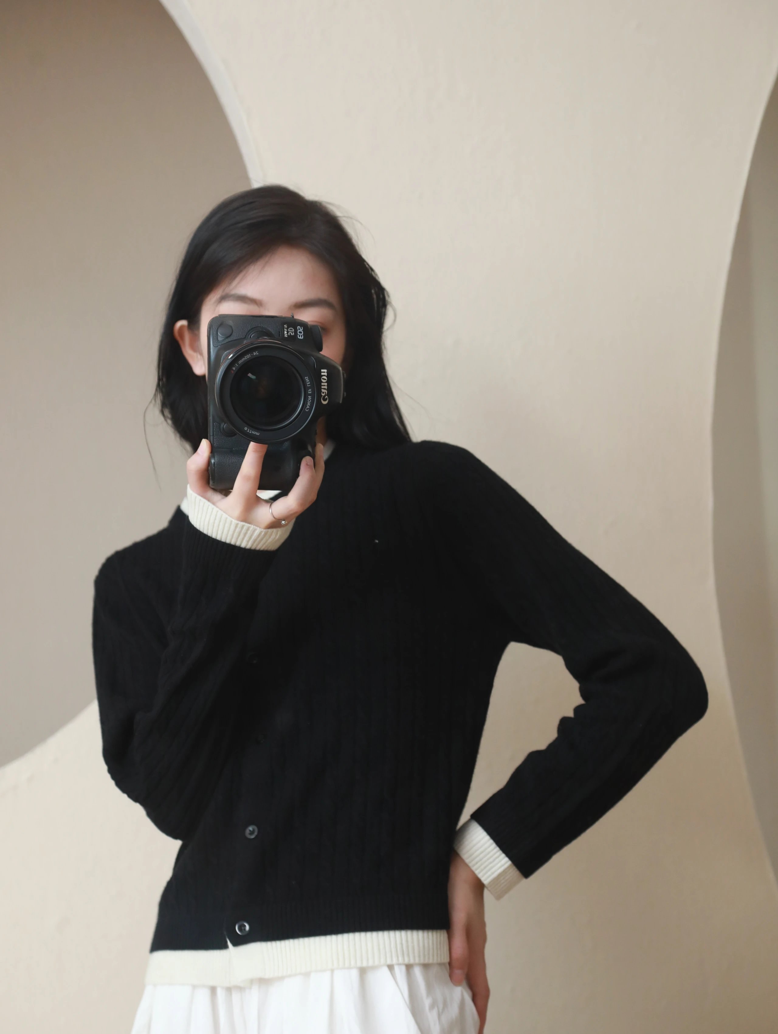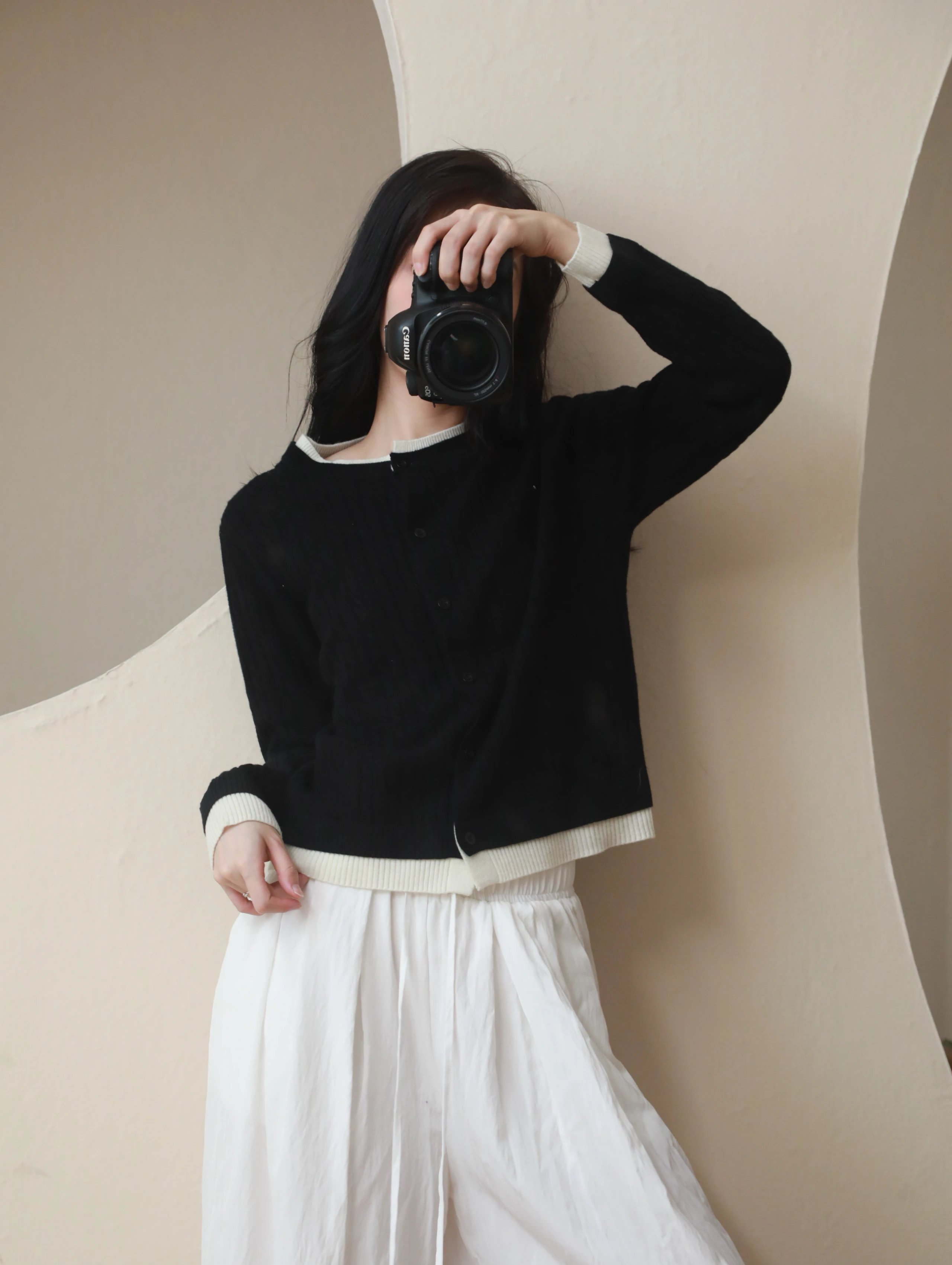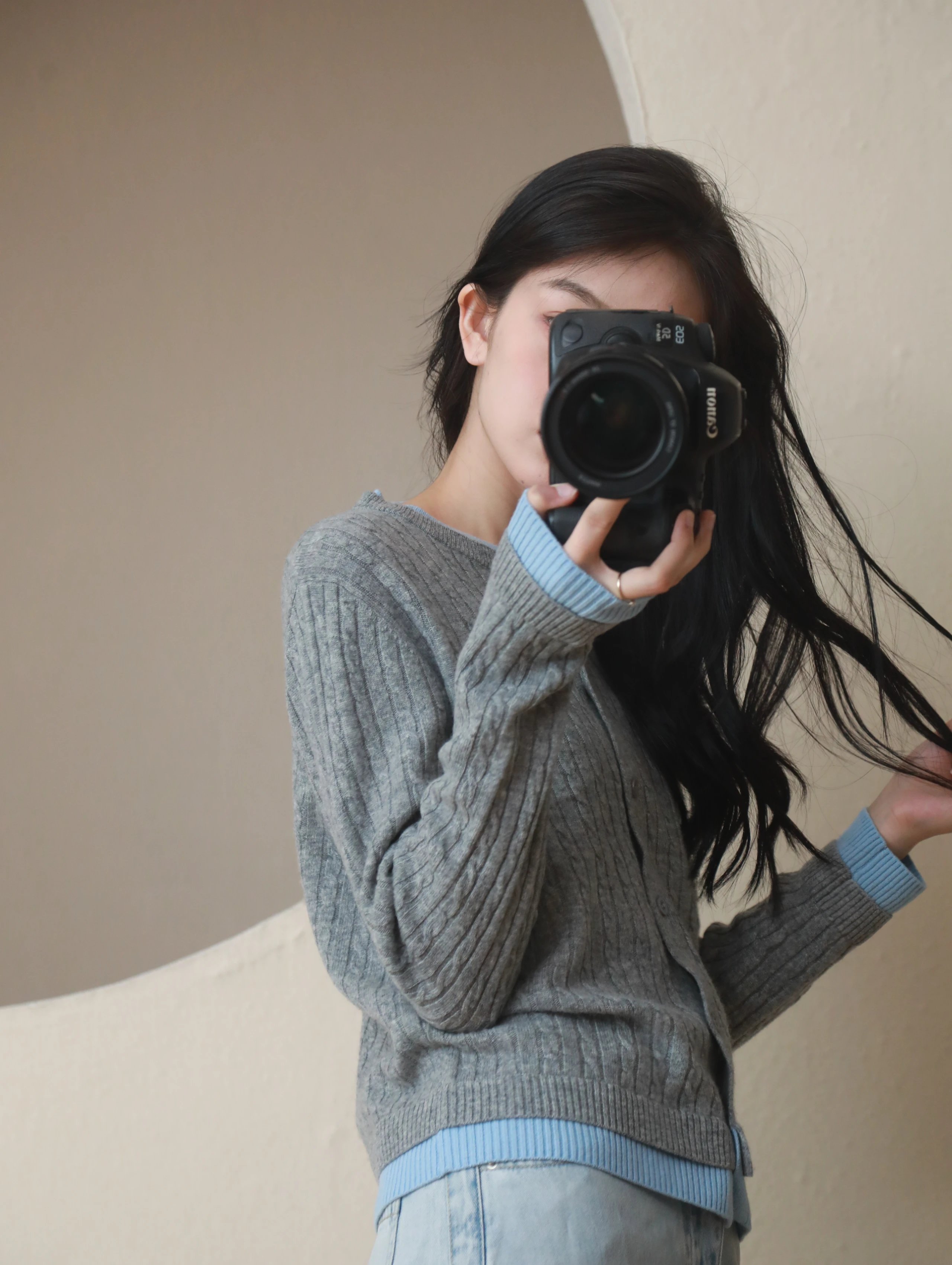 拼接式假两件设计为开衫融入了不一样的灵动感